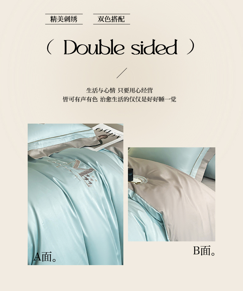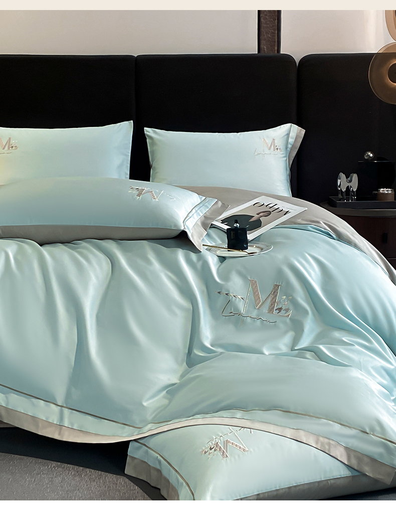 (总)拼社家纺 2025新款母婴及全棉水洗棉刺绣四件套纯棉床上用品,艾玛绿+卡其,繁星蓝+卡其,繁星蓝+玫瑰粉,红豆沙+雅灰,迷雾灰+玫瑰粉,蜜粉+雅灰,奶油白+卡其,奶油白+香橙,牛仔蓝+浅蓝,香橙+雅灰