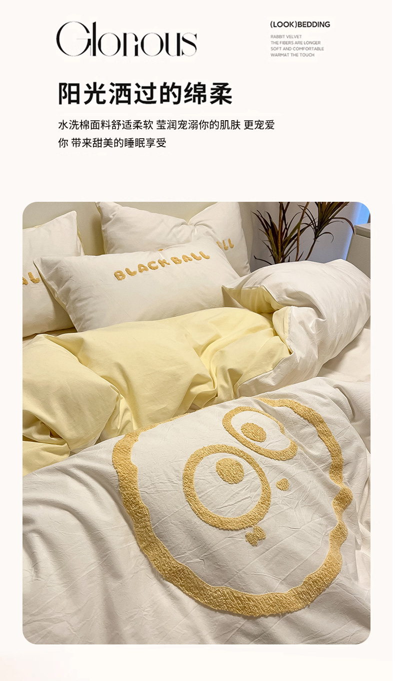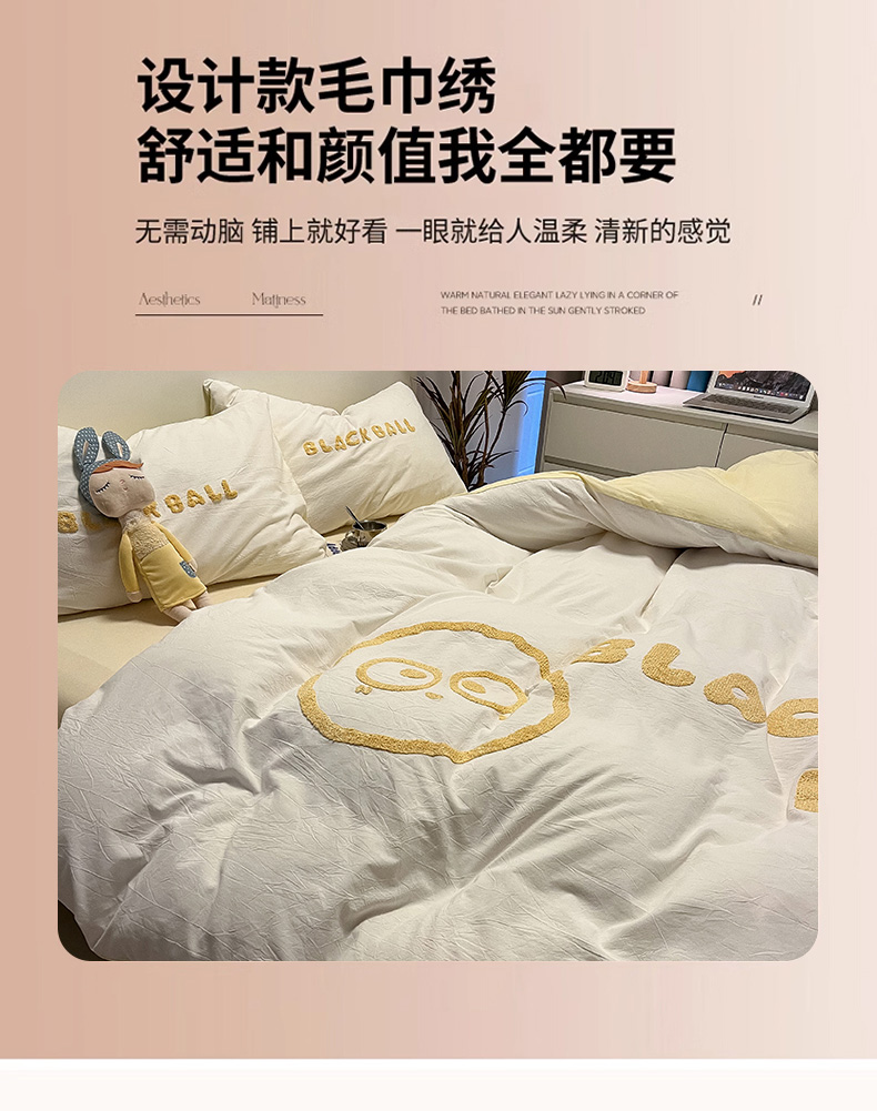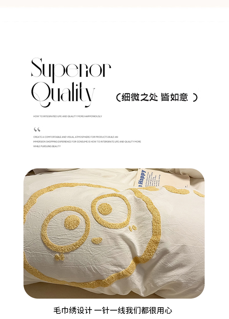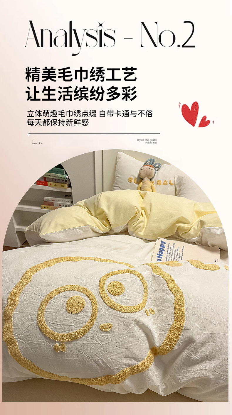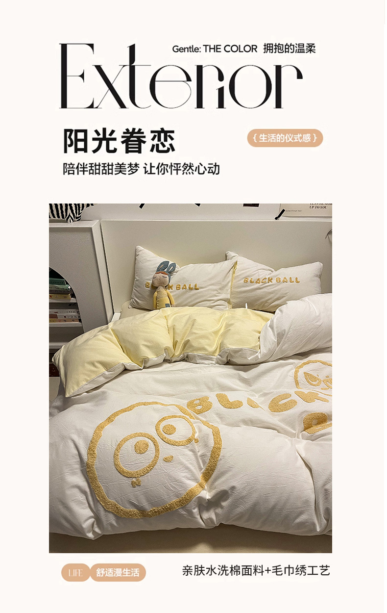 当前位置: 91家纺网 > 商品网购 > 床品套件 > 四件套 > 水洗棉四件套 > 眠帛家居 2024新款水洗棉毛巾绣四件套-煤球系列 奶黄