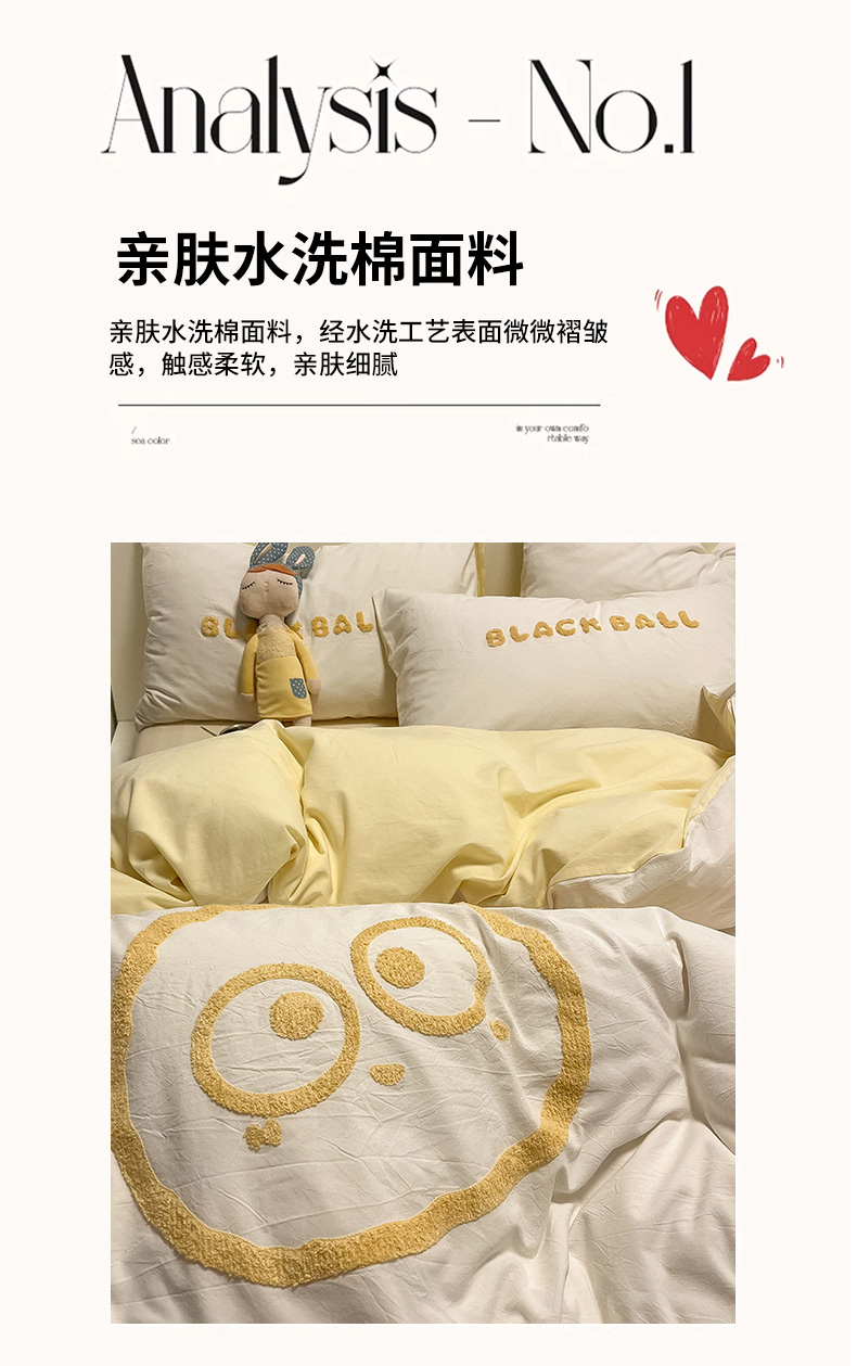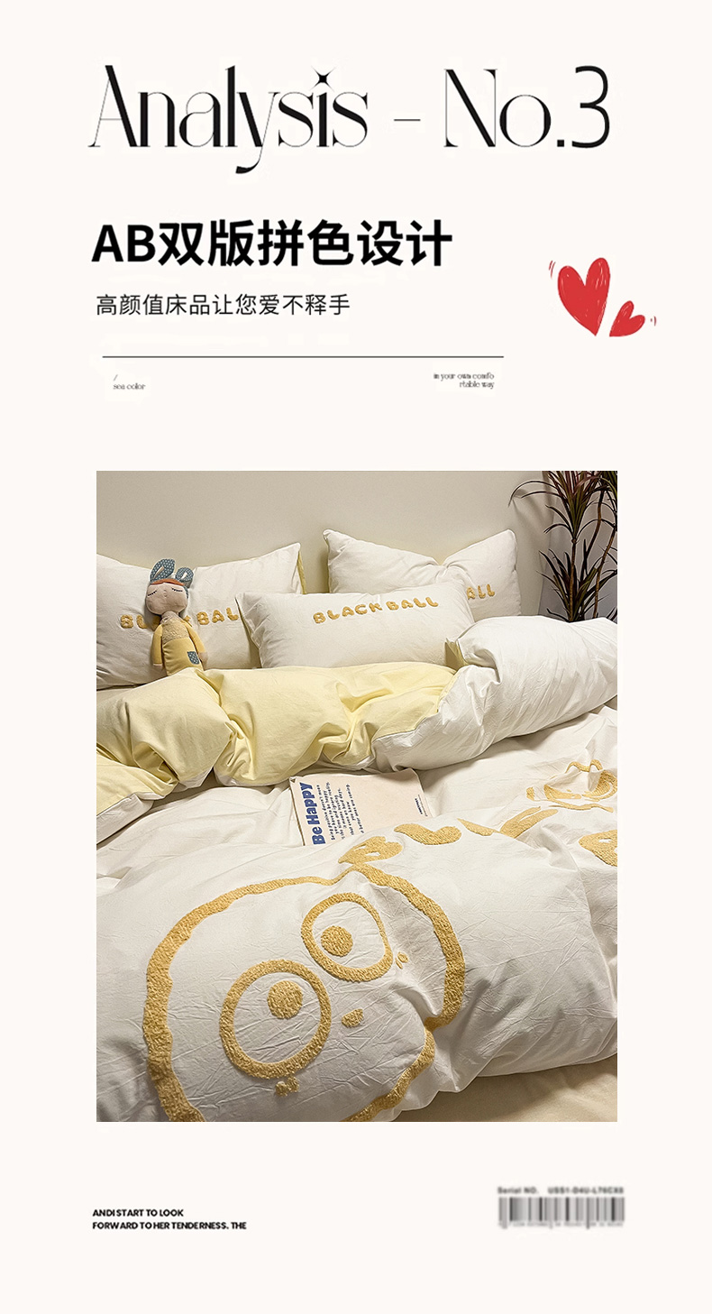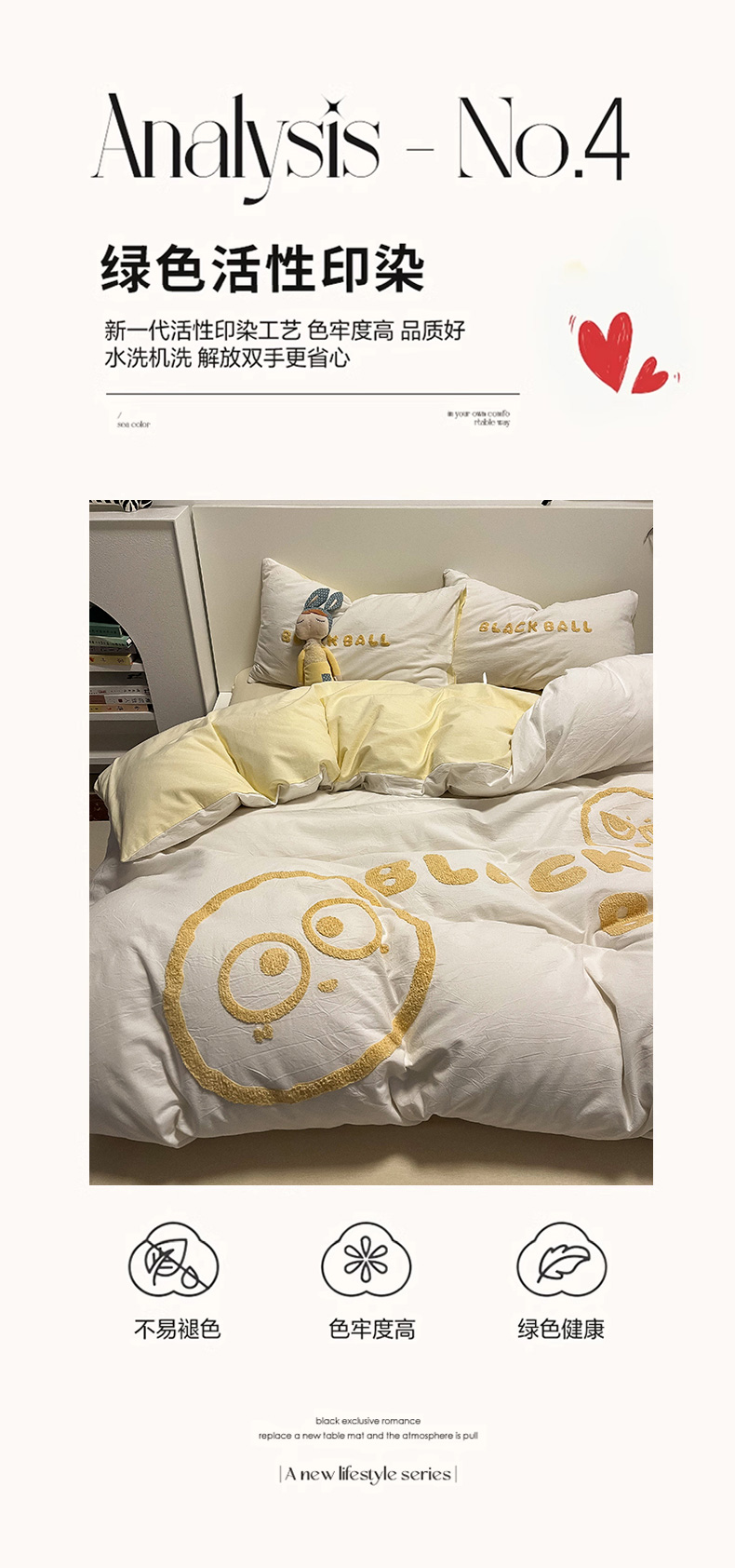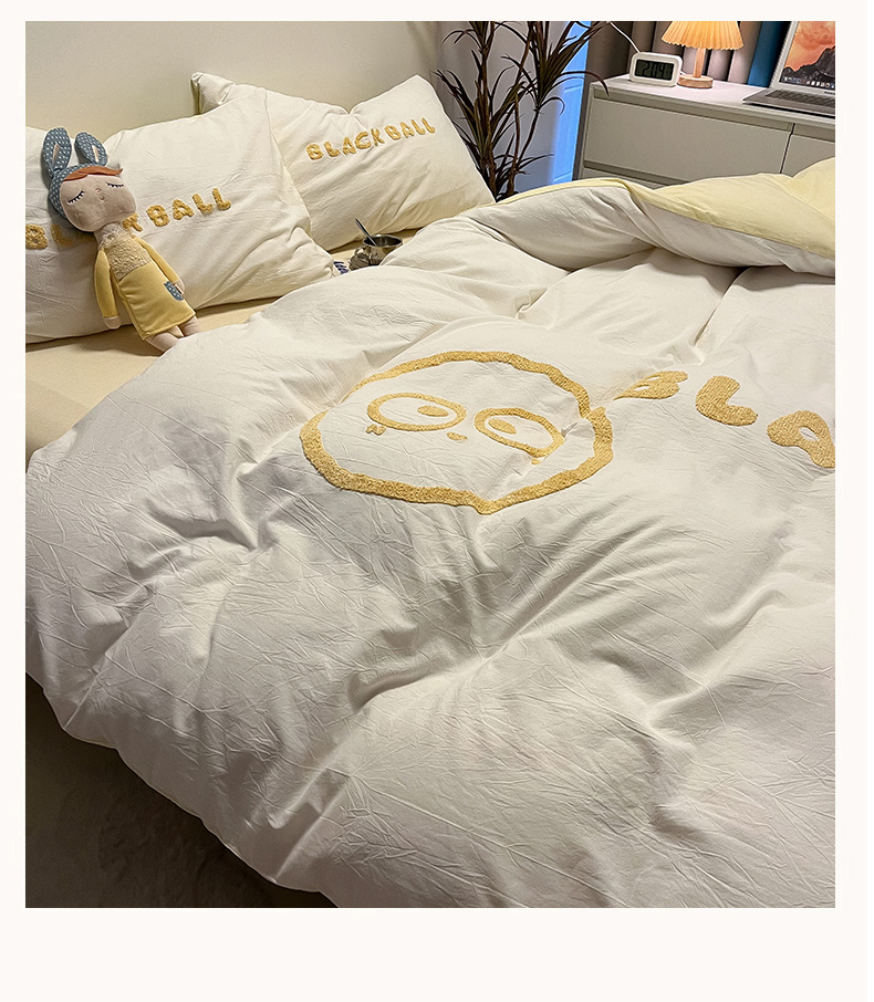 当前位置: 91家纺网 > 商品网购 > 床品套件 > 四件套 > 水洗棉四件套 > 眠帛家居 2024新款水洗棉毛巾绣四件套-煤球系列 奶黄