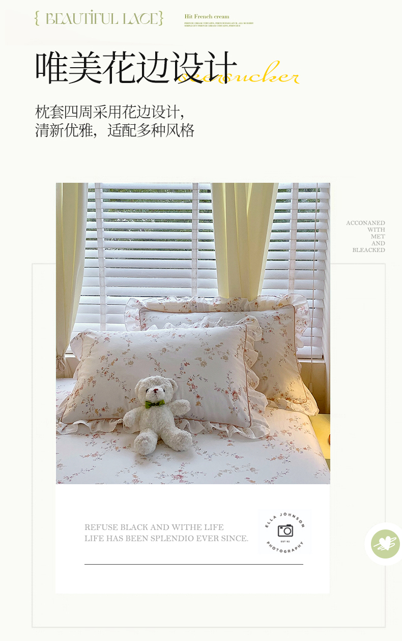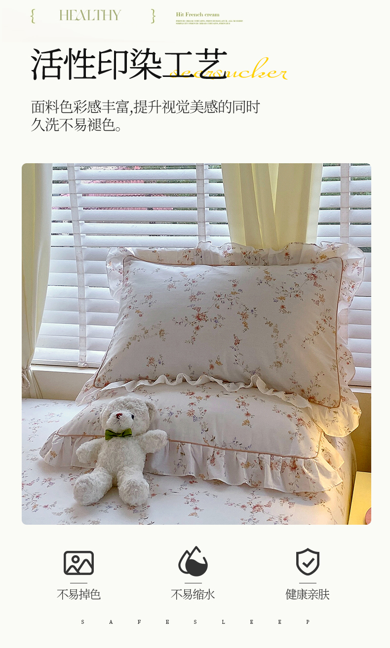 商品名称:宝齐莱2024新款全棉13372韩版印花四件套单品系列-单枕套 花容