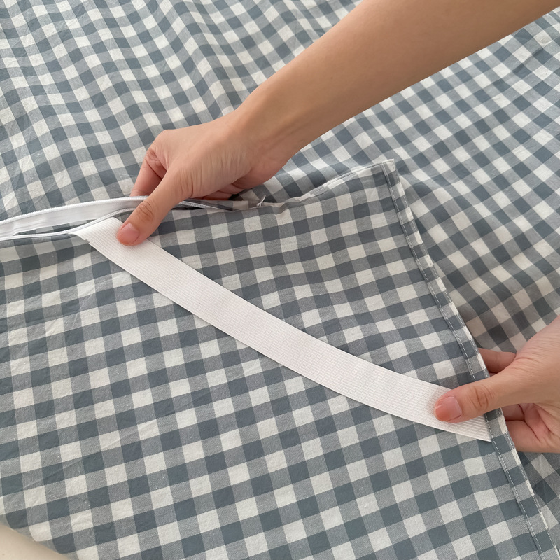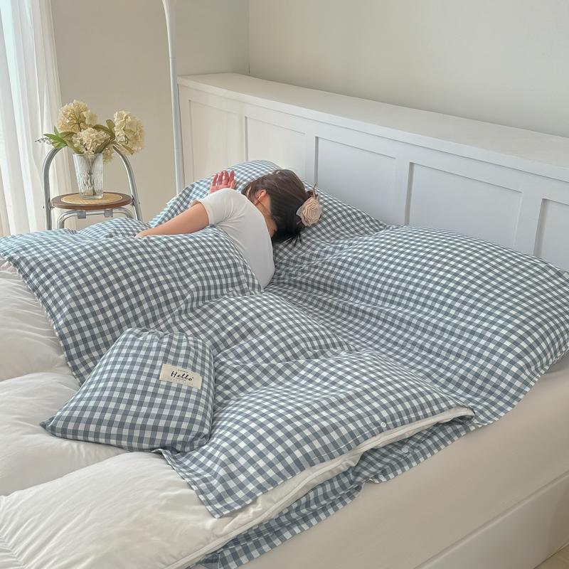 商品名称:柒星 2024新款无印全棉色织水洗棉隔脏睡袋 蓝灰小格