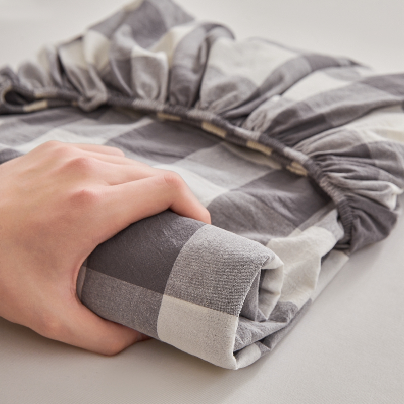雅萱家纺 2024新款A类色织全棉水洗棉单床笠 床笠-日和-大棕格