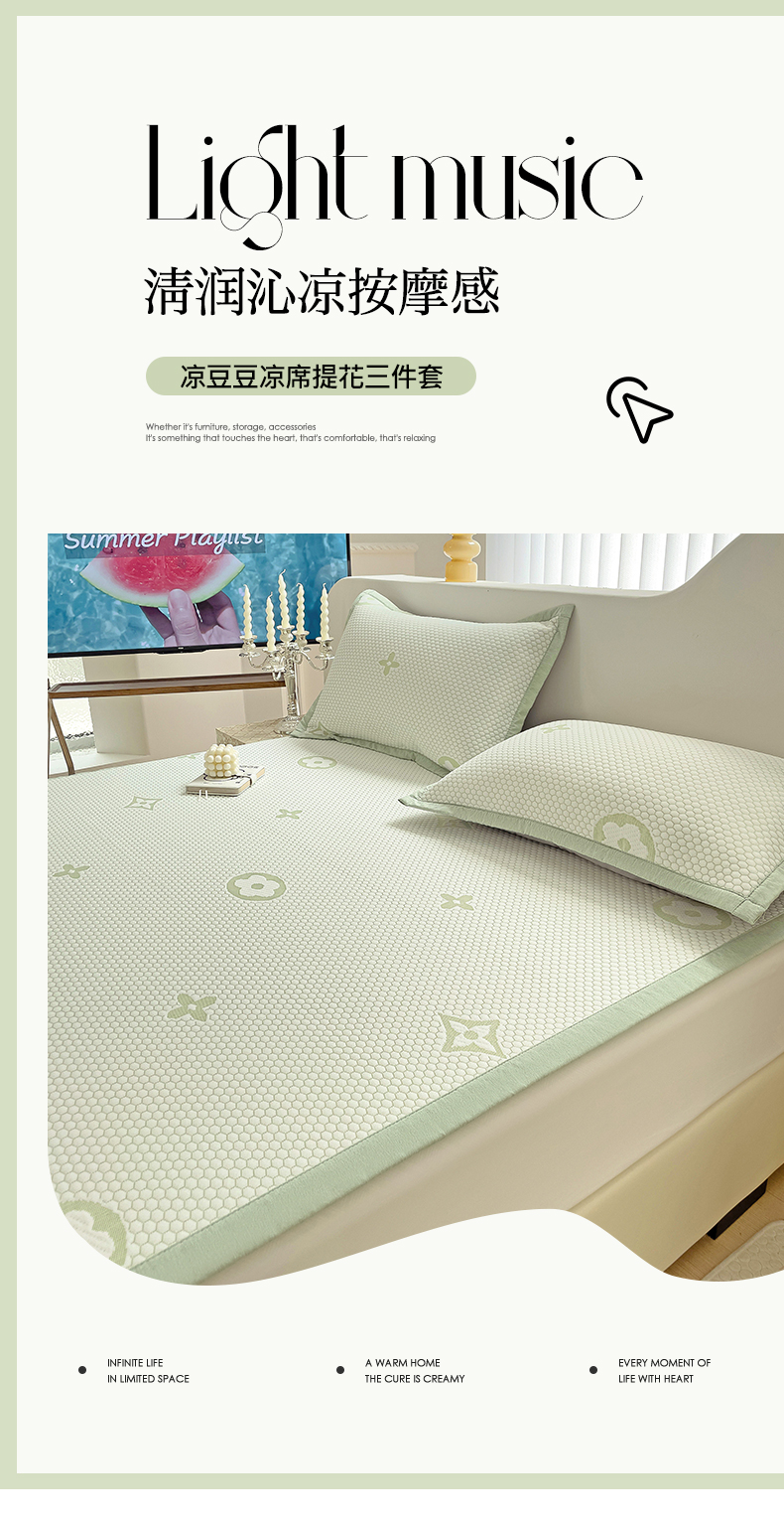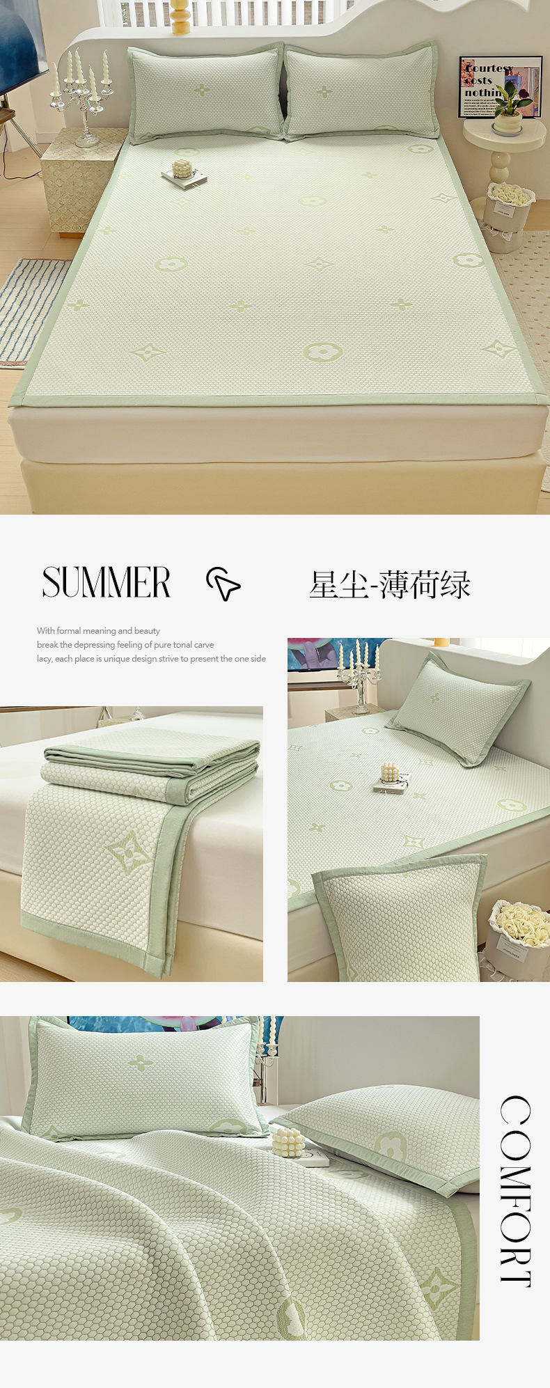 商品名称:逸尚阁 2025新款凉豆豆凉席三件套 星尘-薄荷绿