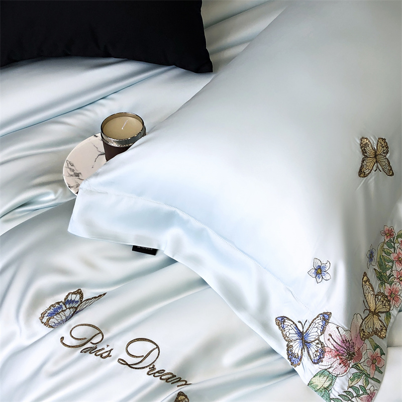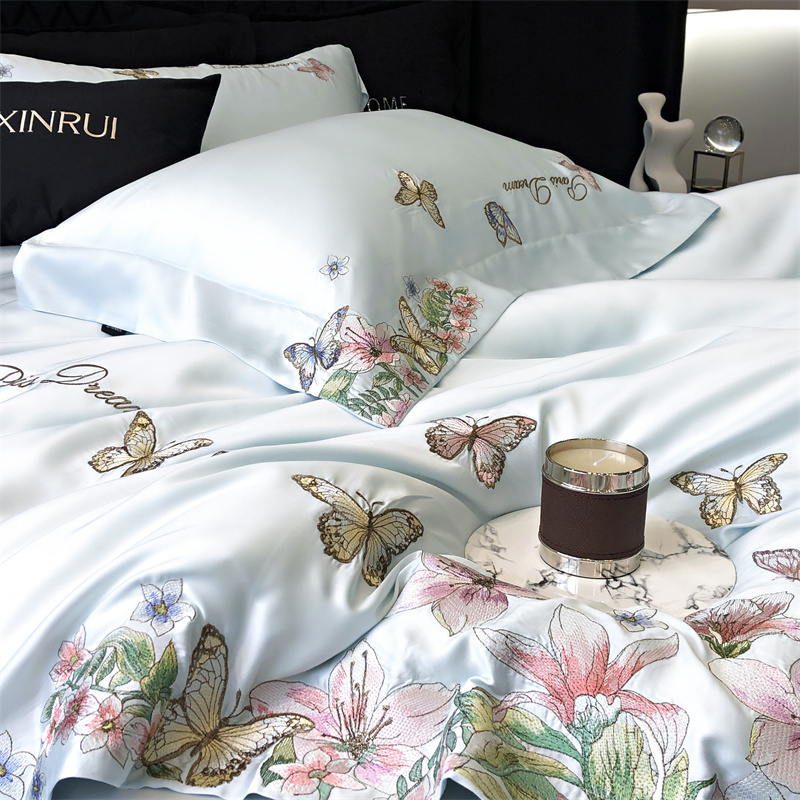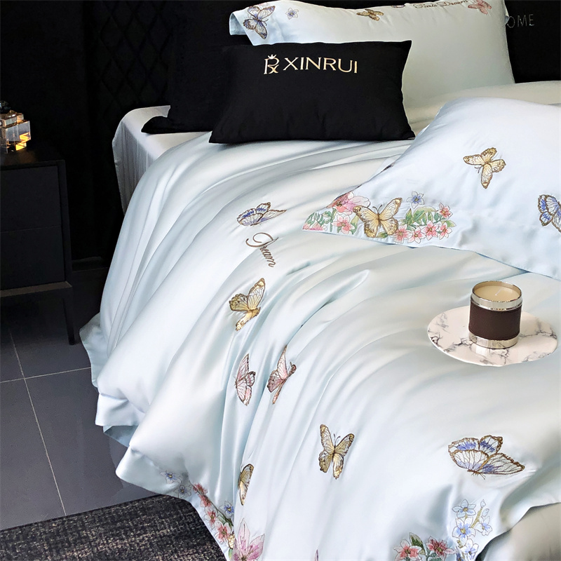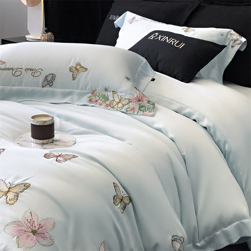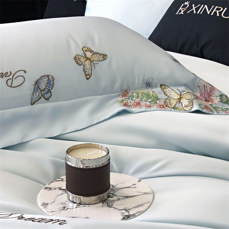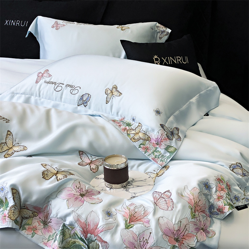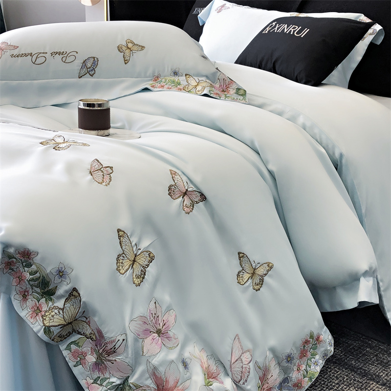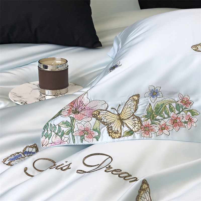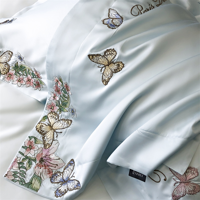 商品名称:馨蕊家居 2024新款春夏100S高奢简约长绒棉四件套-棉蝶舞花间 蝶舞花间-北卡蓝