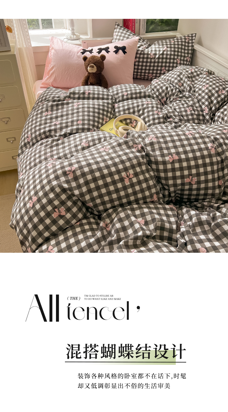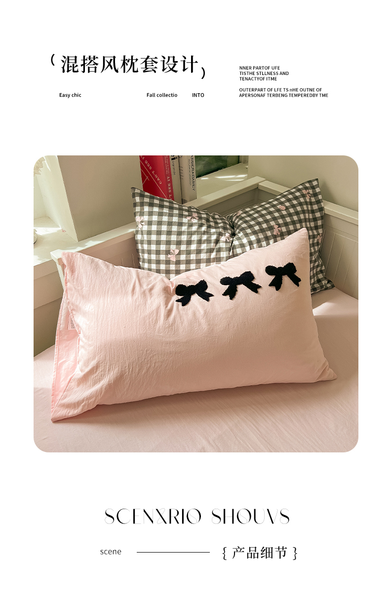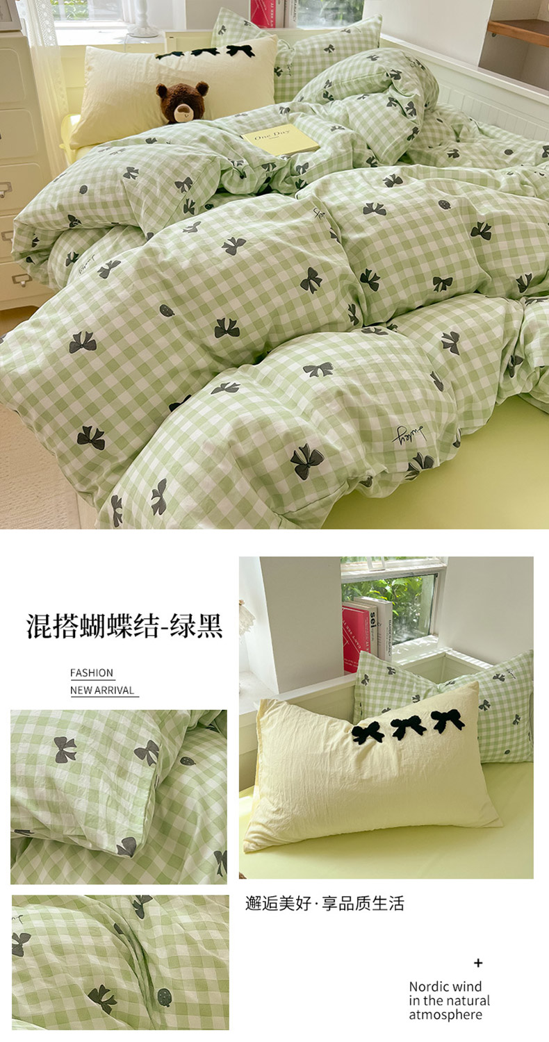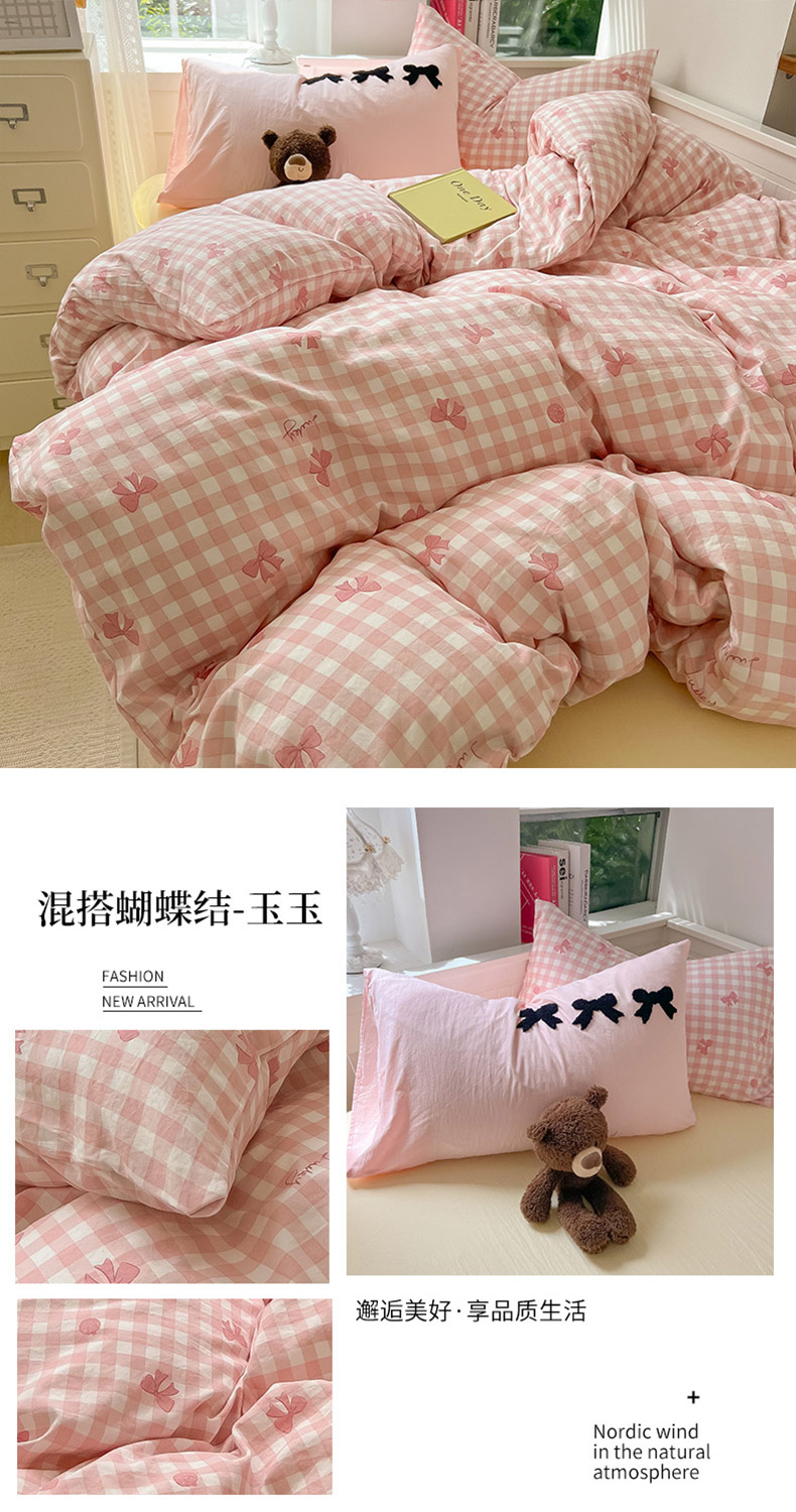 (总)韩都家居 2024新款ins风超柔水洗云朵棉混搭蝴蝶结四件套