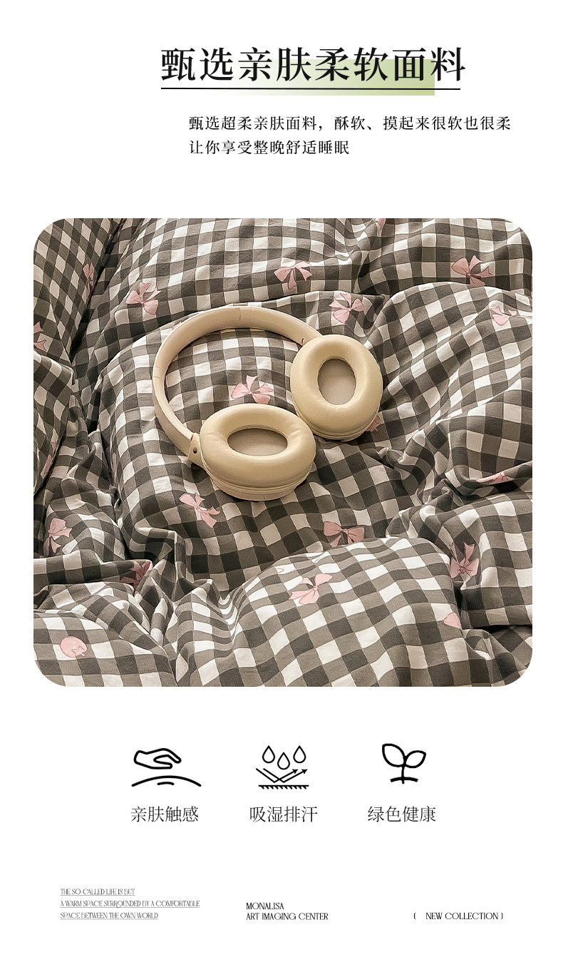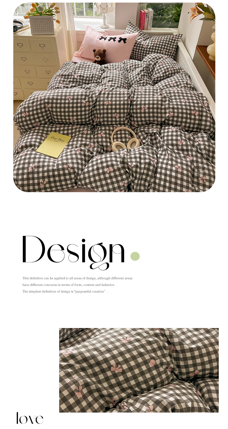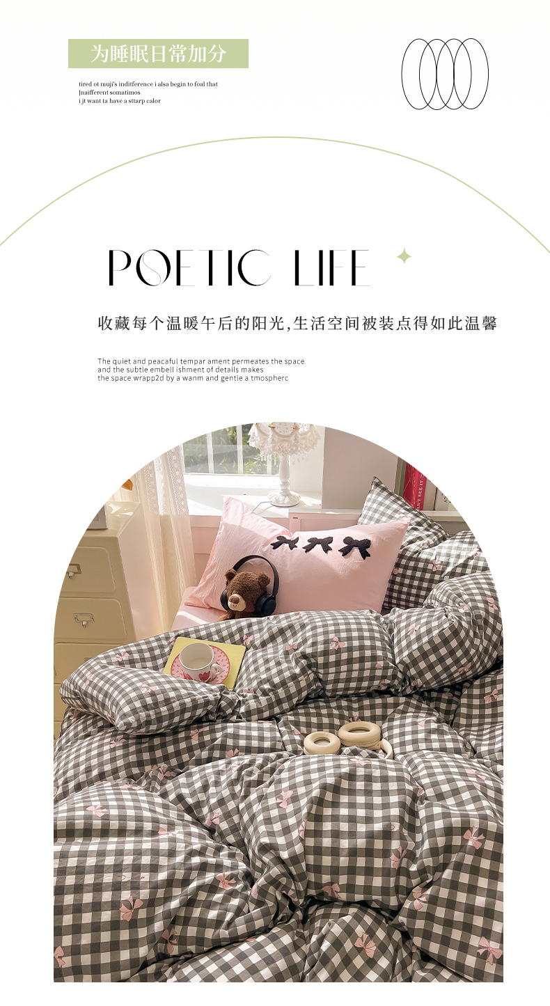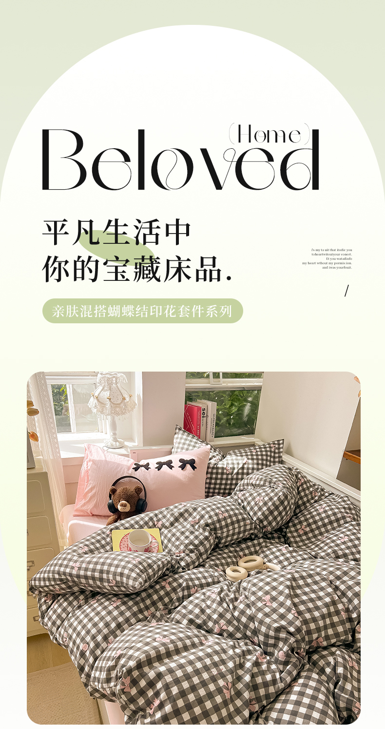 (总)韩都家居 2024新款ins风超柔水洗云朵棉混搭蝴蝶结四件套