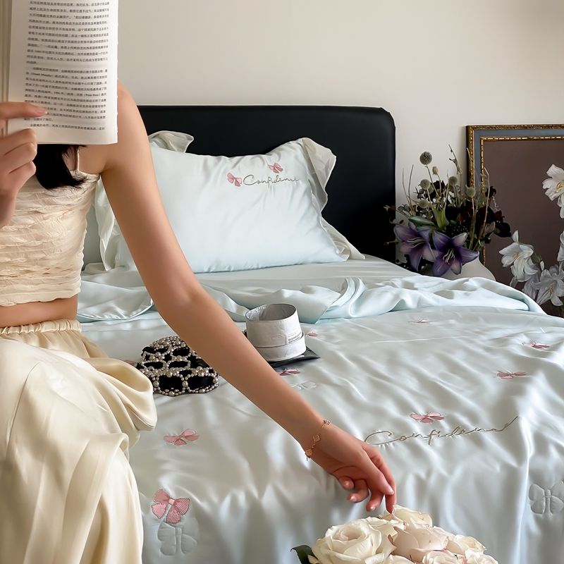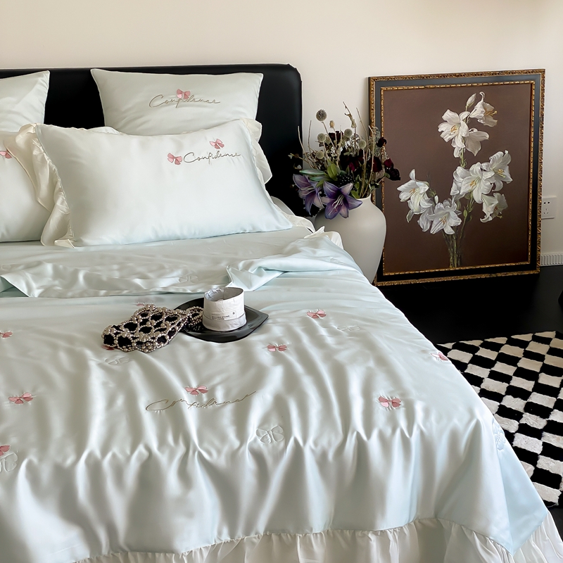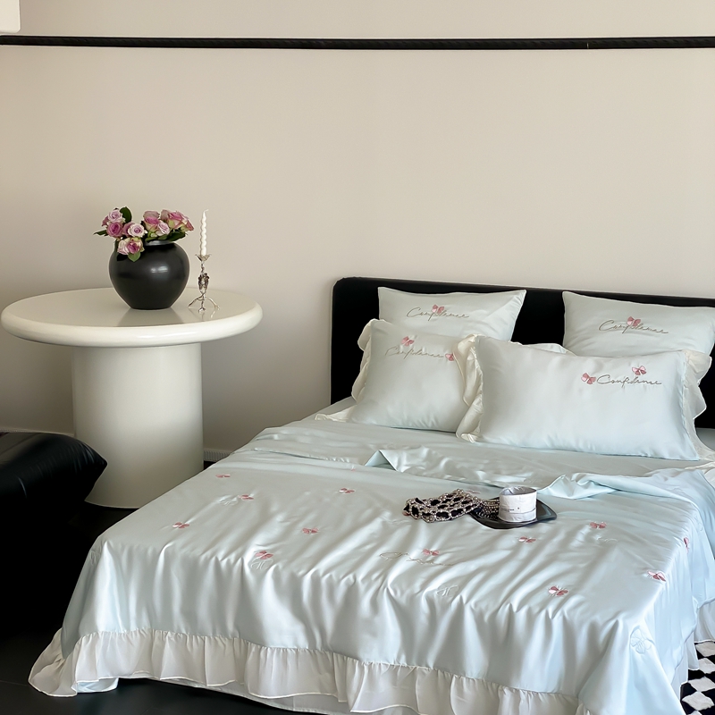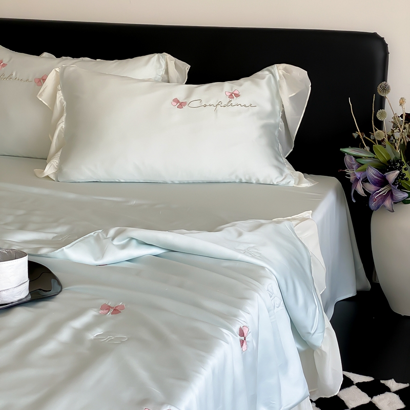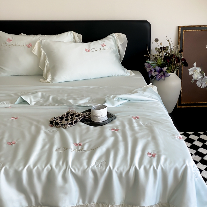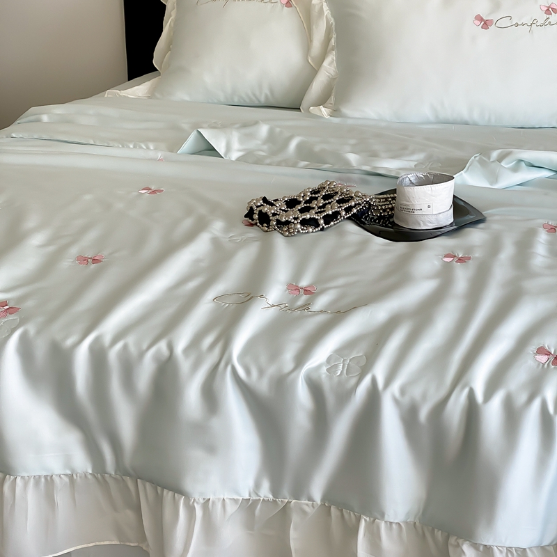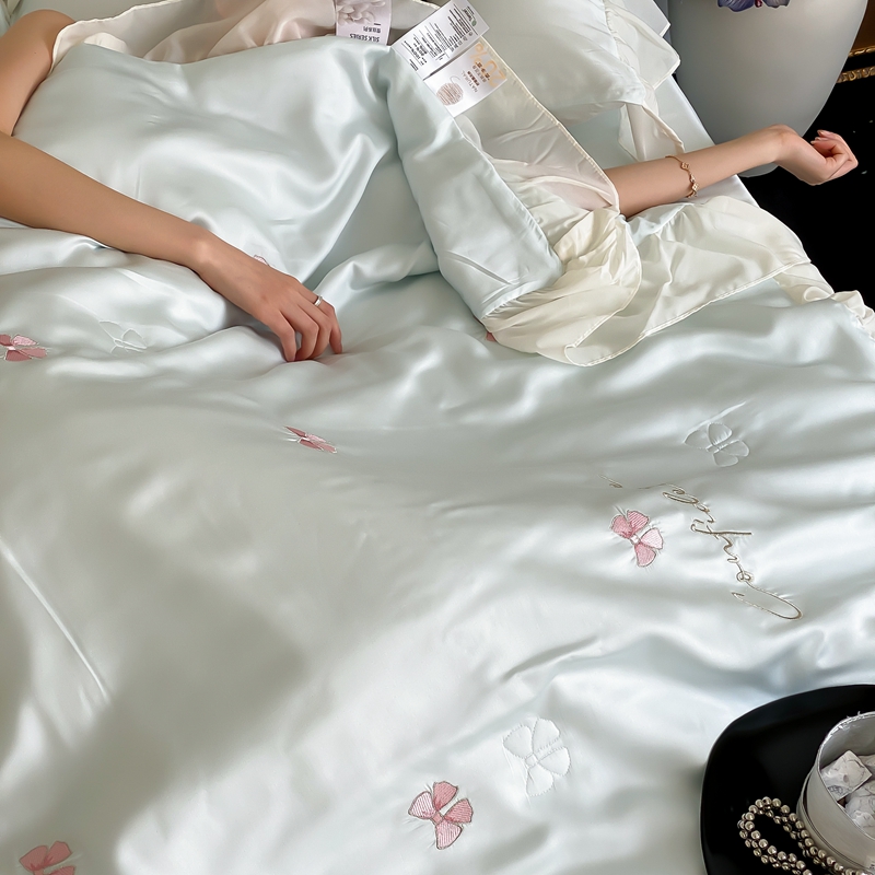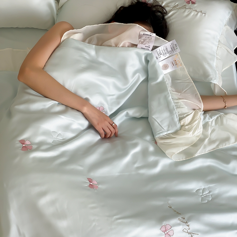 商品名称:曼布缇 2025新款100S兰精天丝蚕丝棉夏被四件套-艾丽莎 艾丽莎-水雾绿