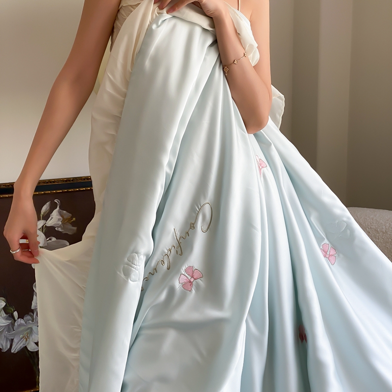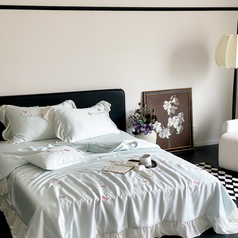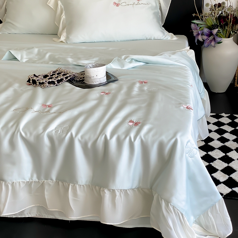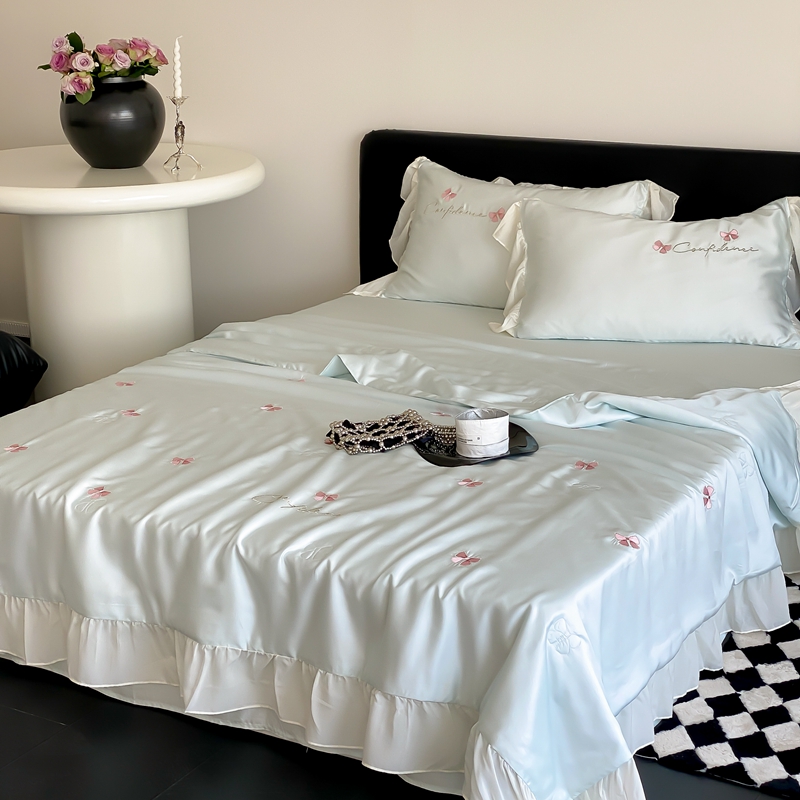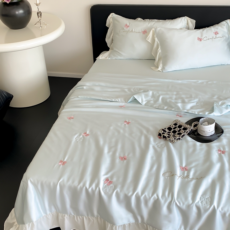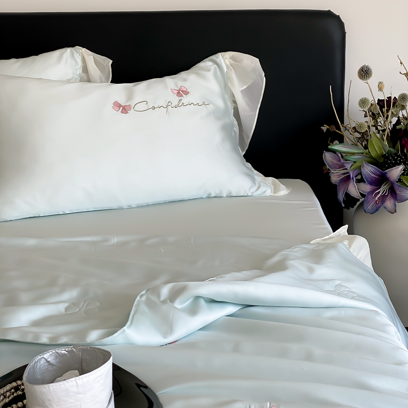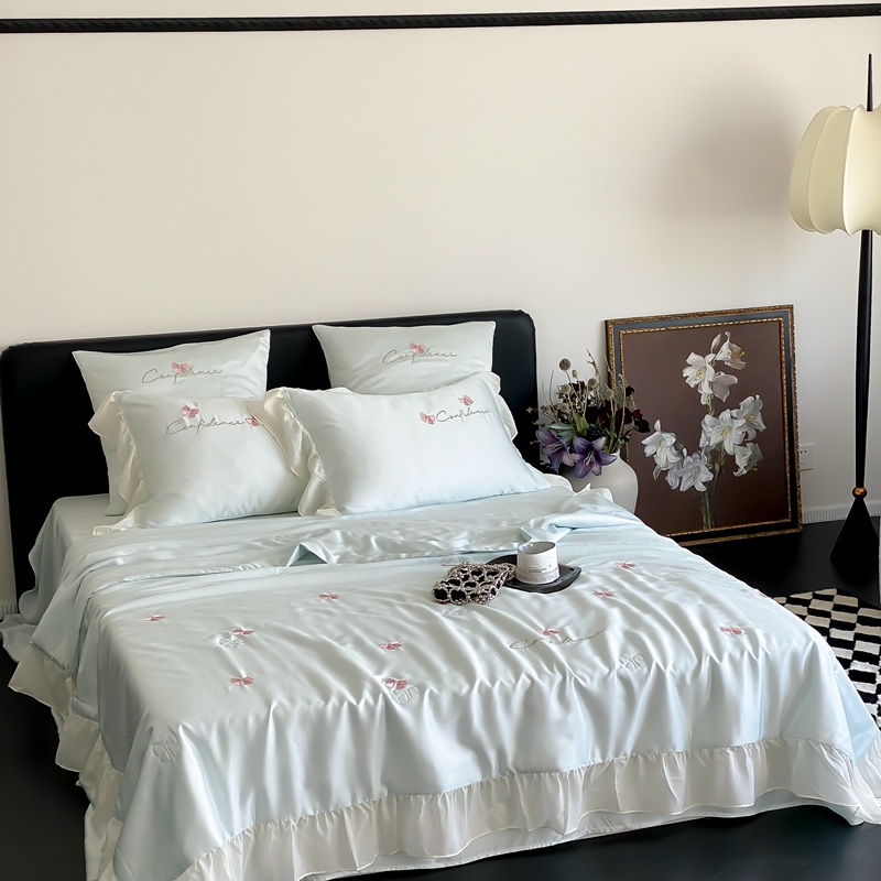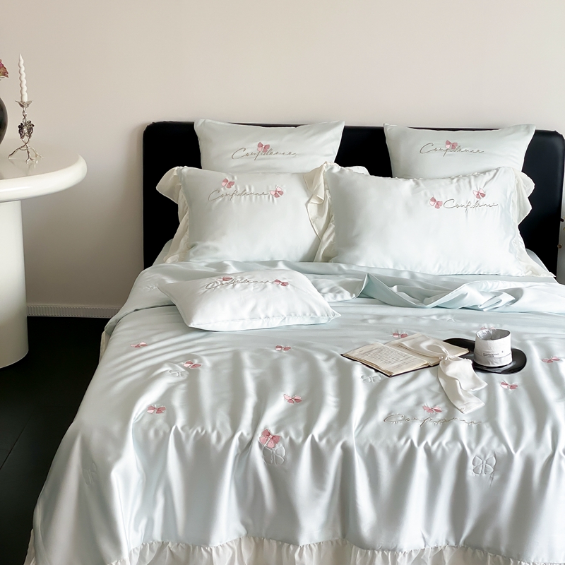 商品名称:曼布缇 2025新款100S兰精天丝蚕丝棉夏被四件套-艾丽莎 艾丽莎-水雾绿