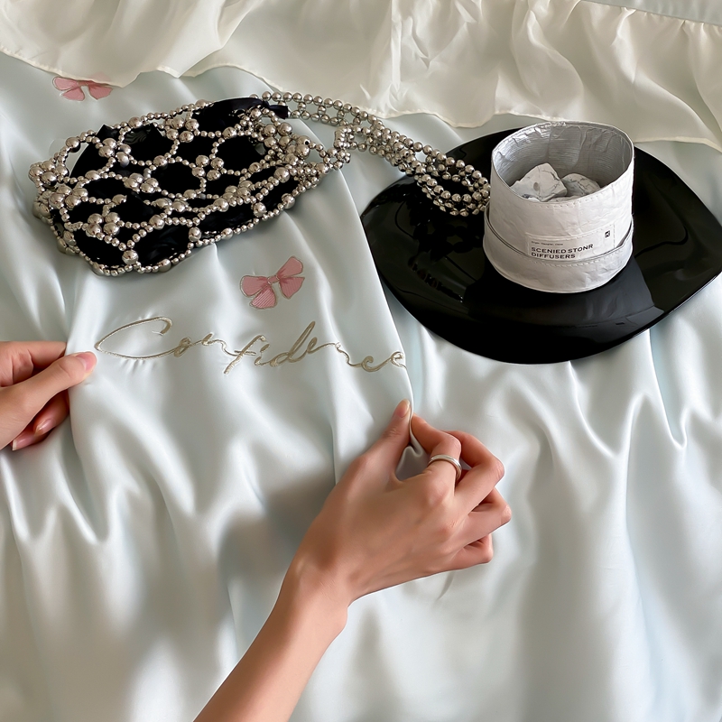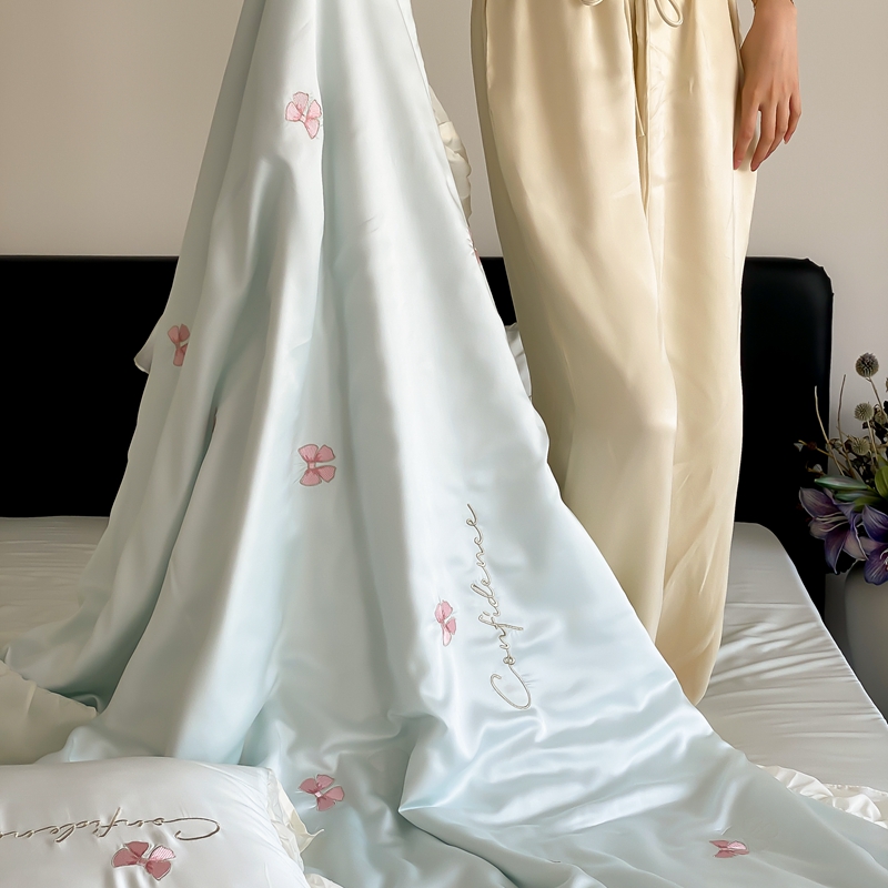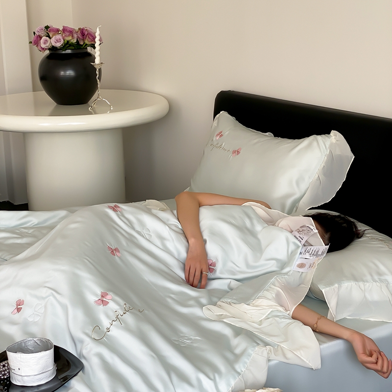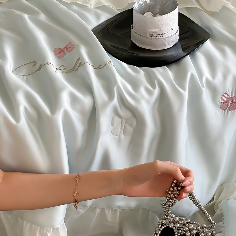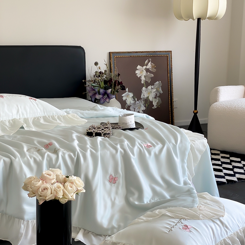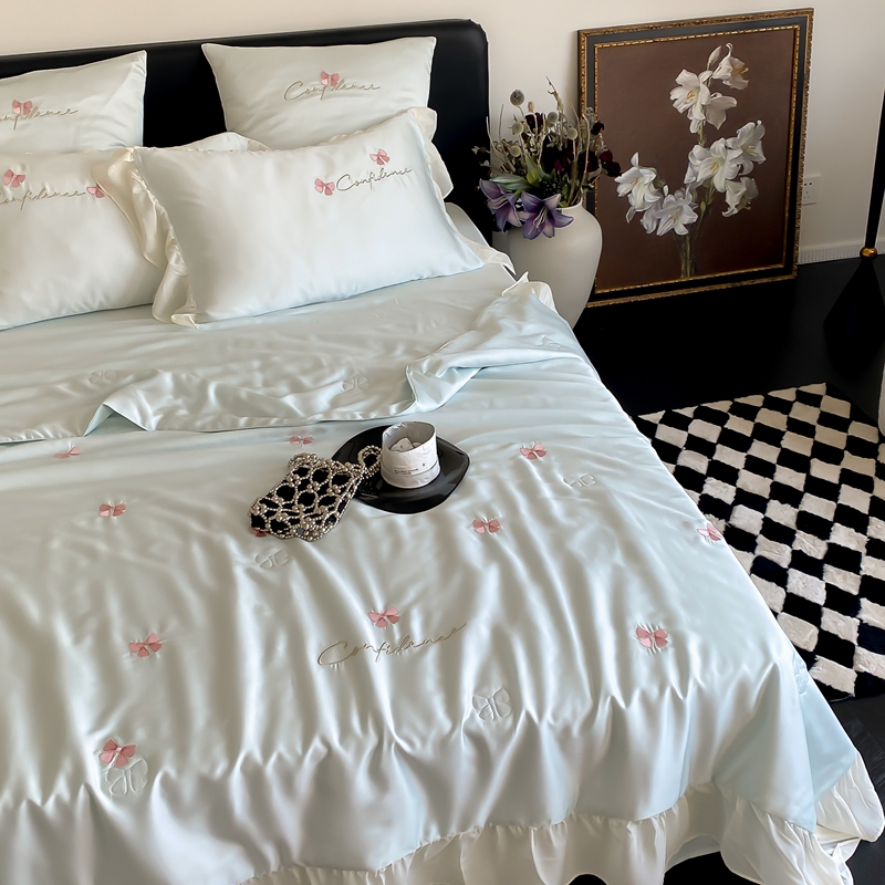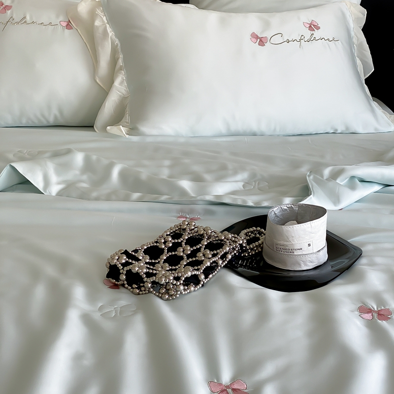 商品名称:曼布缇 2025新款100S兰精天丝蚕丝棉夏被四件套-艾丽莎 艾丽莎-水雾绿
