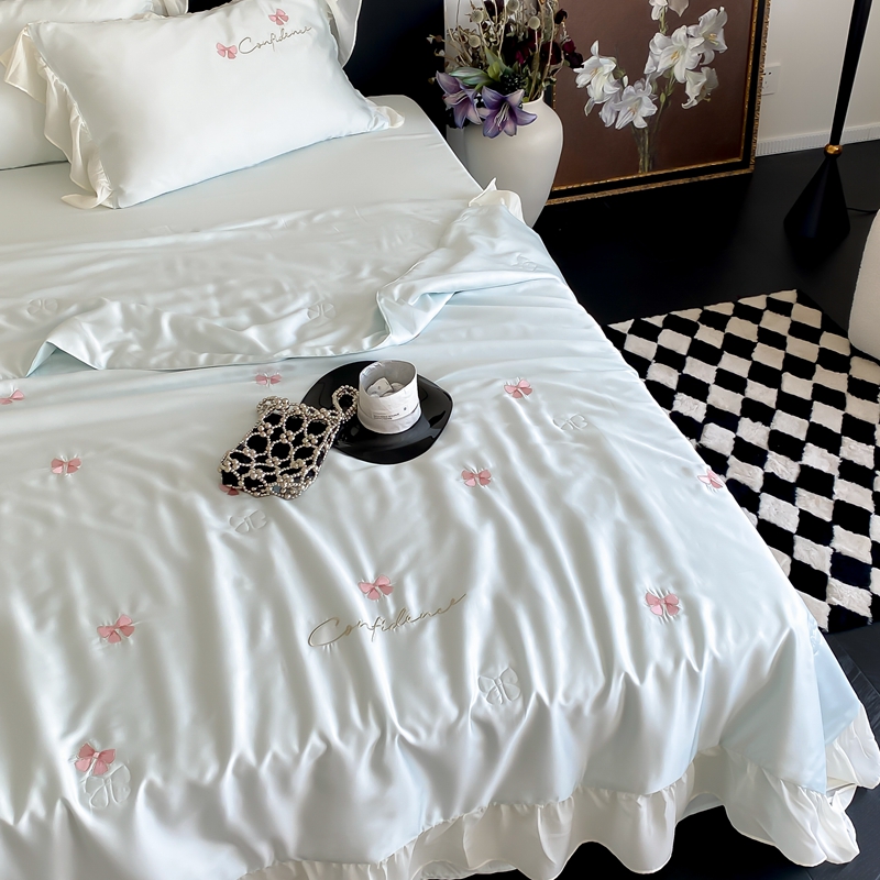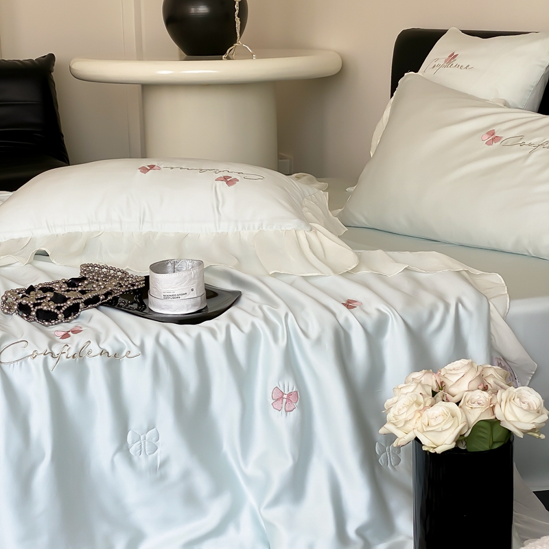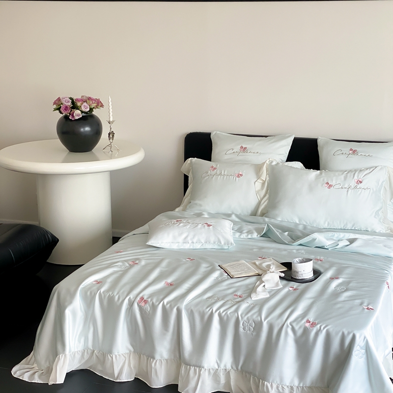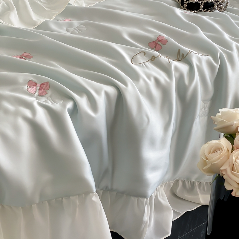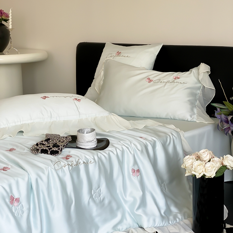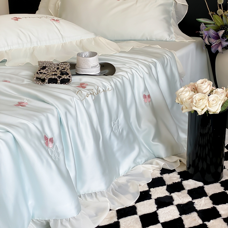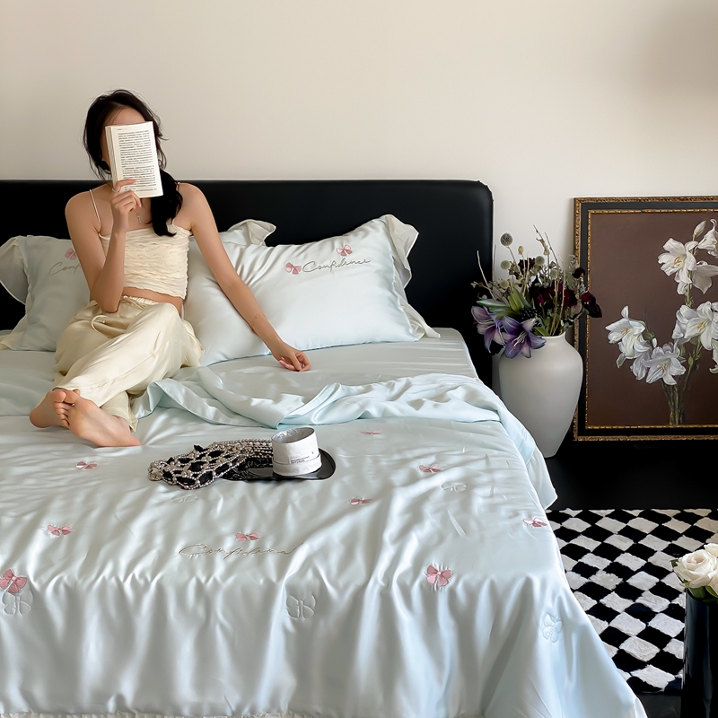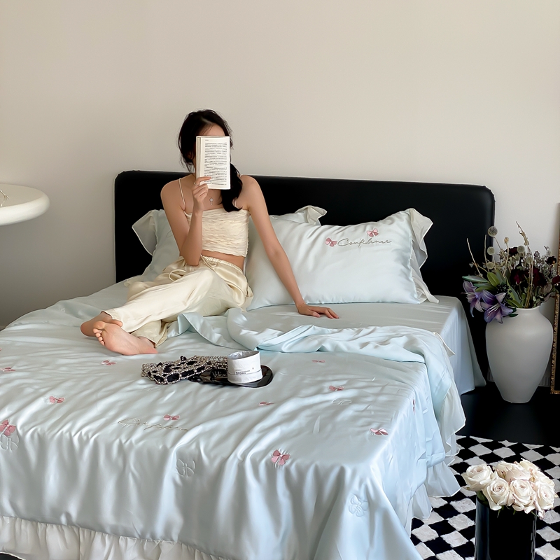 商品名称:曼布缇 2025新款100S兰精天丝蚕丝棉夏被四件套-艾丽莎 艾丽莎-水雾绿