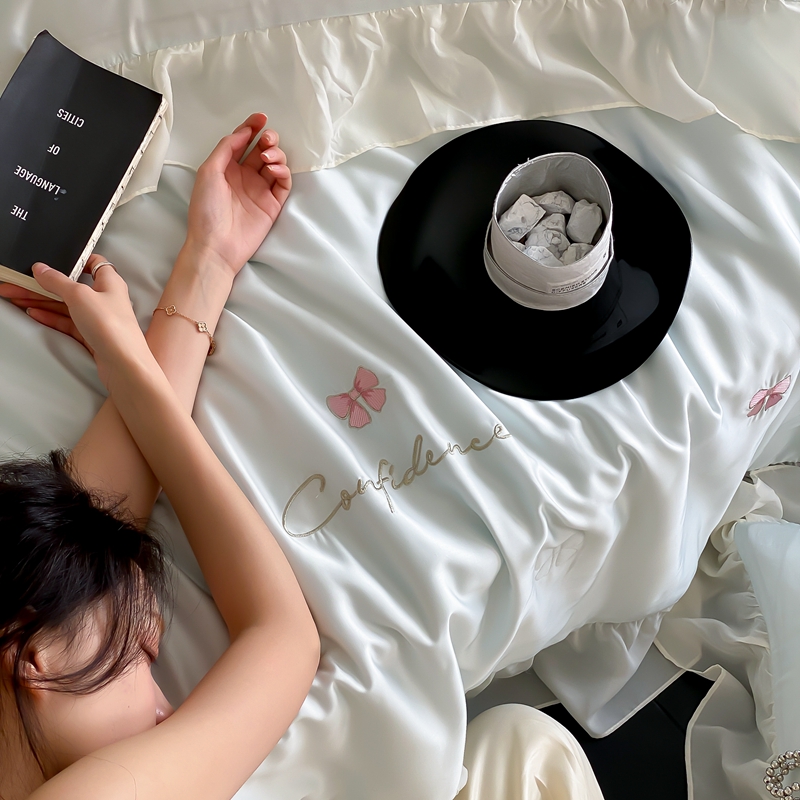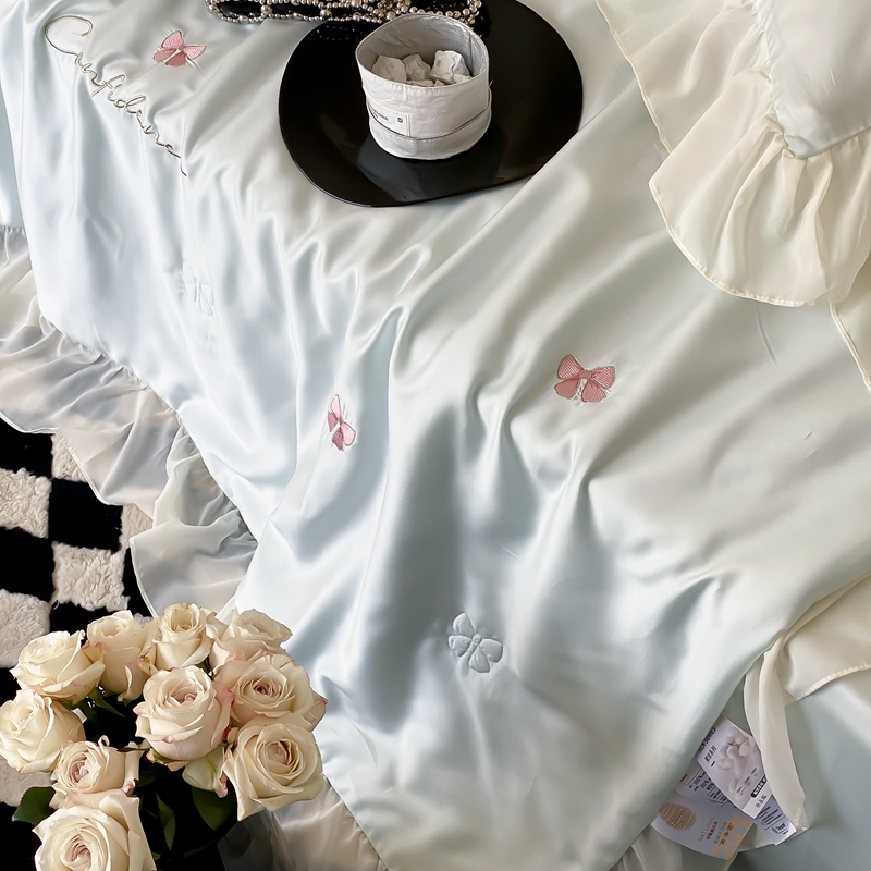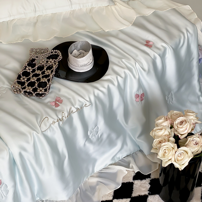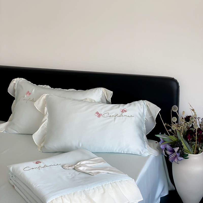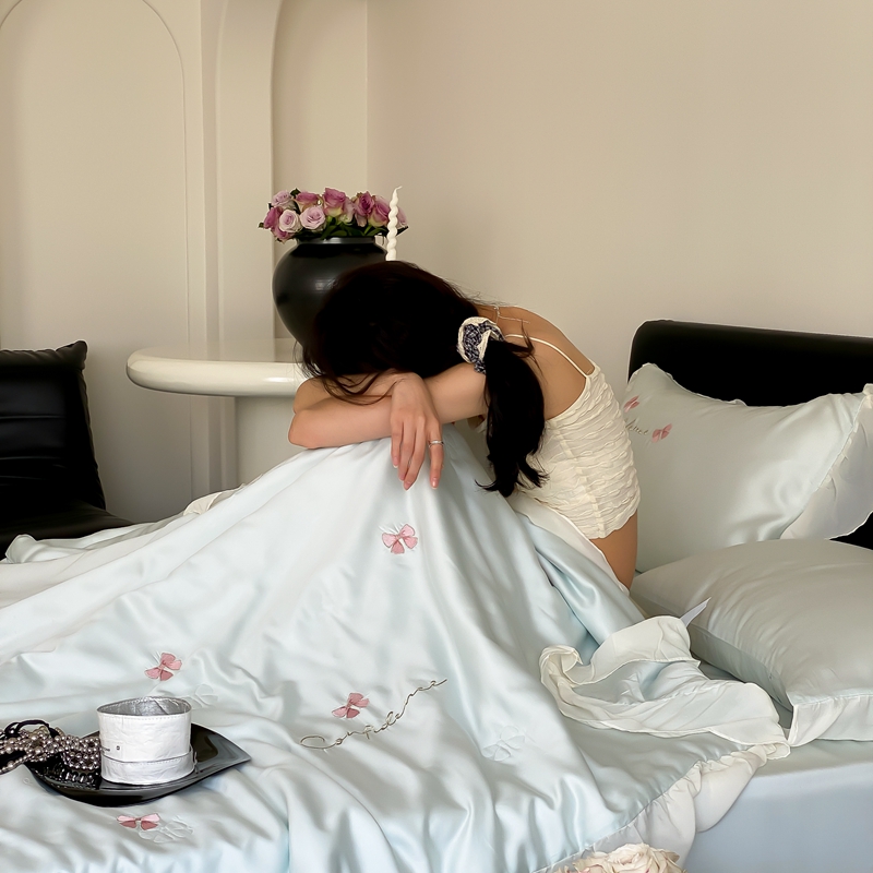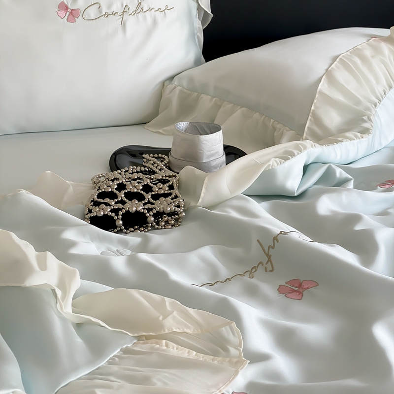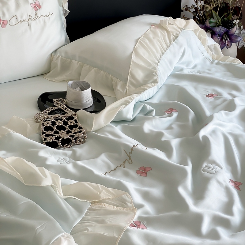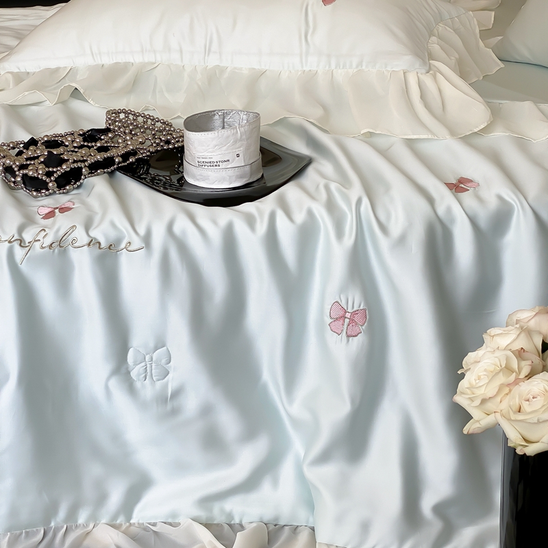 商品名称:曼布缇 2025新款100S兰精天丝蚕丝棉夏被四件套-艾丽莎 艾丽莎-水雾绿