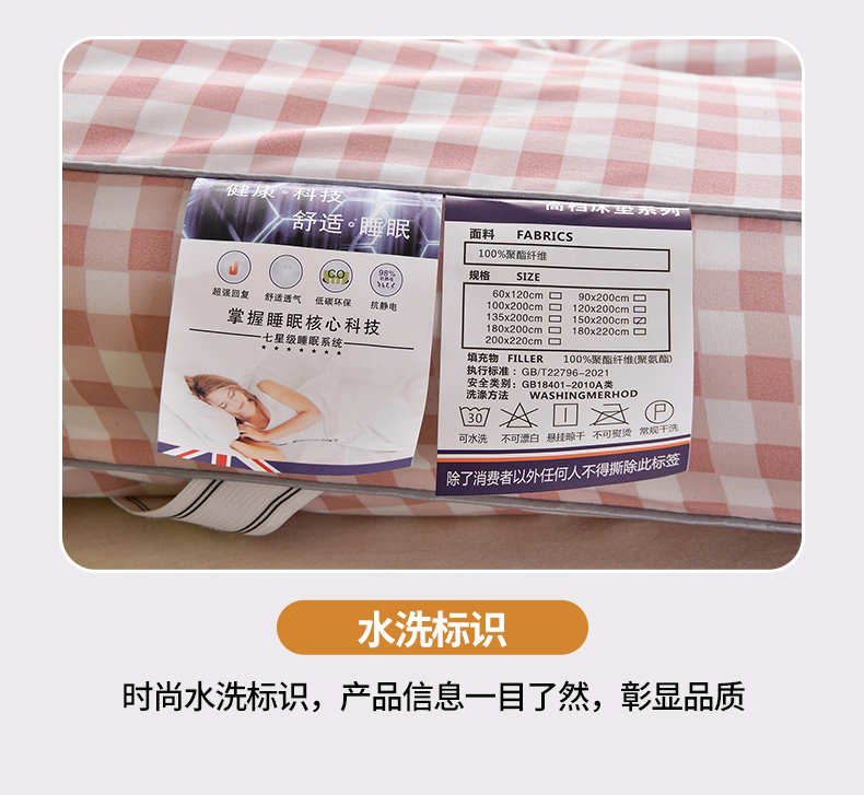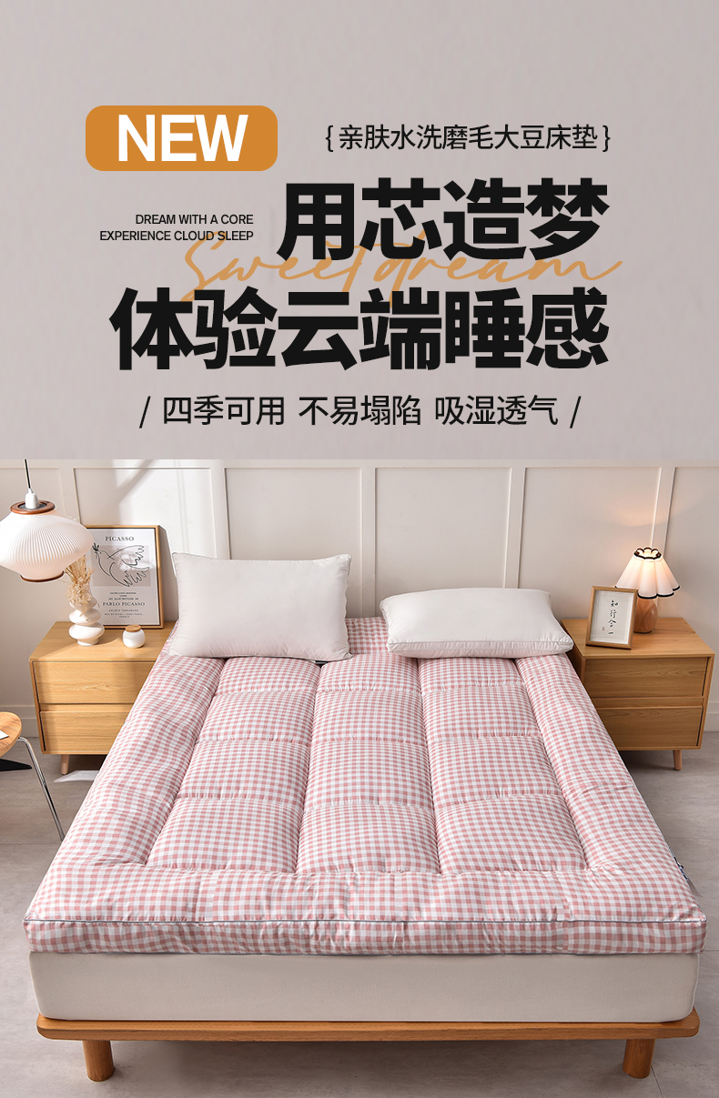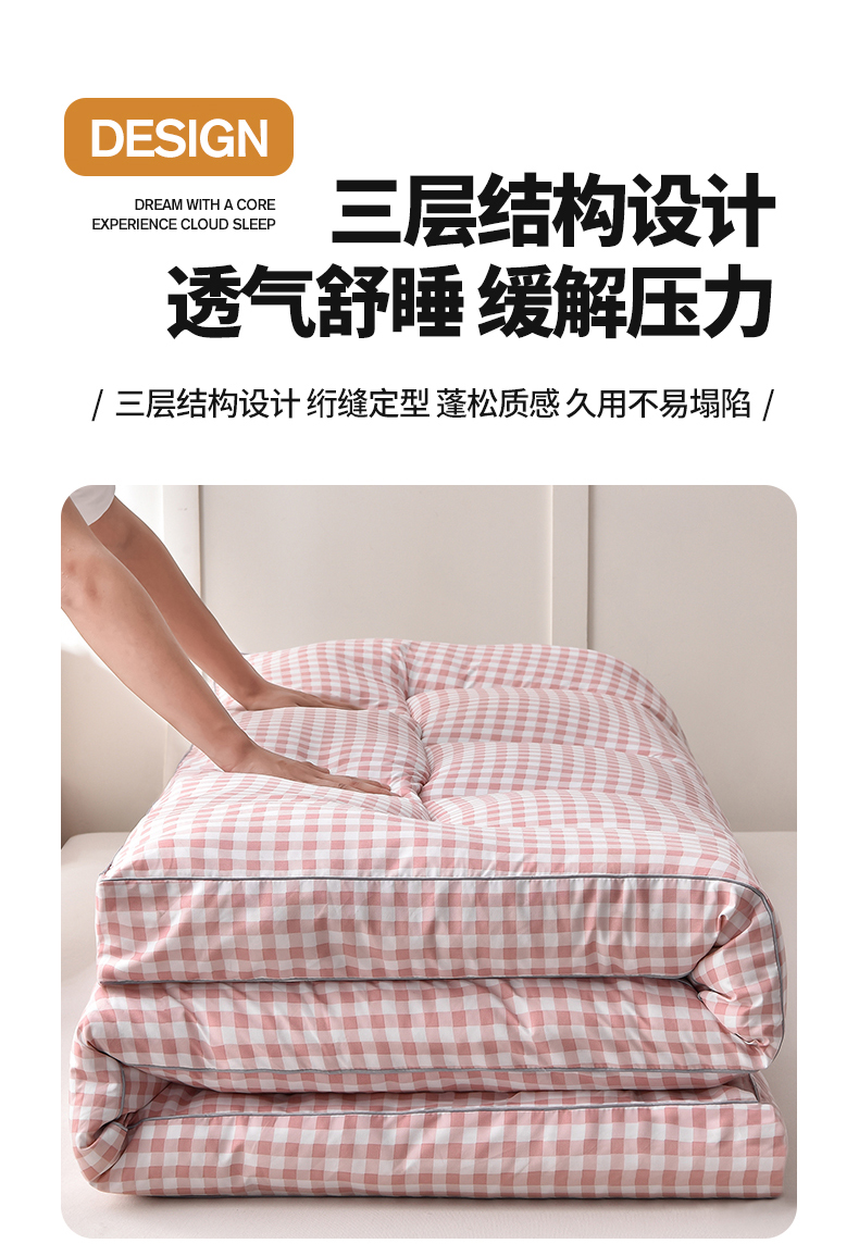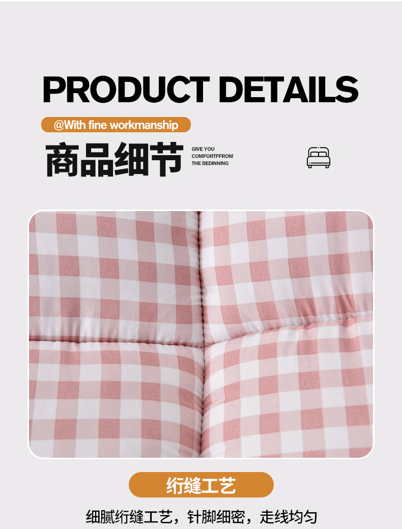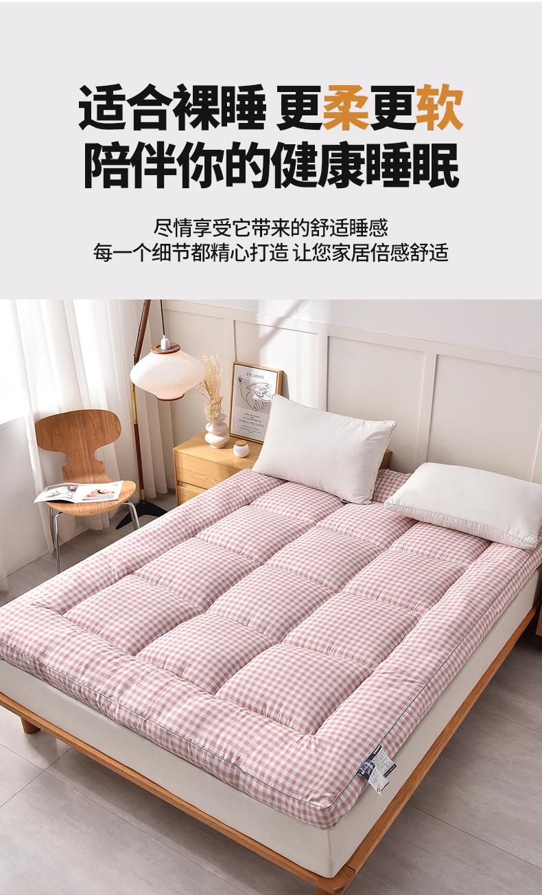 当前位置: 91家纺网 > 商品网购 > 床垫/床褥 > 普通床垫 > 易展家居 2024新款加厚立体大豆羽丝绒酒店学生床垫 粉小格