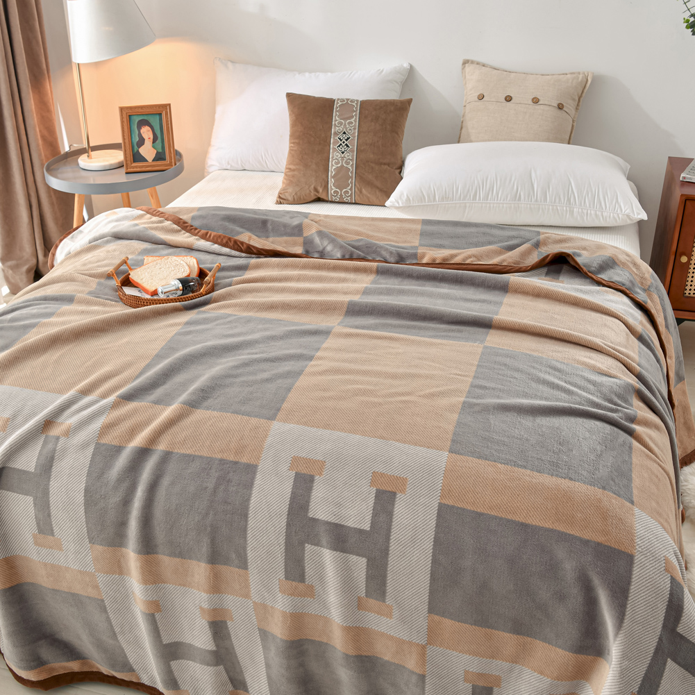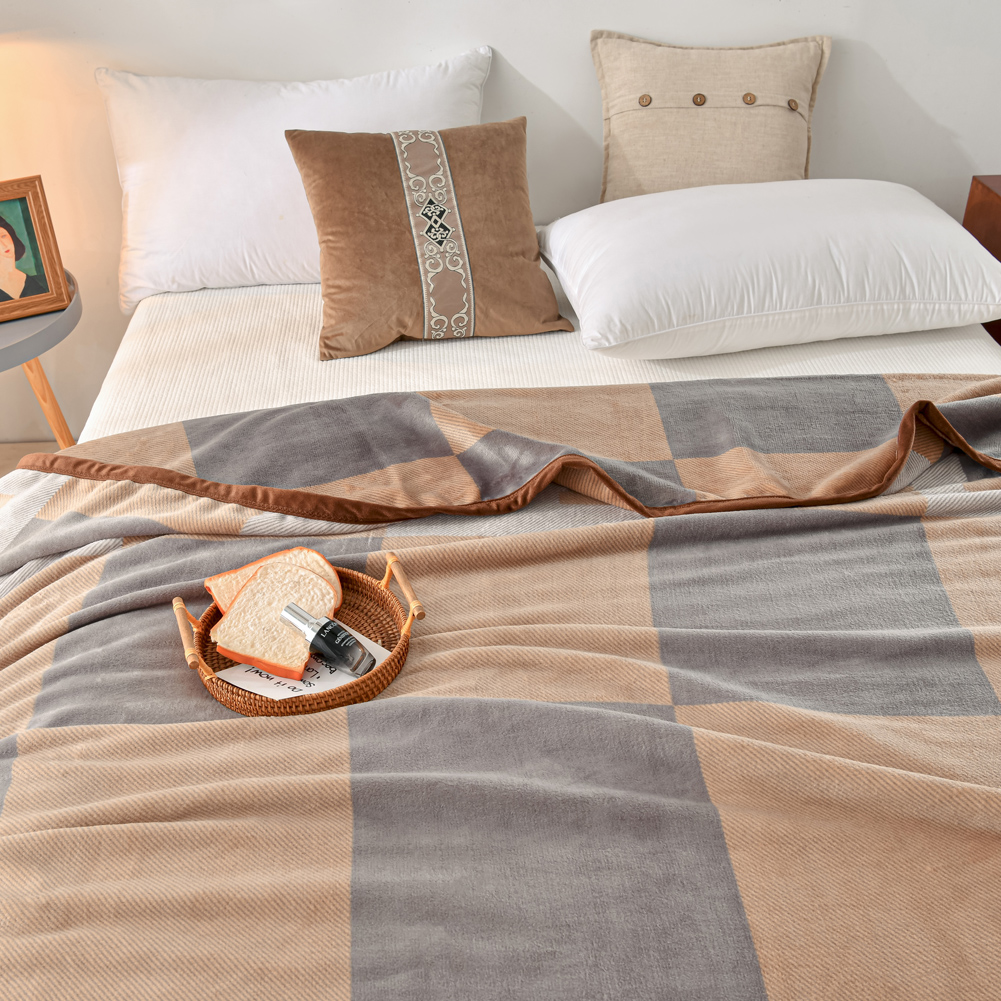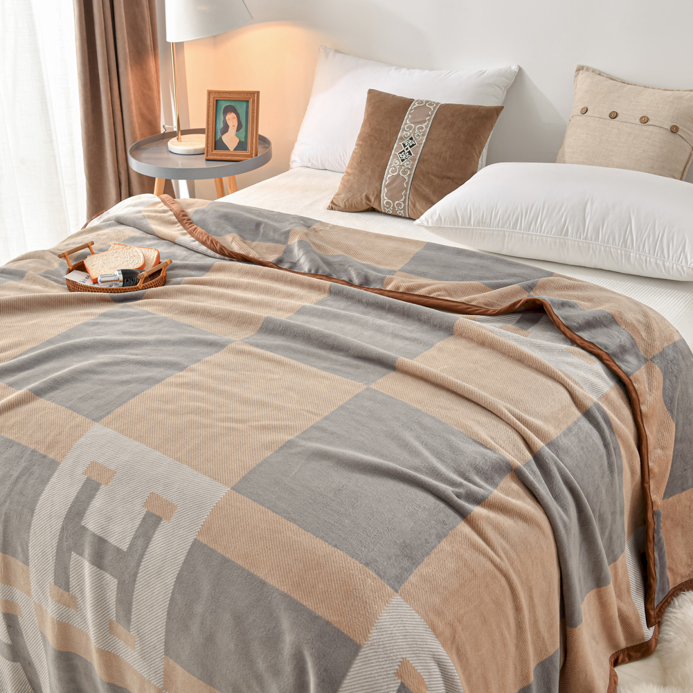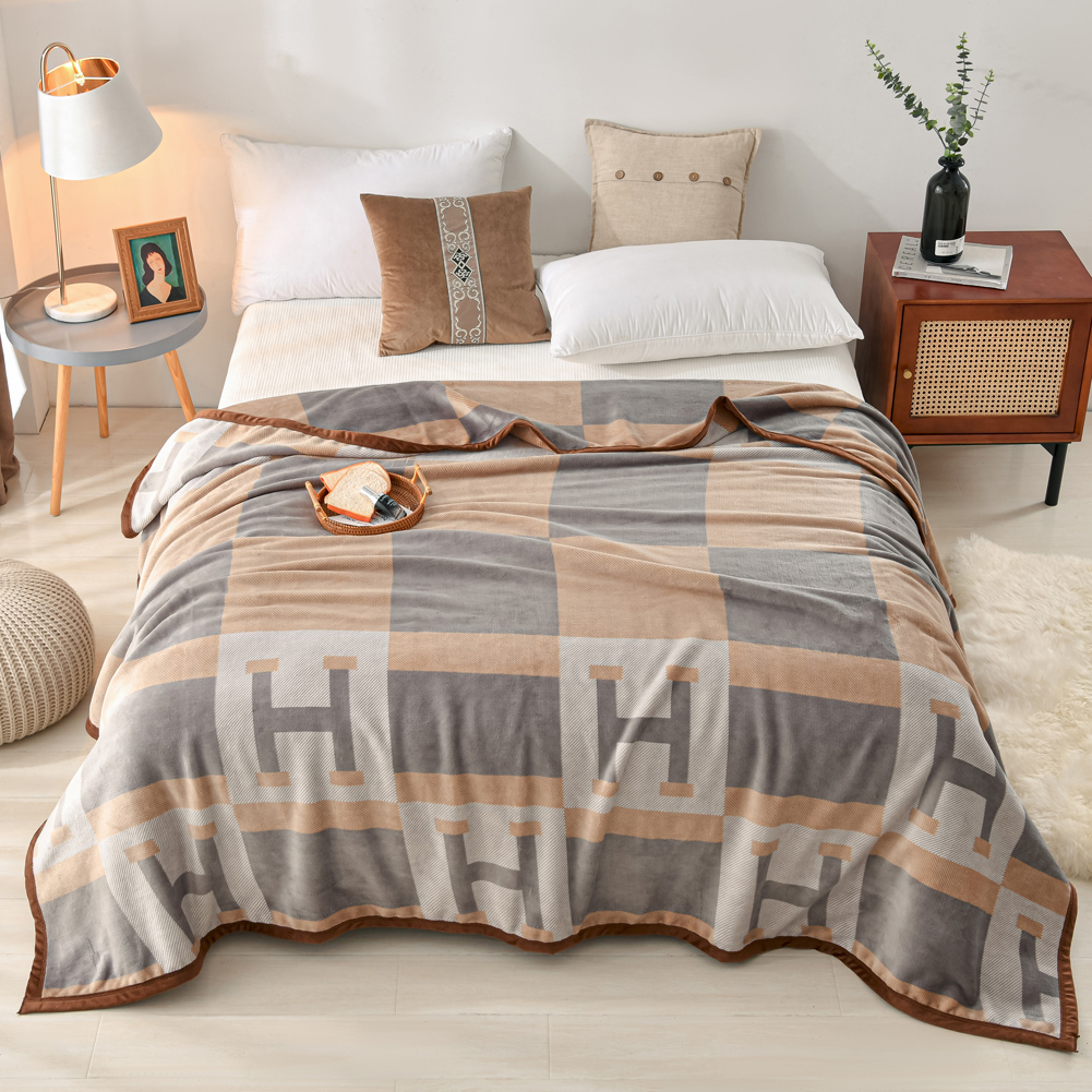 卡奥家纺 2024新款双层AB版云貂绒毛毯法莱绒休闲盖毯沙发毯空调毯子 里亚-灰