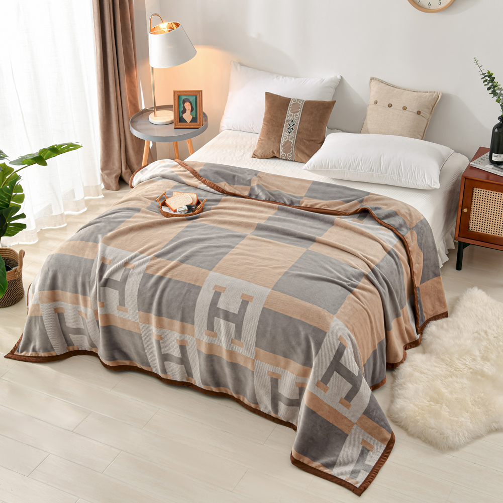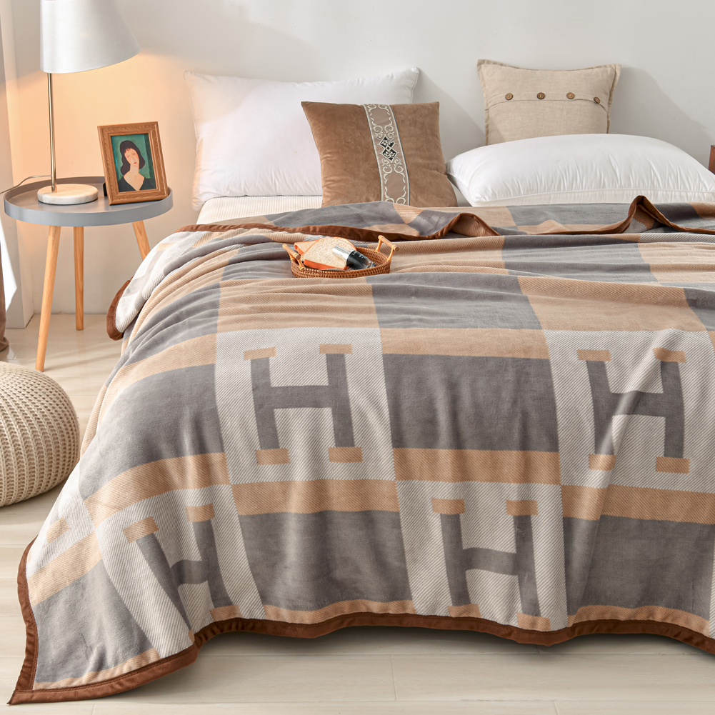 总 2023双层大版AB版云貂绒毛毯法莱绒休闲盖毯沙发空调毯,骏马,圣马罗-黄,圣马罗-兰