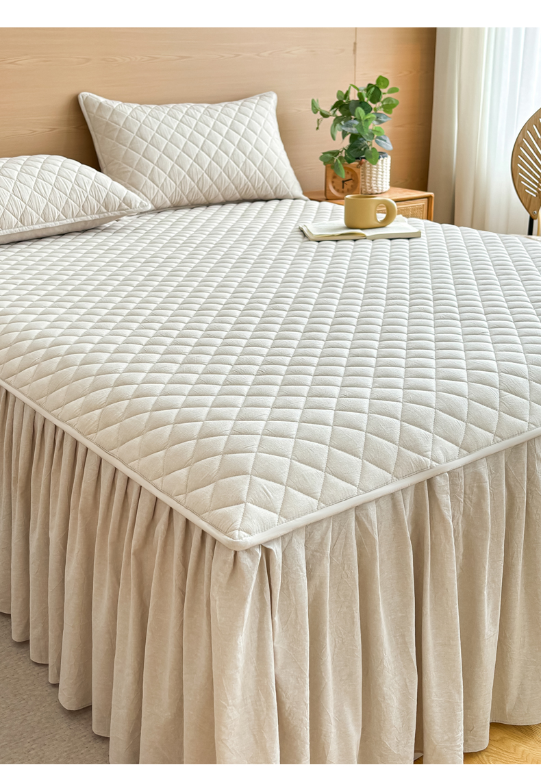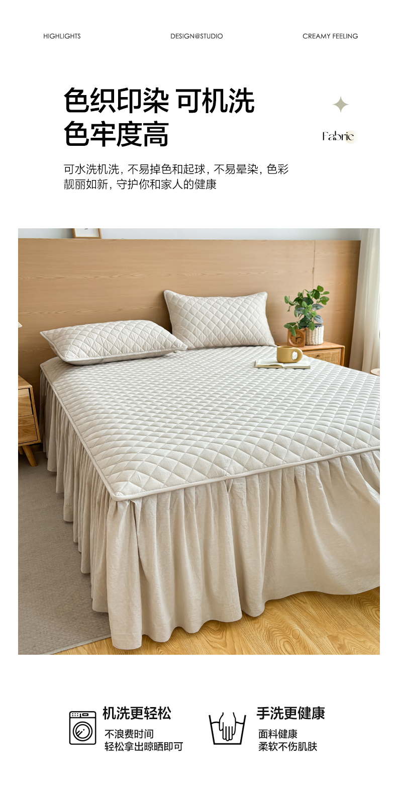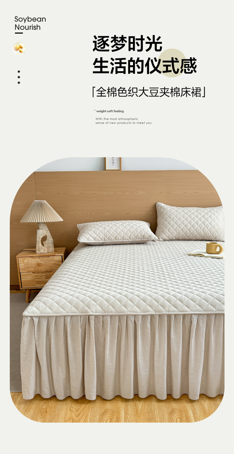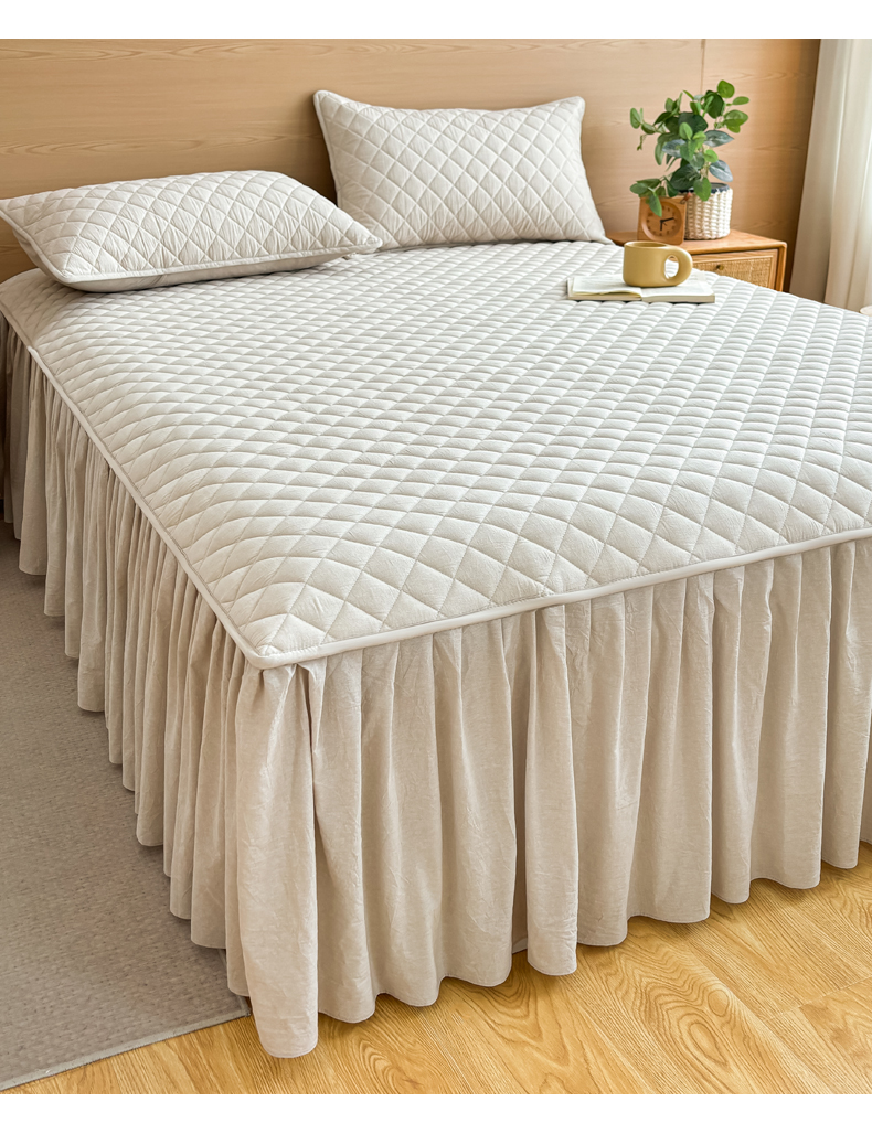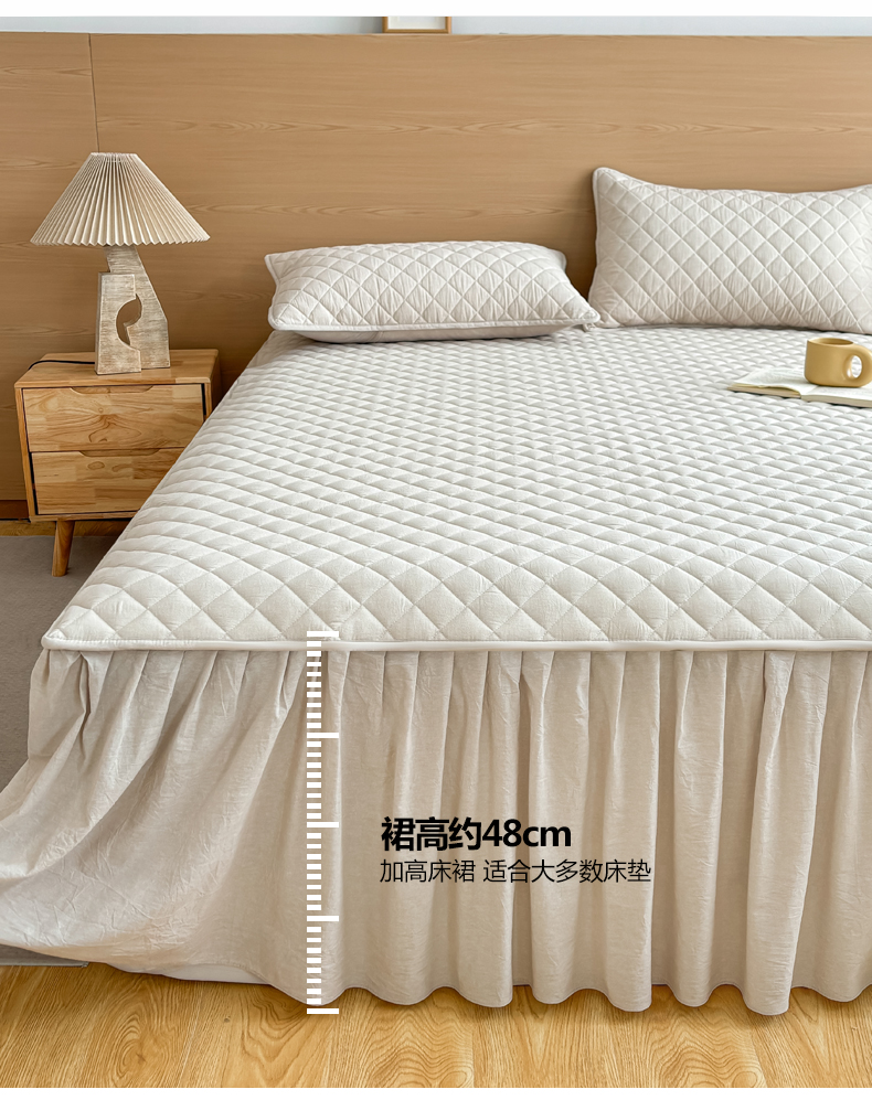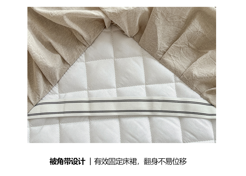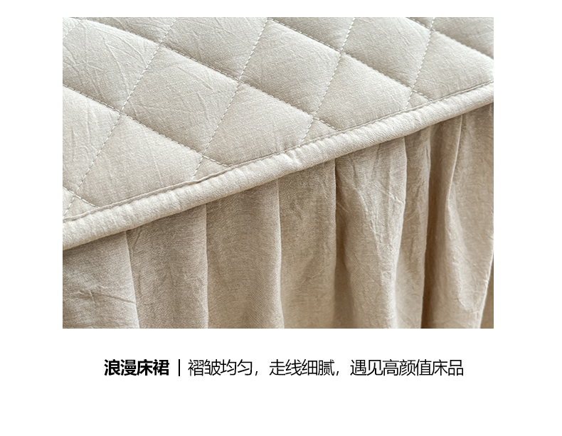 商品名称:糯米猪家纺 2024新款全棉色织水洗棉夹棉床裙 浅卡其