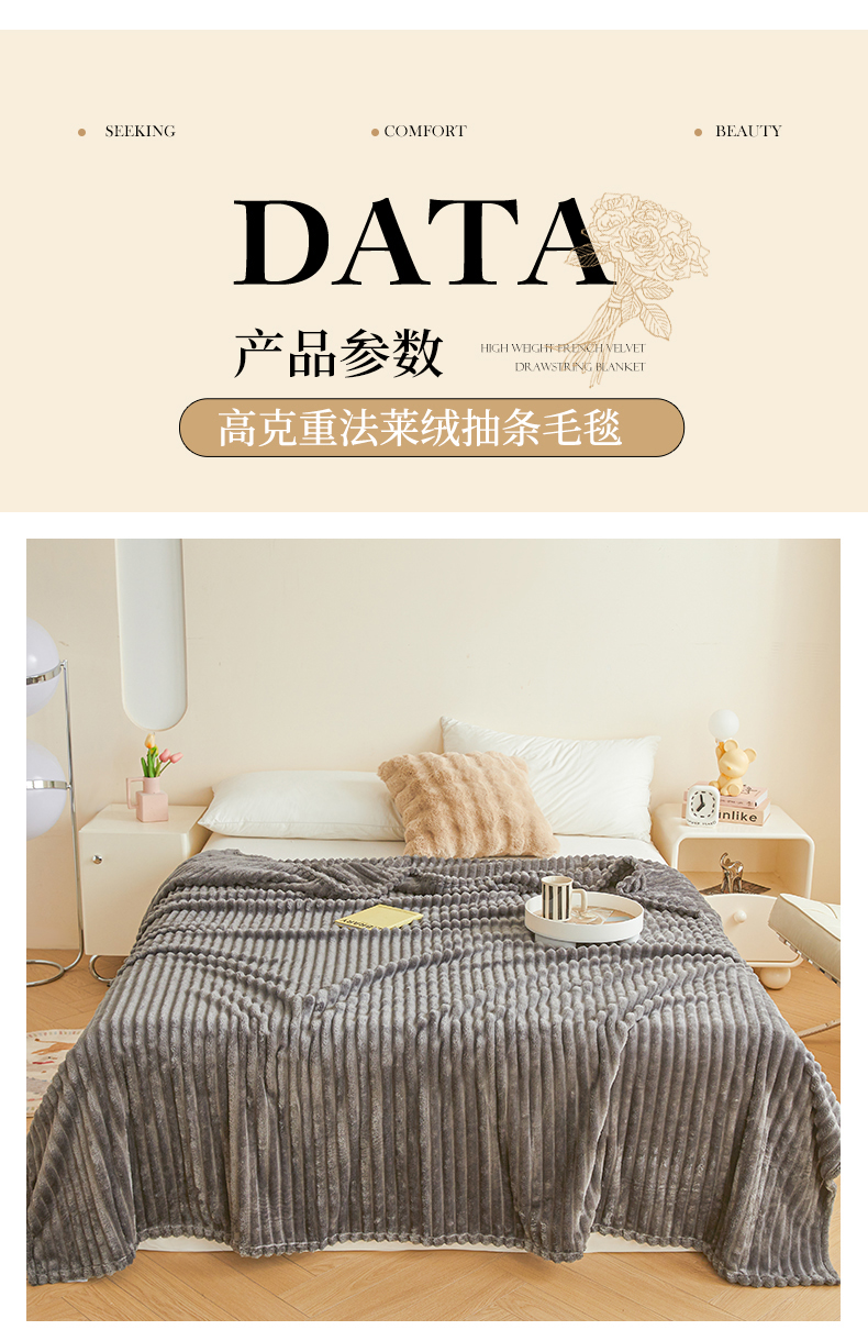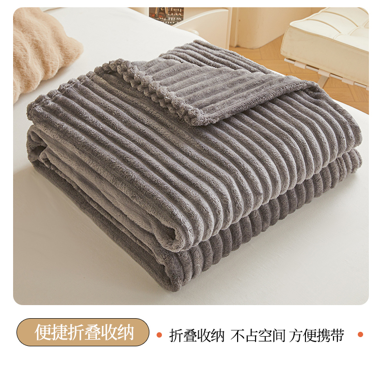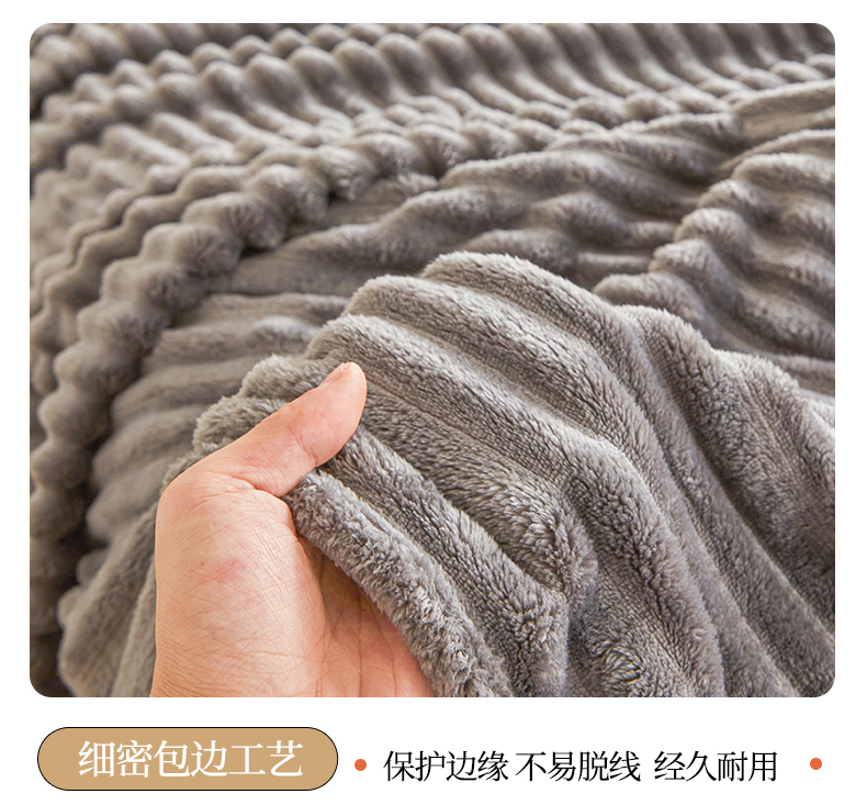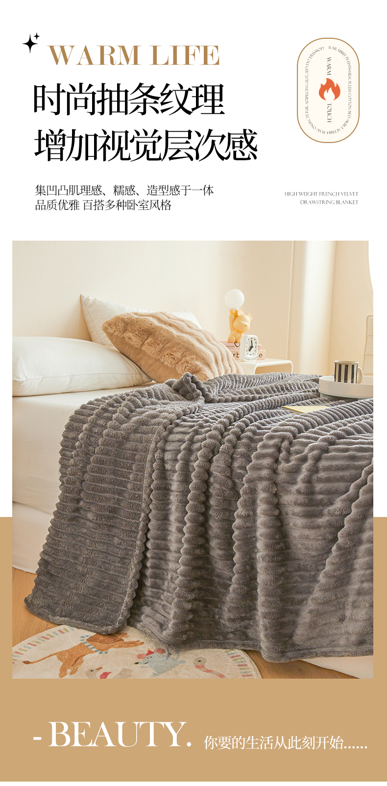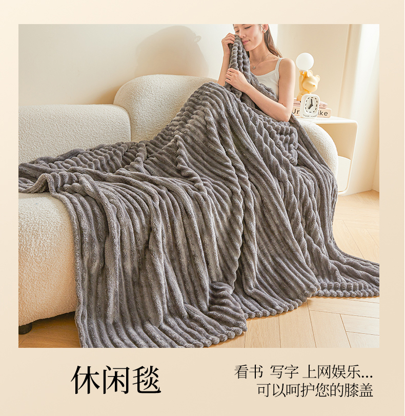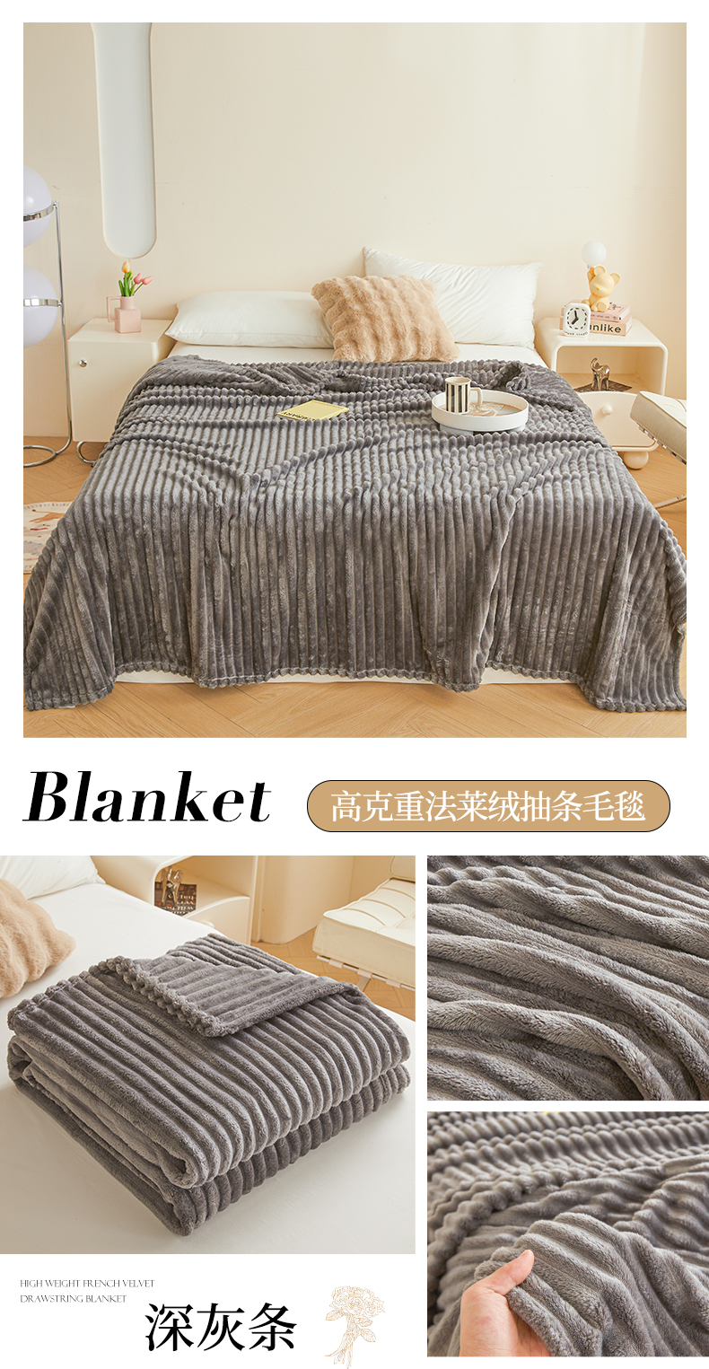 商品名称:予梦家纺 2024新款加厚纯色宽抽条剪花仿兔毛绒牛奶绒法兰绒盖毯(可供跨境) 深灰条