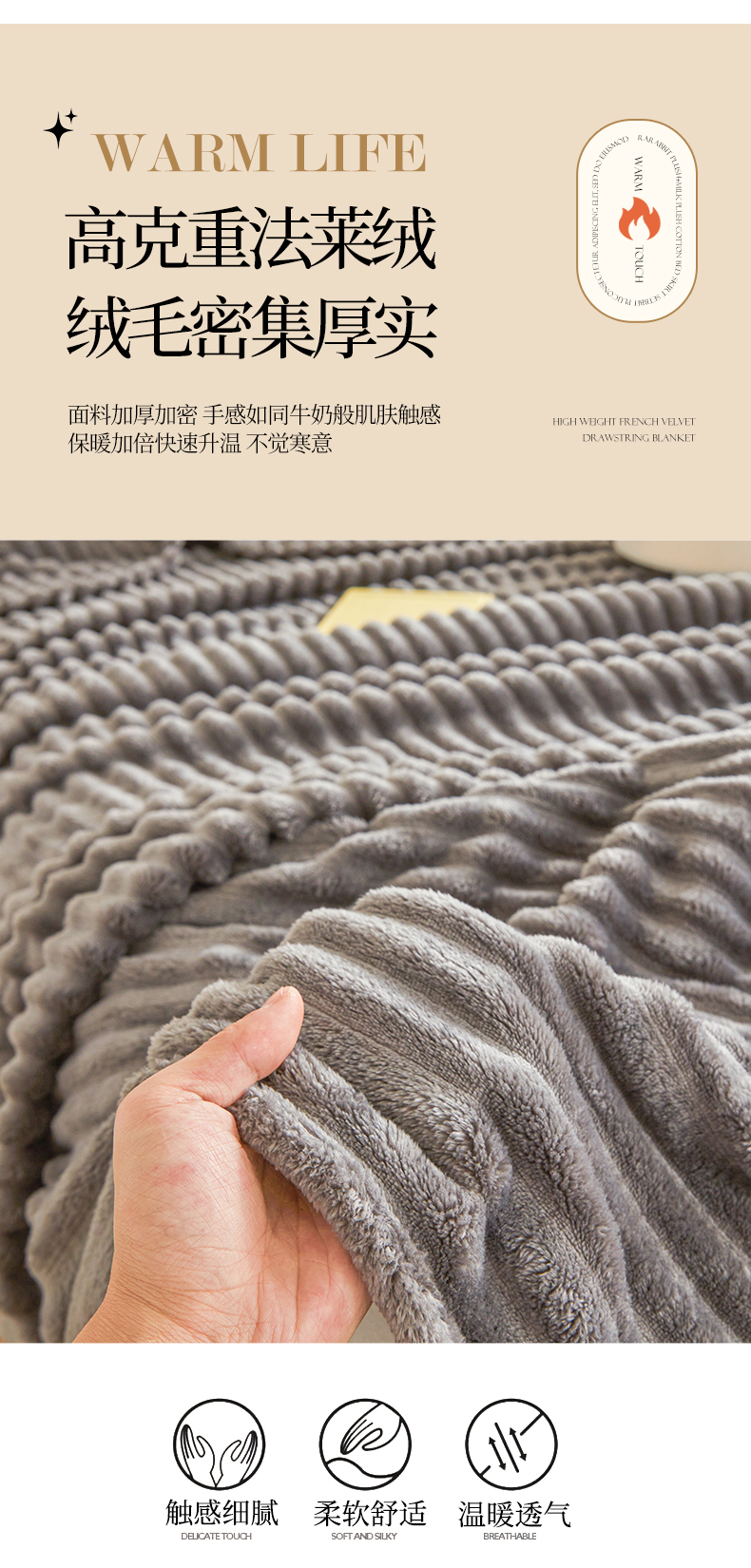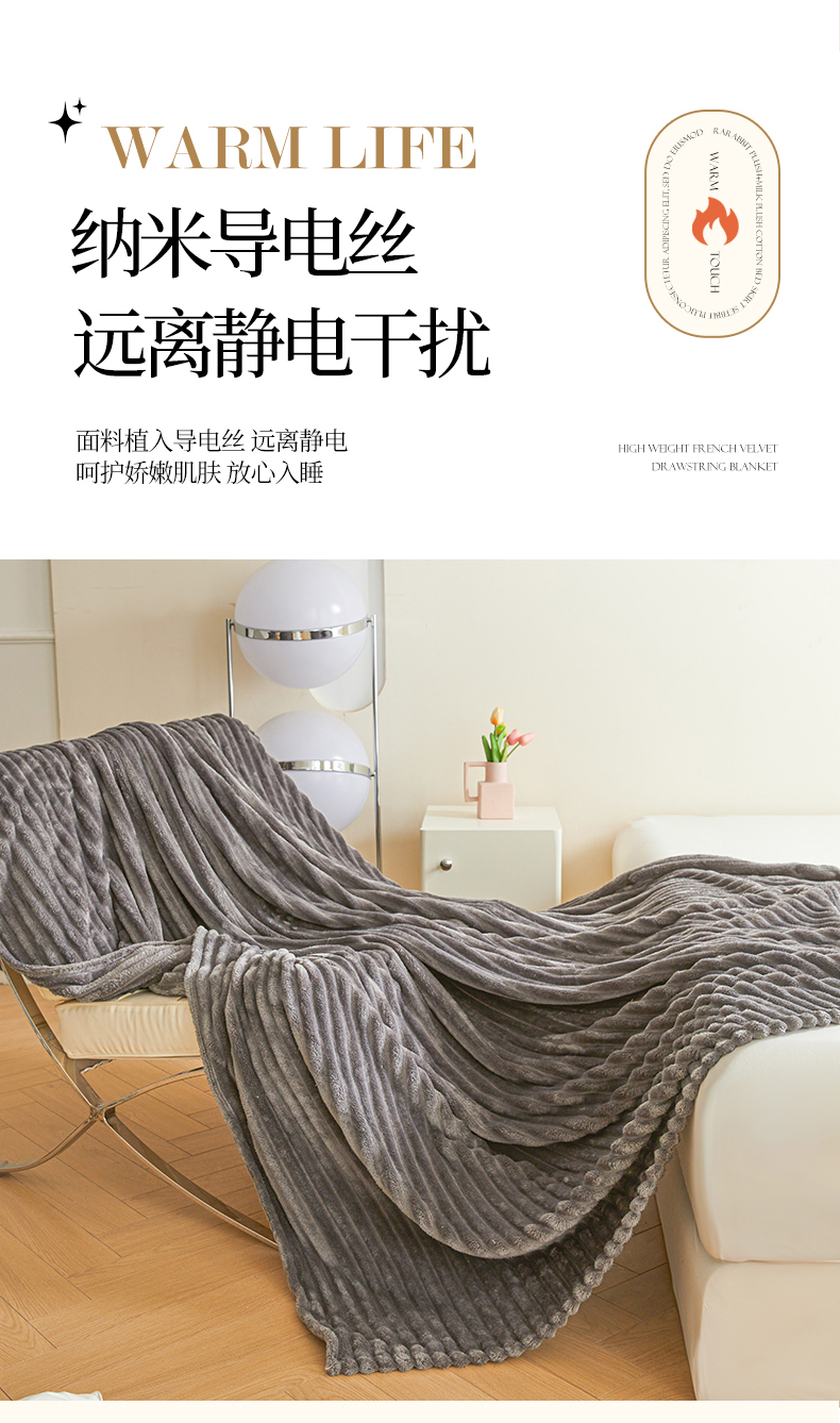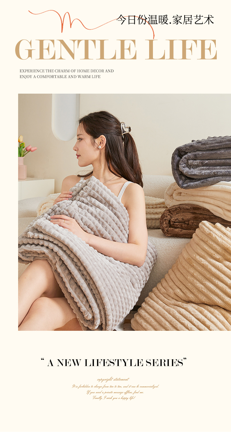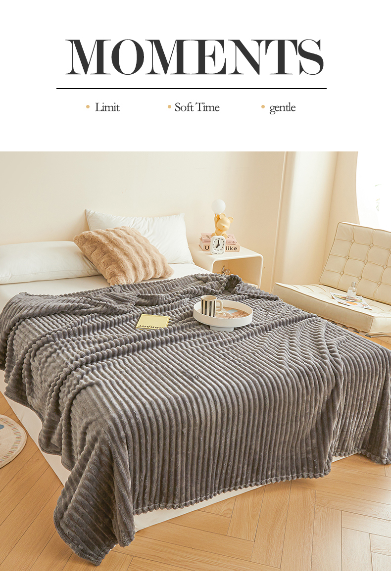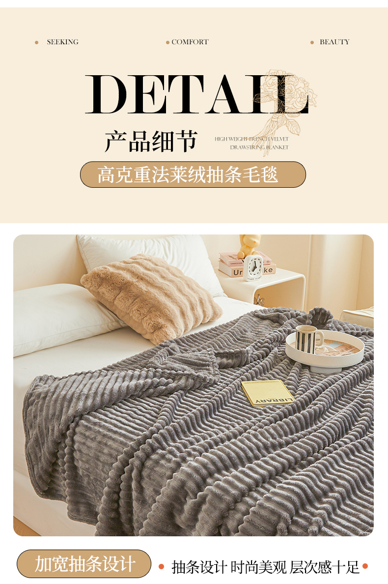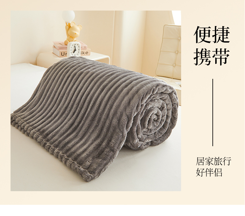 商品名称:予梦家纺 2024新款加厚纯色宽抽条剪花仿兔毛绒牛奶绒法兰绒盖毯(可供跨境) 深灰条