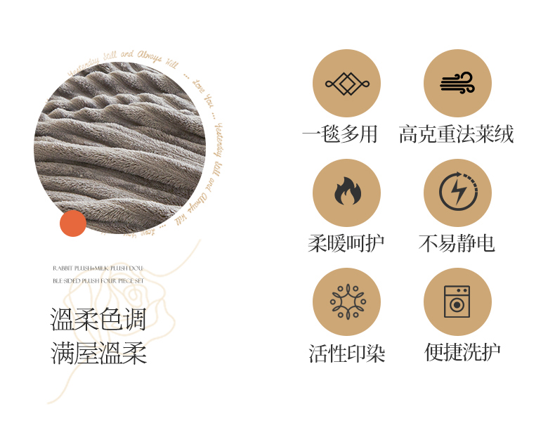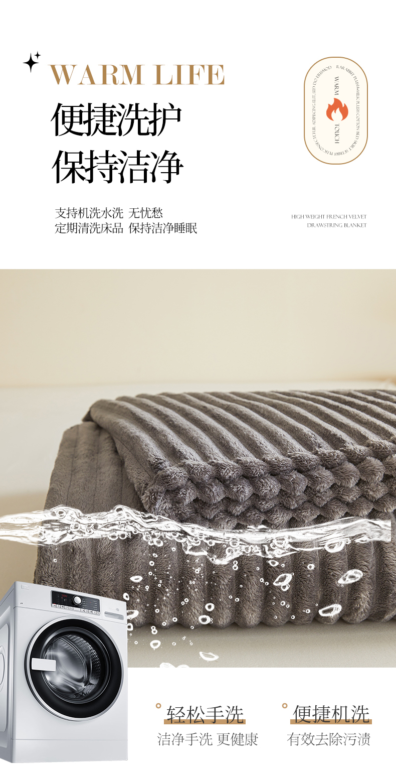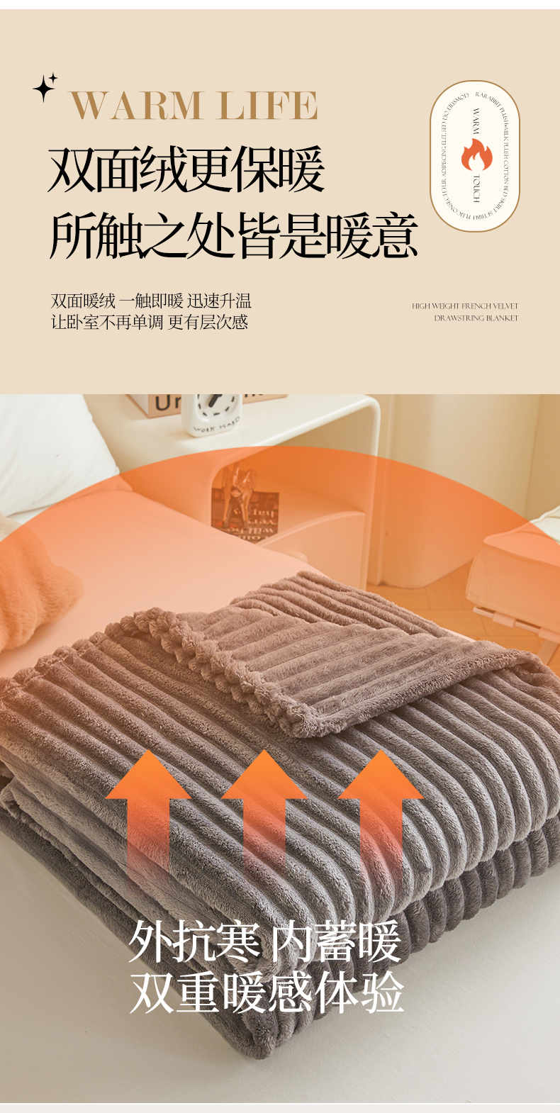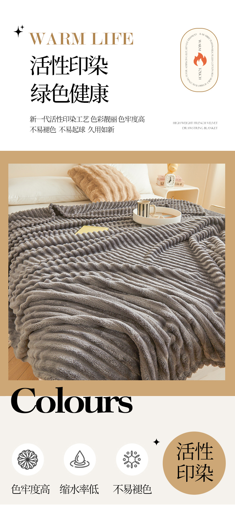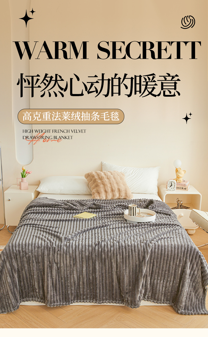 商品名称:予梦家纺 2024新款加厚纯色宽抽条剪花仿兔毛绒牛奶绒法兰绒盖毯(可供跨境) 深灰条