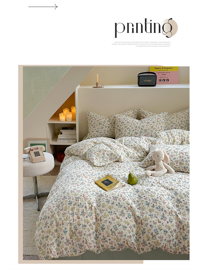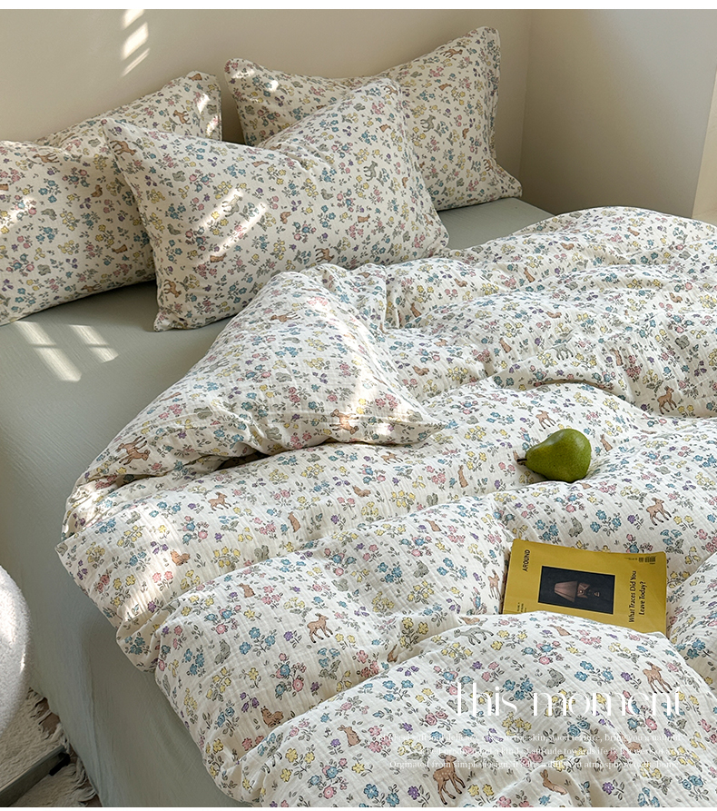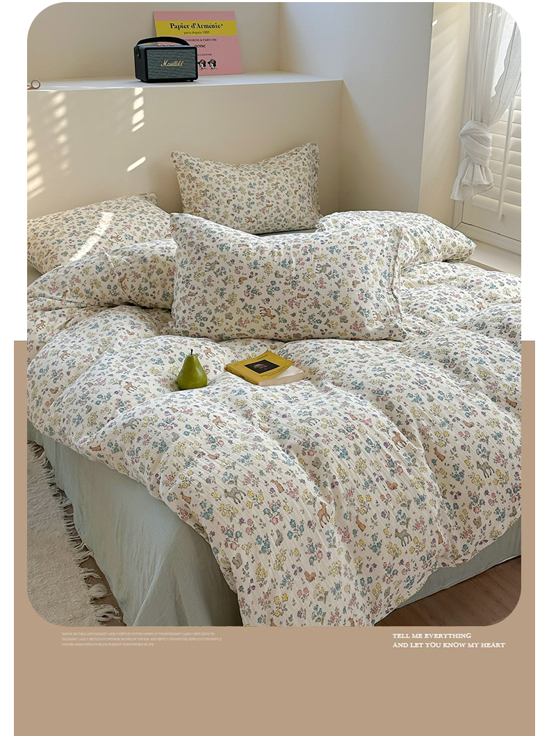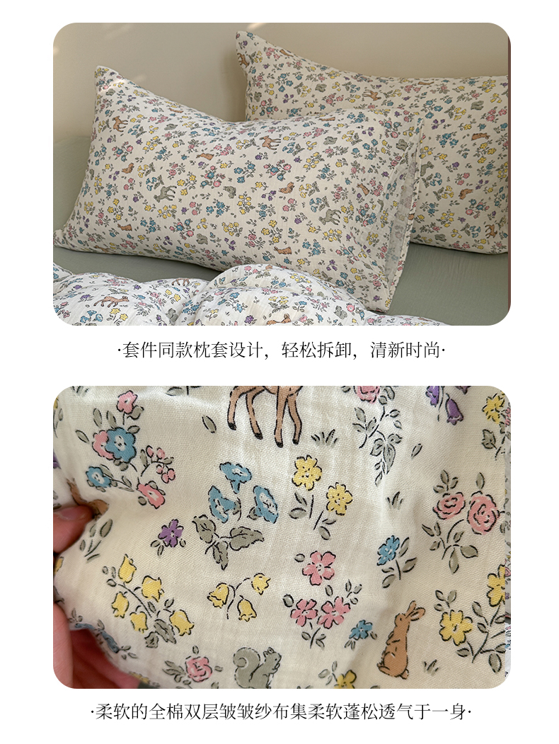 萝莉家纺 2025新款全棉双层皱皱纱四件套(第三批) 花园鹿