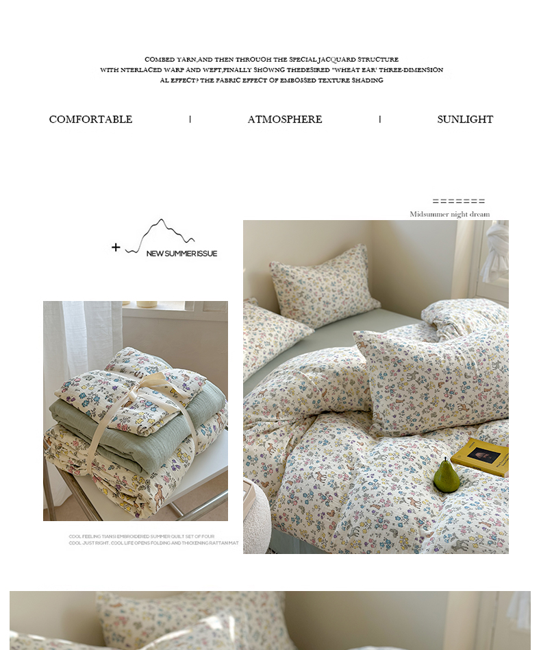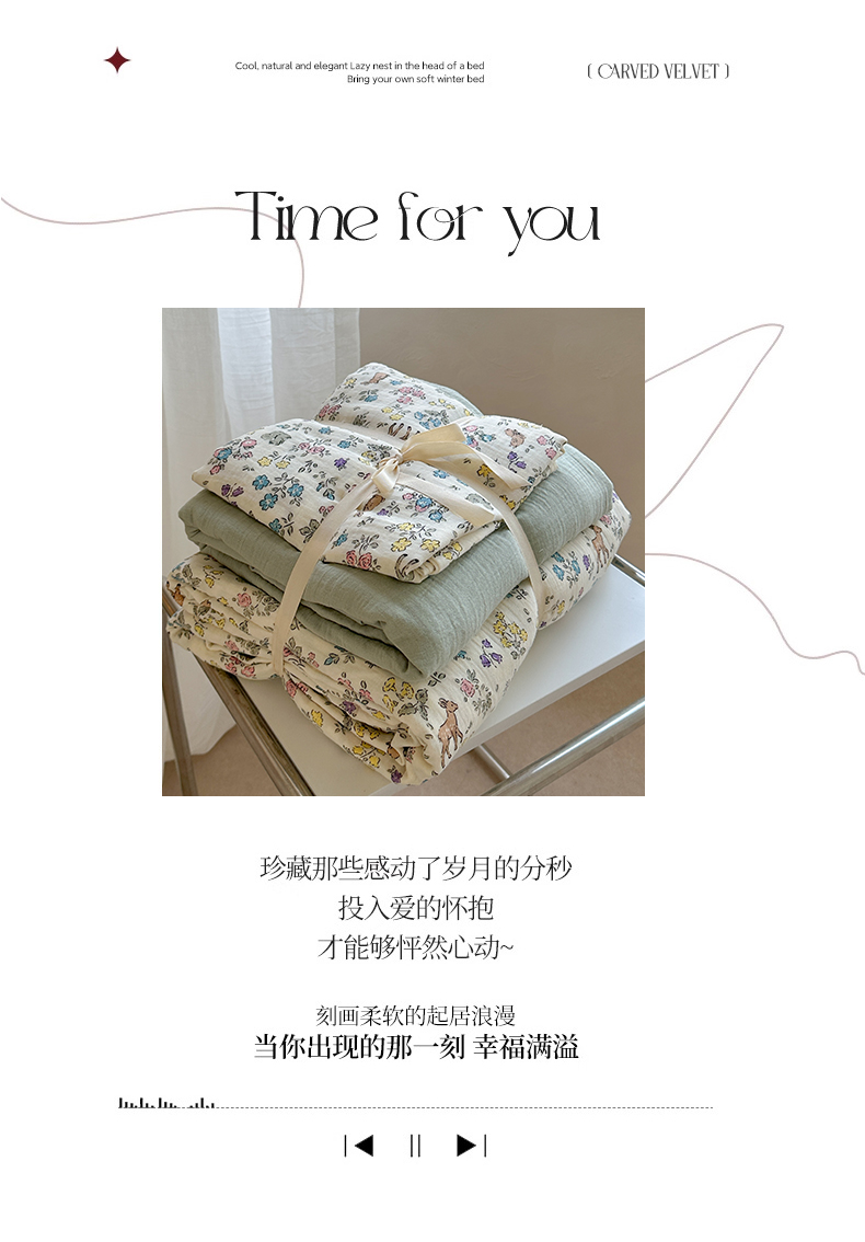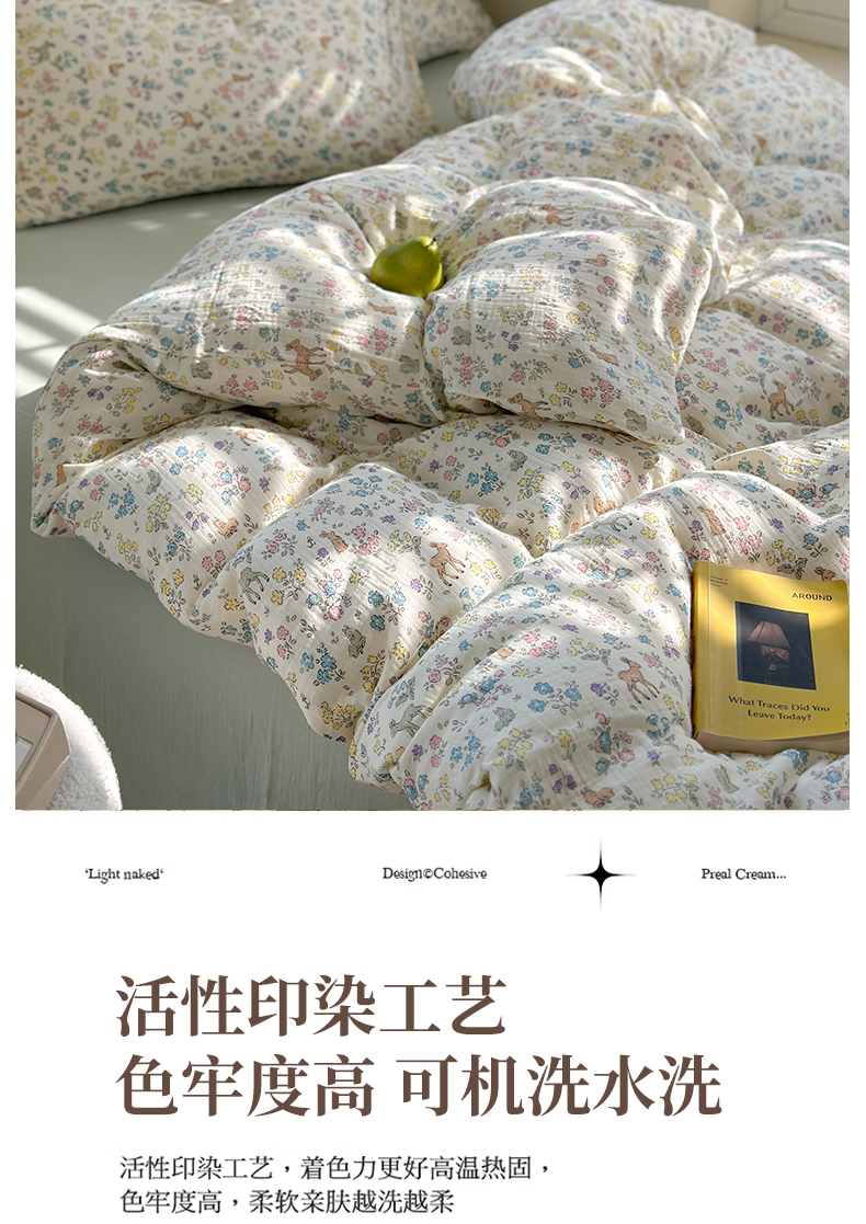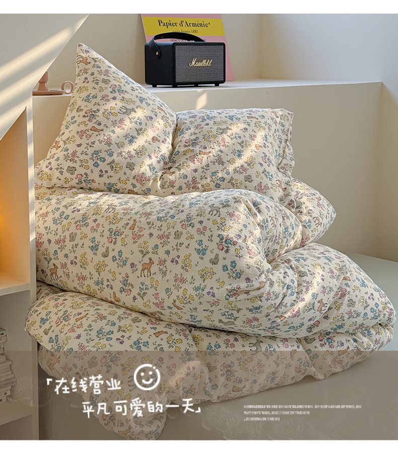 萝莉家纺 2025新款全棉双层皱皱纱四件套(第三批) 花园鹿