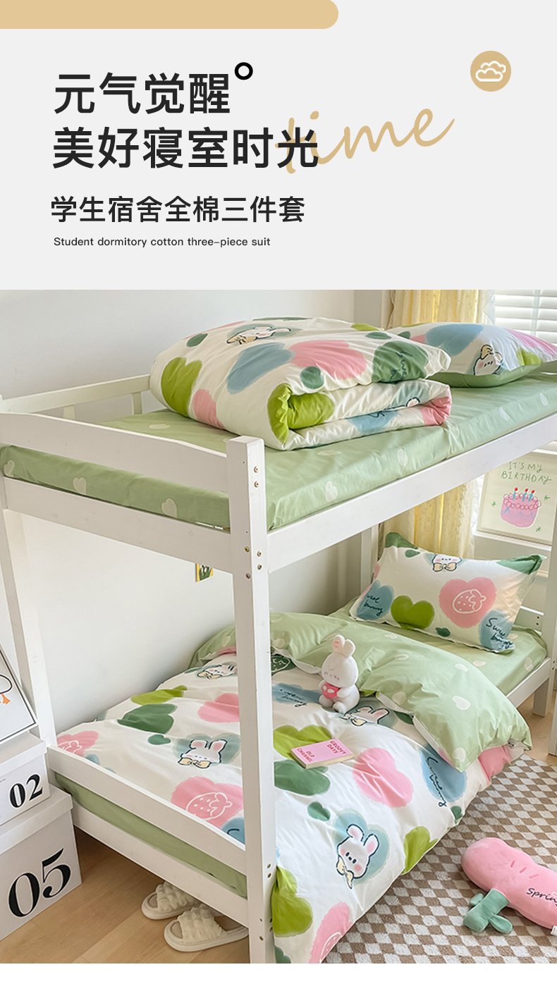 当前位置: 91家纺网 > 商品网购 > 床品套件 > 三件套 > 金鑫汇家纺 2024新款全棉宿舍印花三件套第一批 心心念念