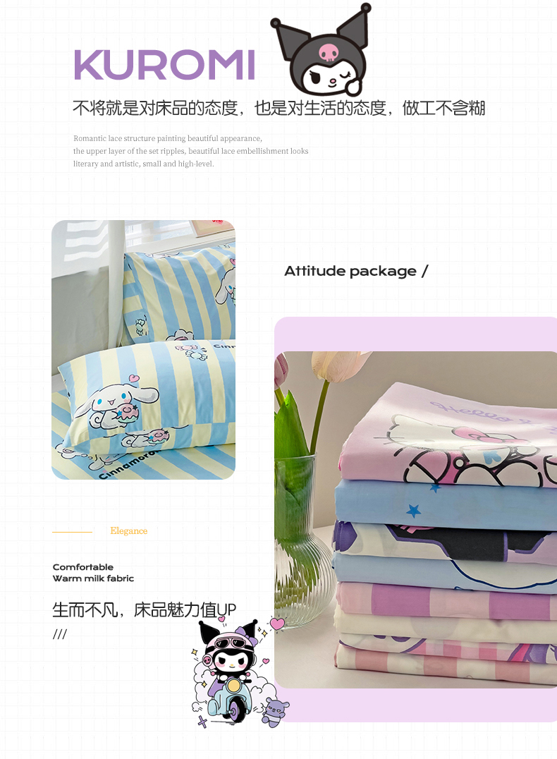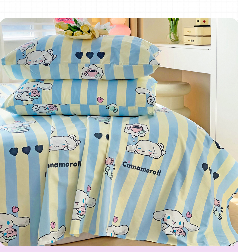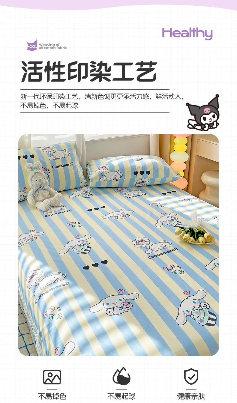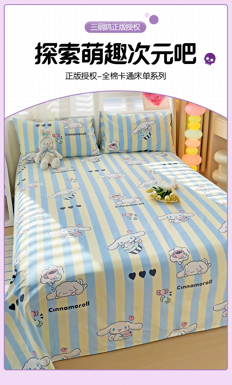 • 91家纺网 家纺一手货源 找家纺 名兮家居 2024新款三丽鸥全棉床单【含防伪标】 贪吃玉桂狗