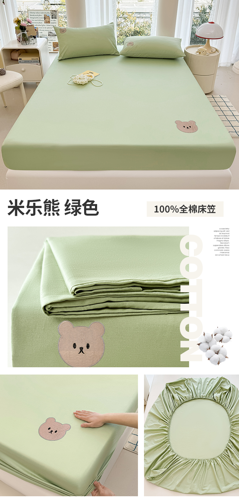 居眠 2024新款A类全棉米乐熊单层床笠 米乐熊 绿色