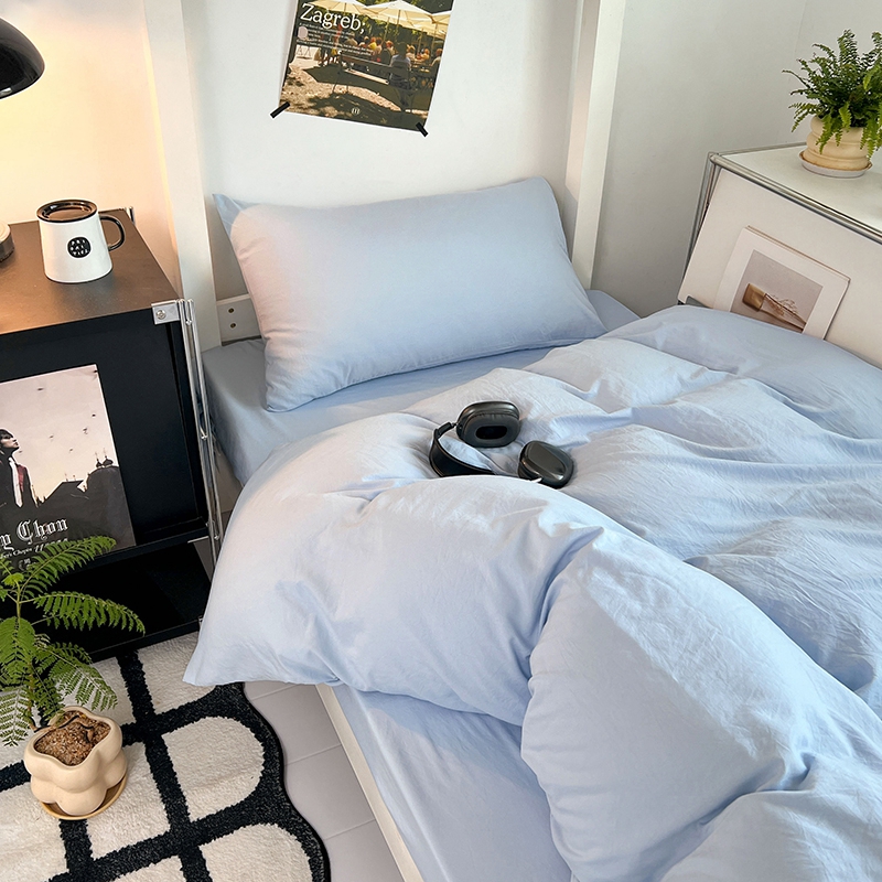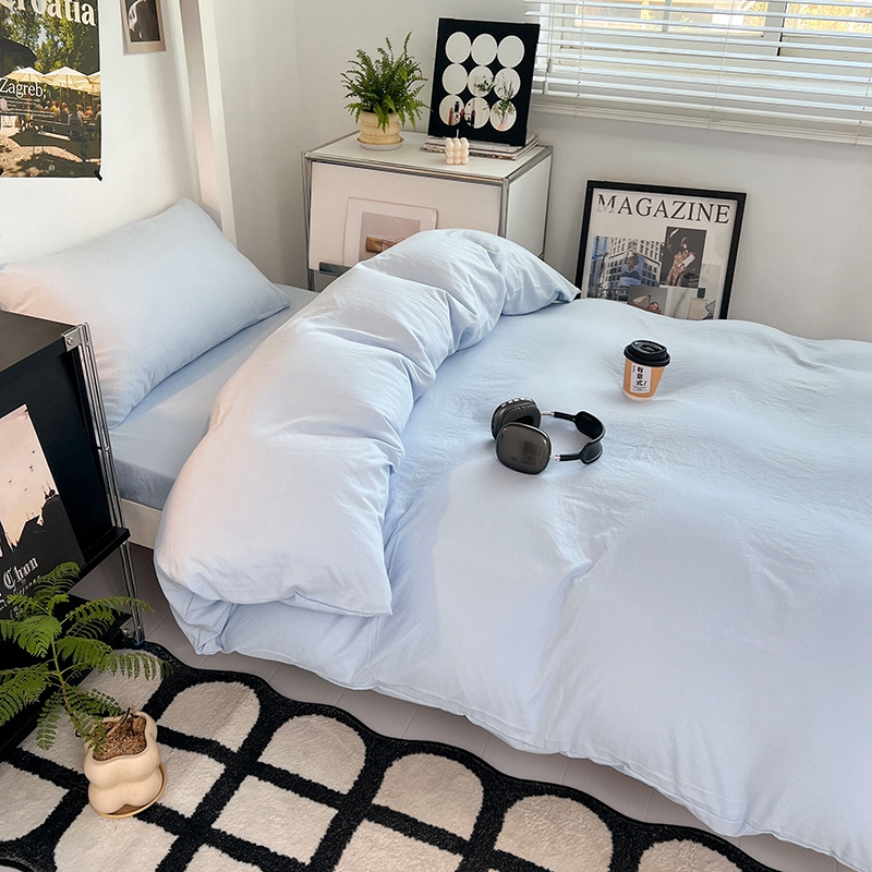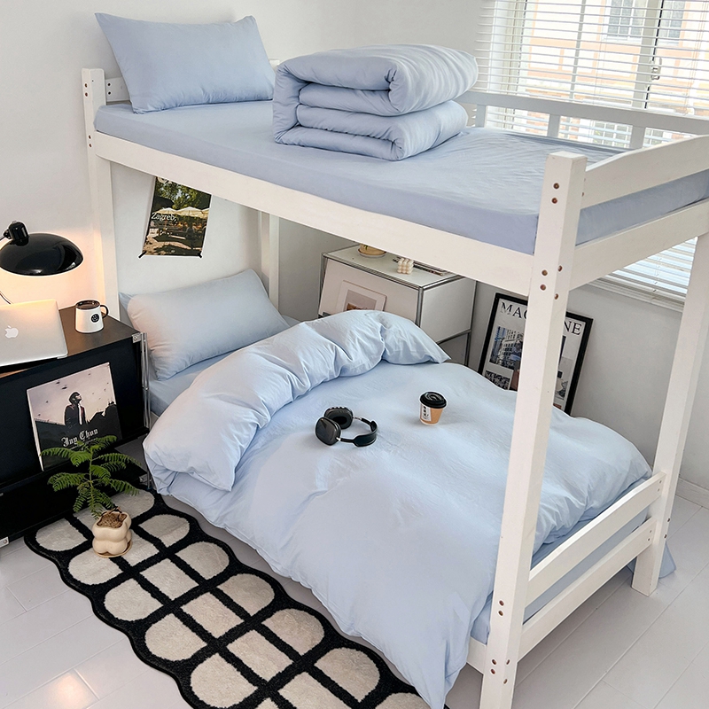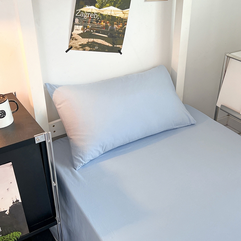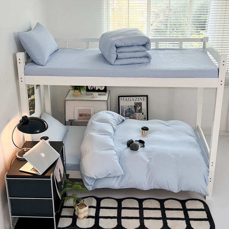 悦织湾家纺 2025新款水洗棉磨毛学生宿舍三件套 马卡龙蓝