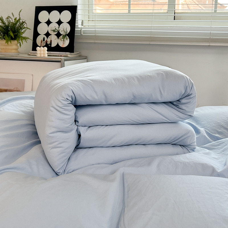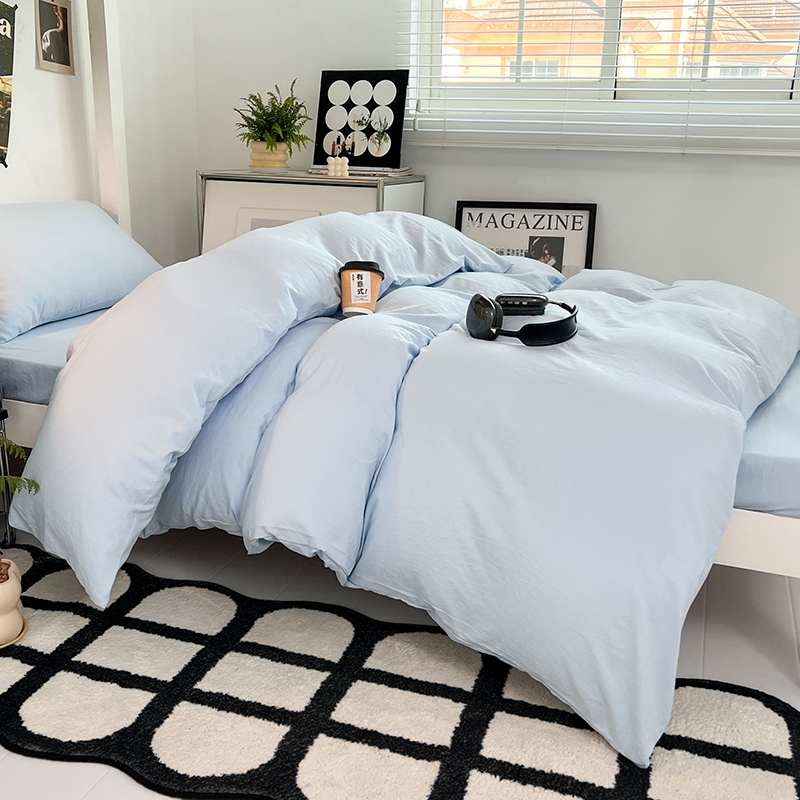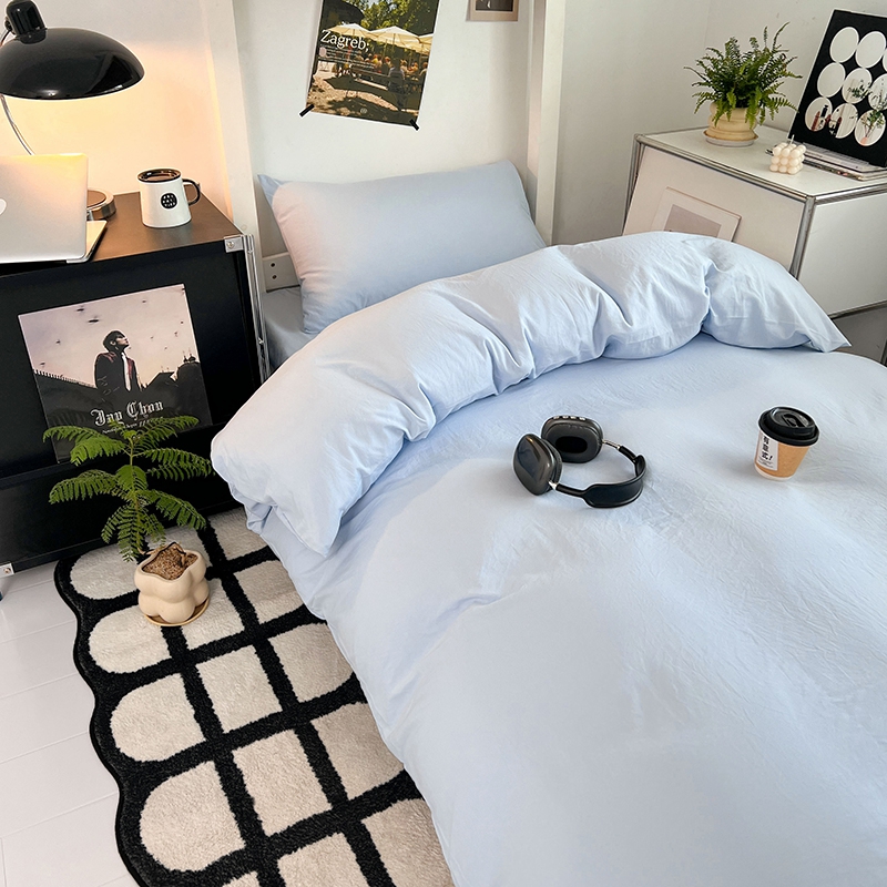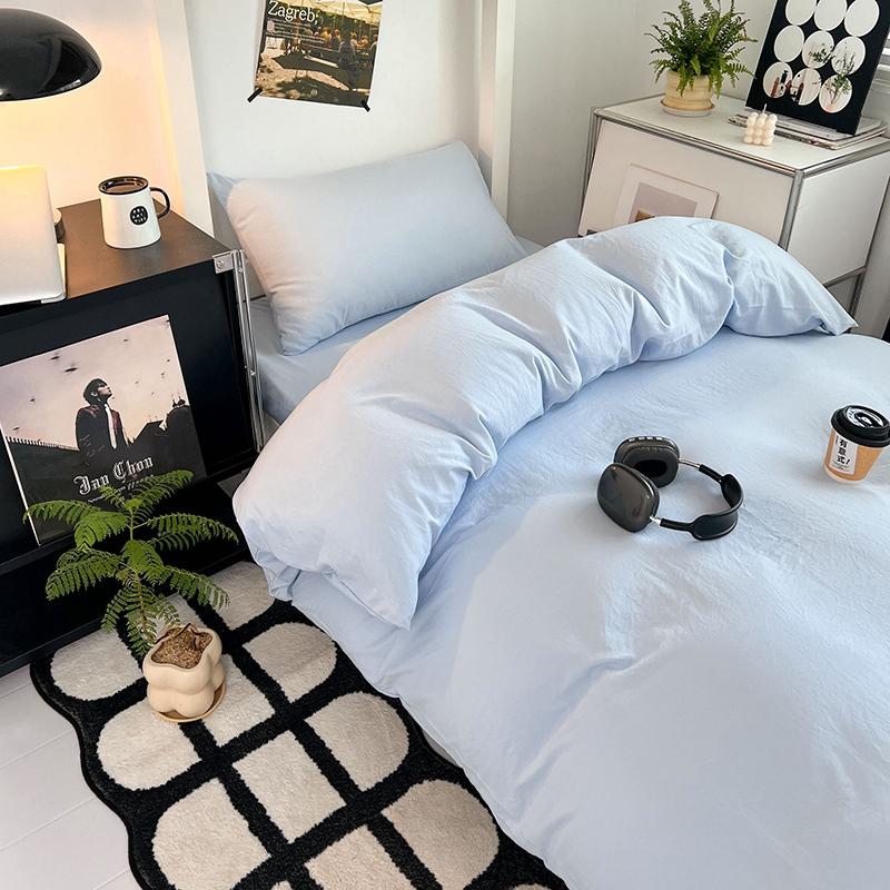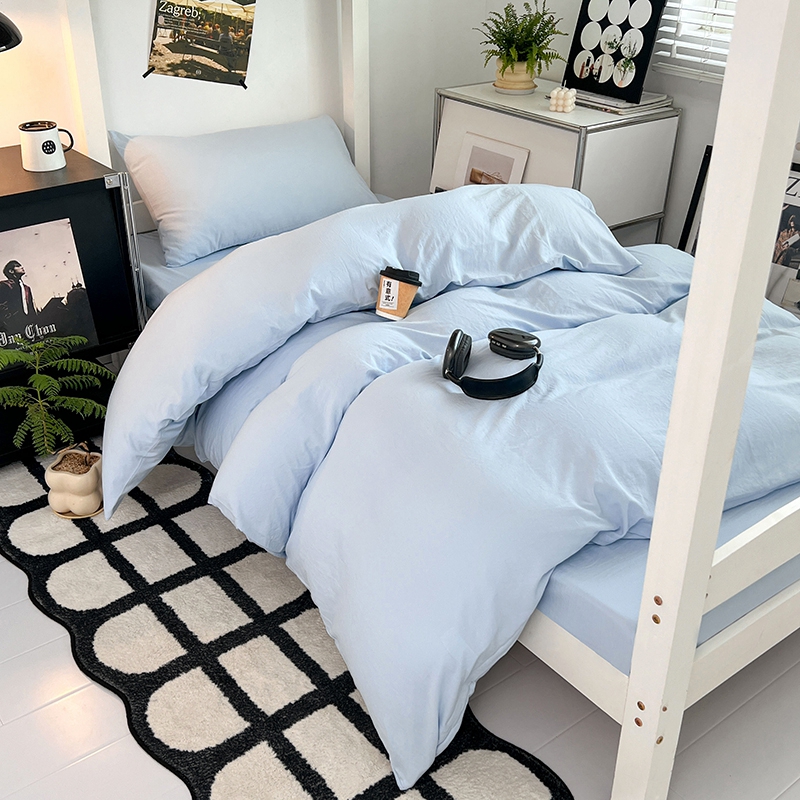 悦织湾家纺 2025新款水洗棉磨毛学生宿舍三件套 马卡龙蓝