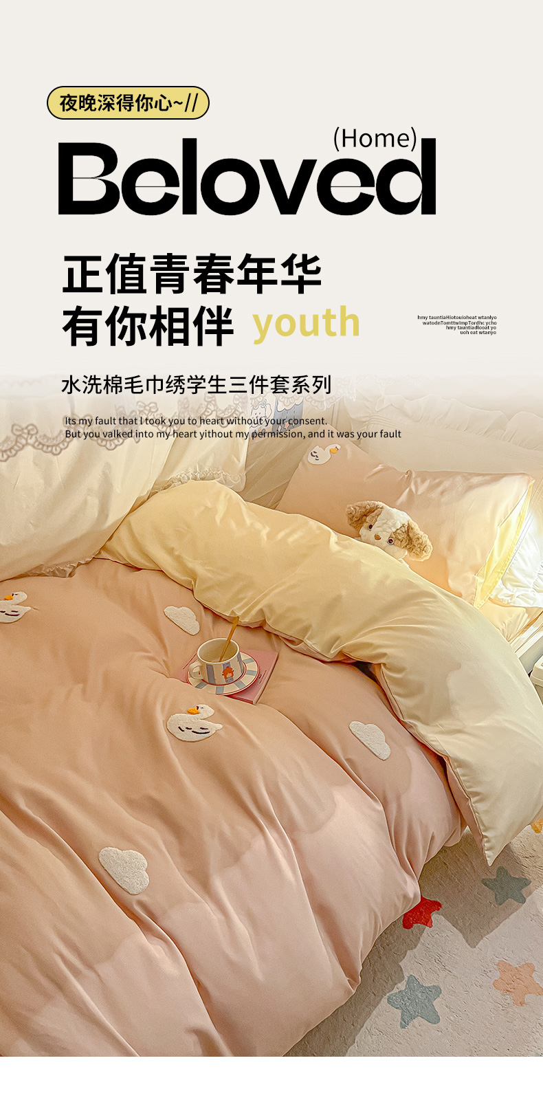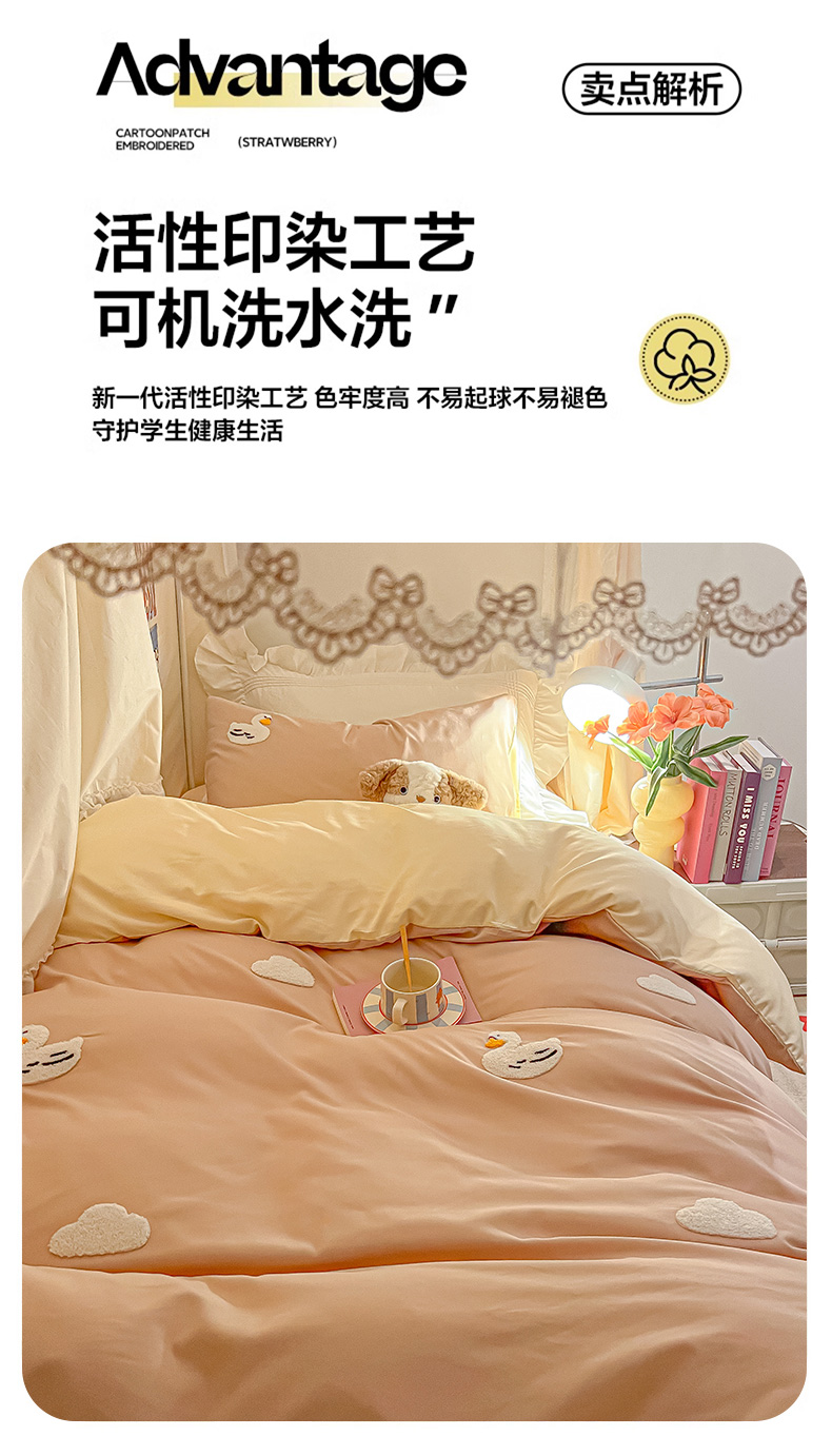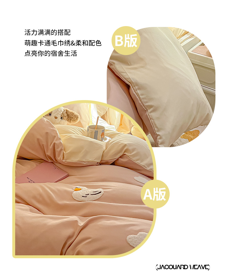 (总)2024新款水洗棉卡通小清新毛巾绣四件套宿舍三件套学生款