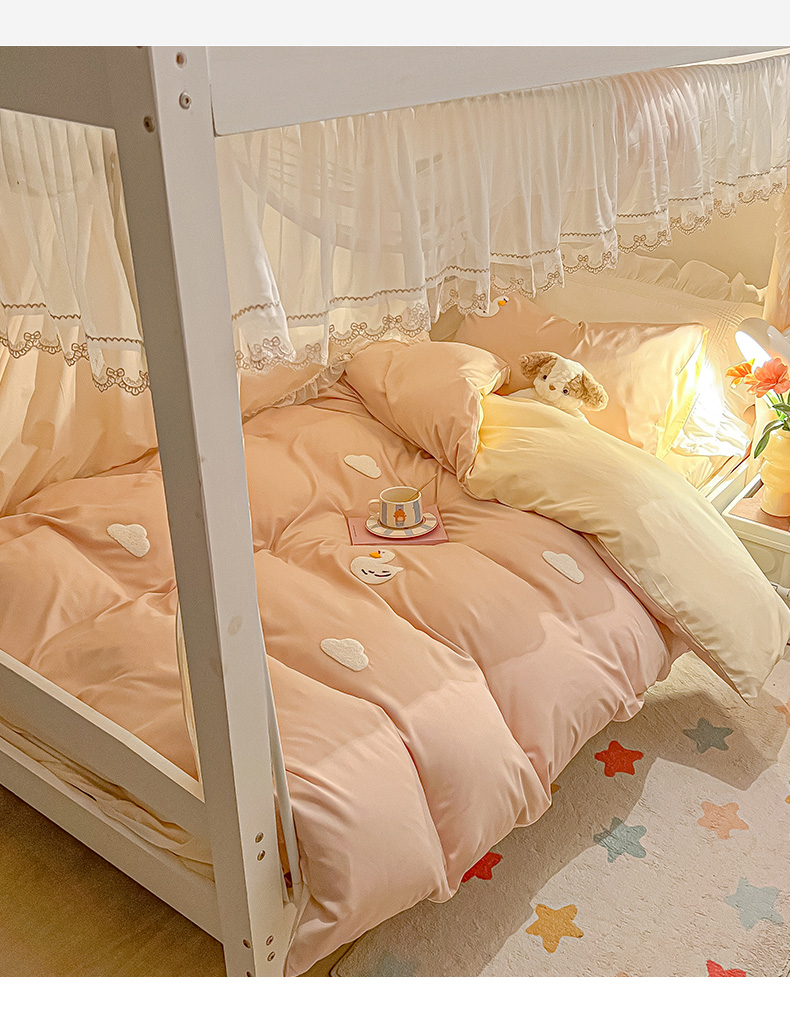 (总)眠帛 2021新款小清新花边款牛奶绒四件套,彩虹糖果,彩色郁金香,彩云,黑白笑脸,花海,花花笑脸,可爱多,迷你樱桃,清野,小柑橘,心朵,樱桃兔兔