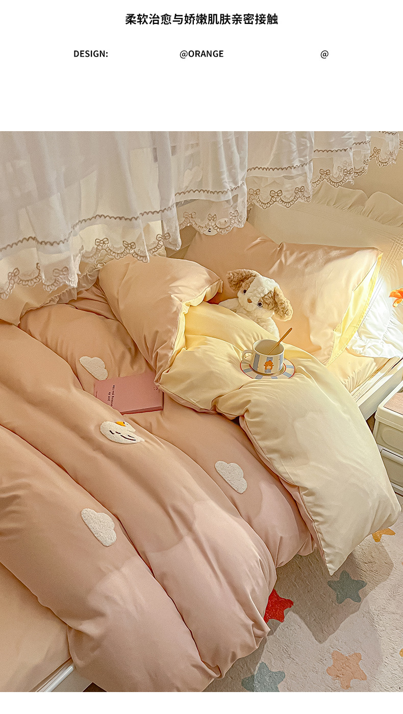 (总)眠帛 2022新款水洗棉贝壳绣边四件套,豆沙-灰,繁星兰-灰,奶黄-焦糖,奶黄-天空蓝,奶油粉-奶黄,浅灰-奶黄,天空蓝-奶黄