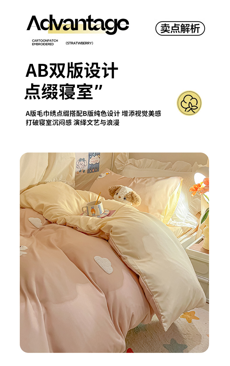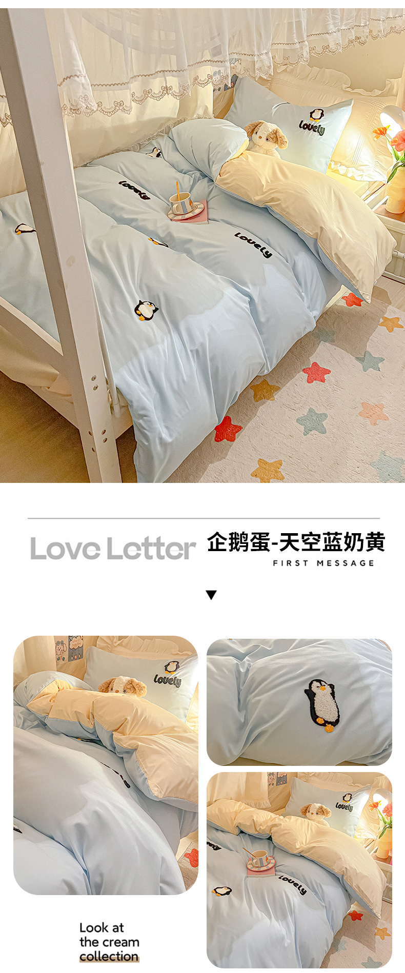 商品名称:(总)2024新款水洗棉卡通小清新毛巾绣四件套宿舍三件套学生款