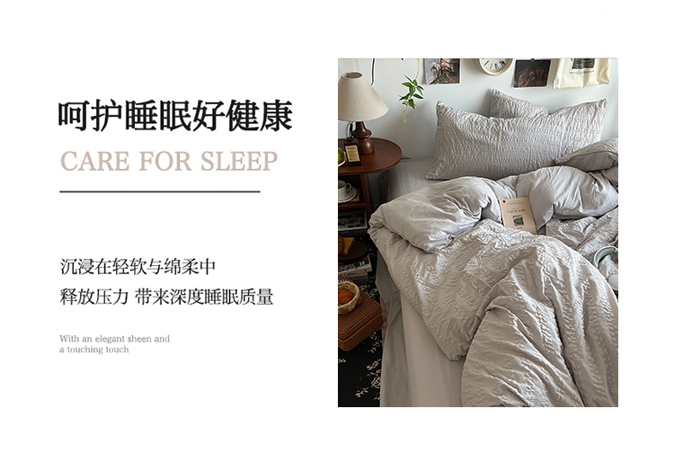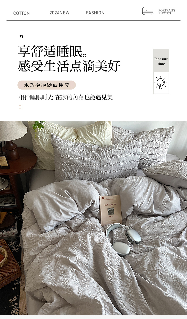 当前位置: 91家纺网 > 商品网购 > 床品套件 > 四件套 > 其它四件套 > 原素 2024新品ins风简约款泡泡纱四件套 小泡泡-梦小灰