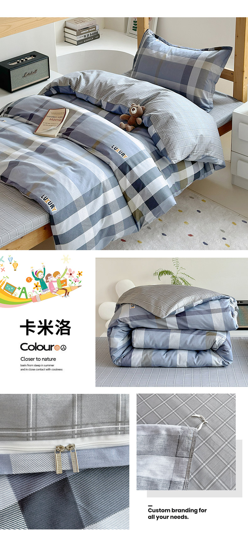 (总)怡家居 2025新款全棉双层纱毛巾绣夏被四件套,夏被-点点小淘气,夏被-耳机猫,夏被-欢乐狗,夏被-灰格小淘气,夏被-可爱曲奇,夏被-萌趣猫,夏被-晚安熊,夏被-小熊猫