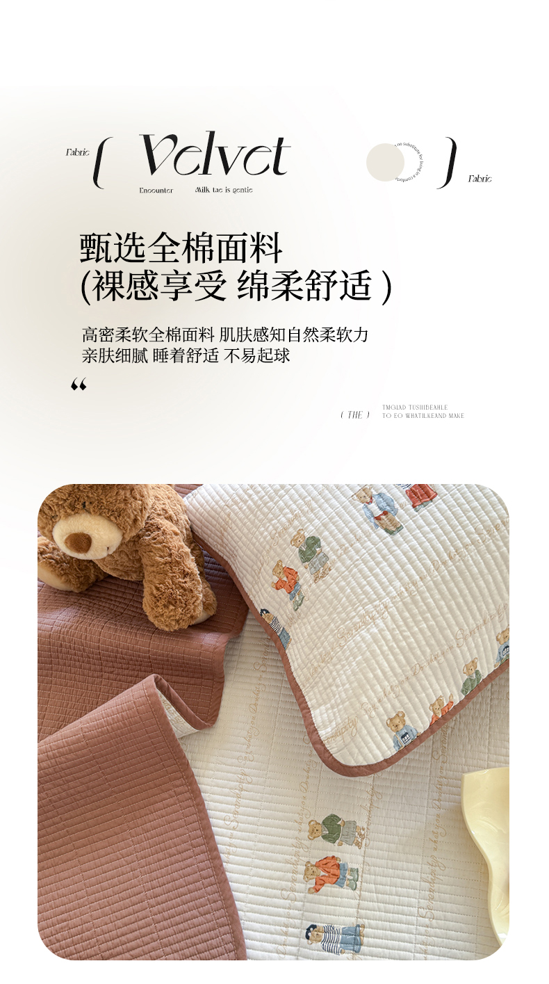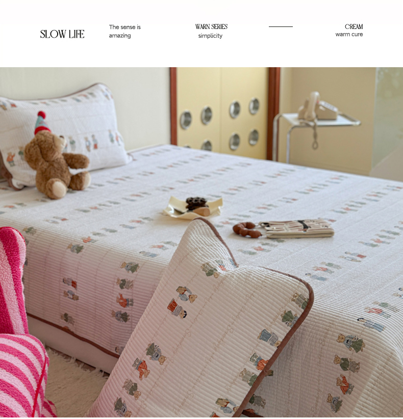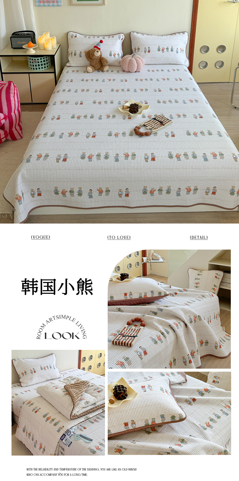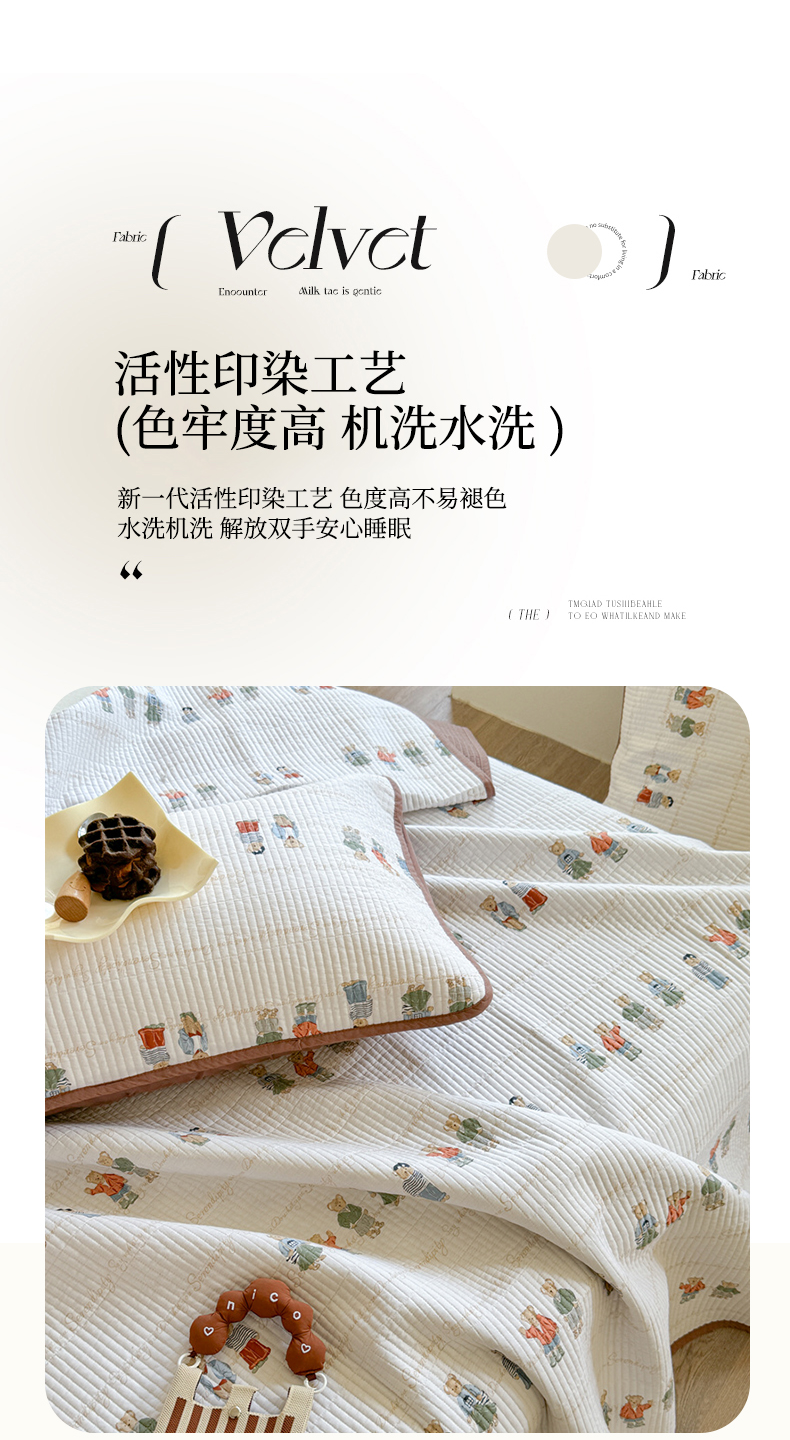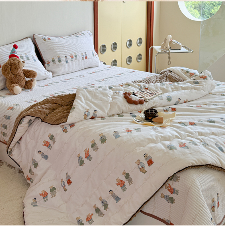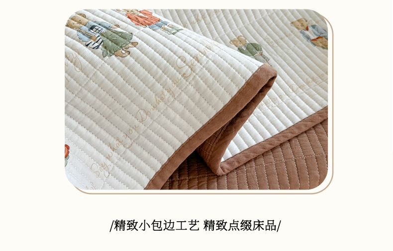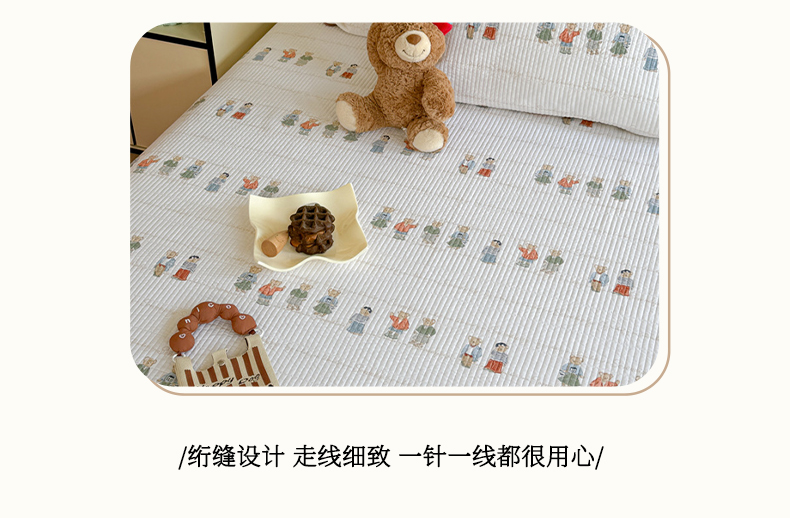 商品名称:琳可家居 2024新款印花款13070双面全棉砂洗床盖三件套 韩国小熊