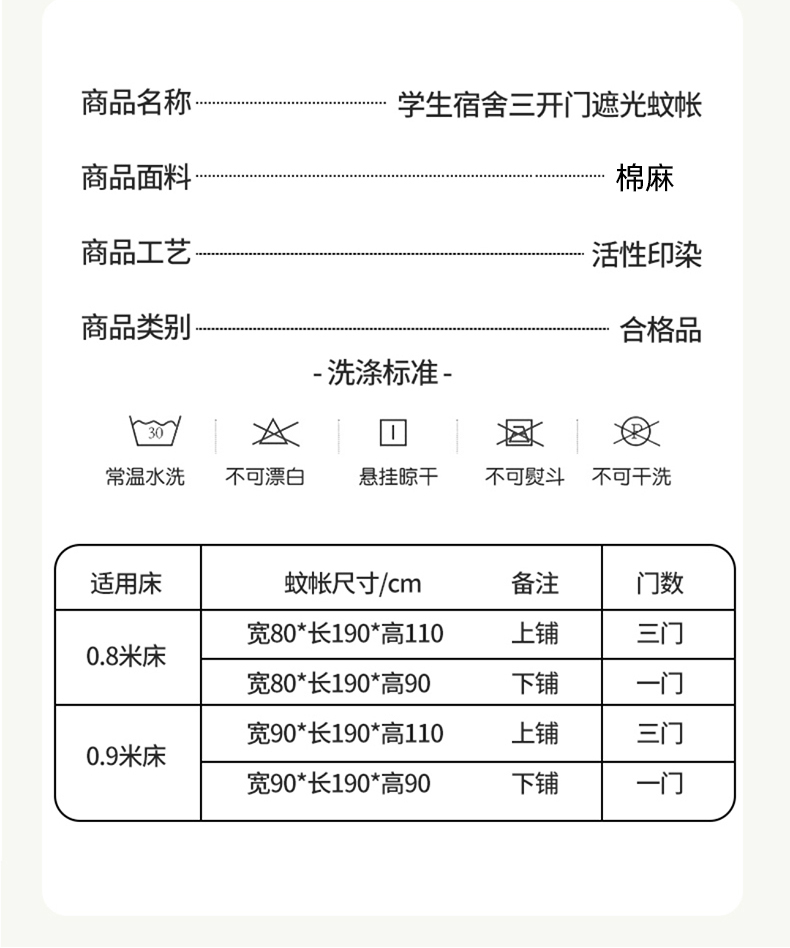 商品名称:(总)飞轮海蚊帐 新款棉麻学生宿舍三开门遮光蚊帐-XZ-96 回底 全底 加高1.2