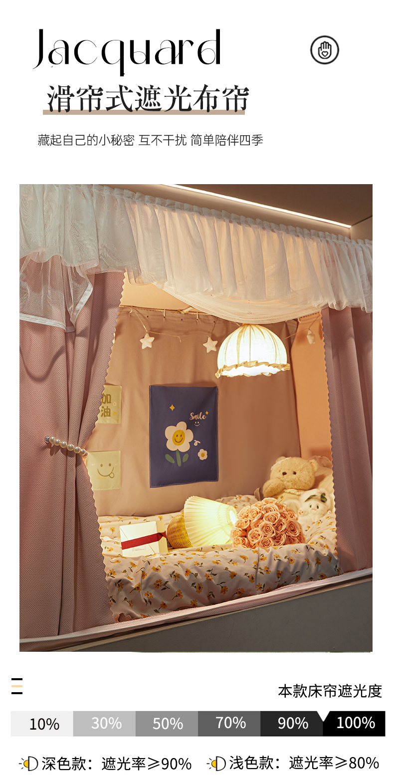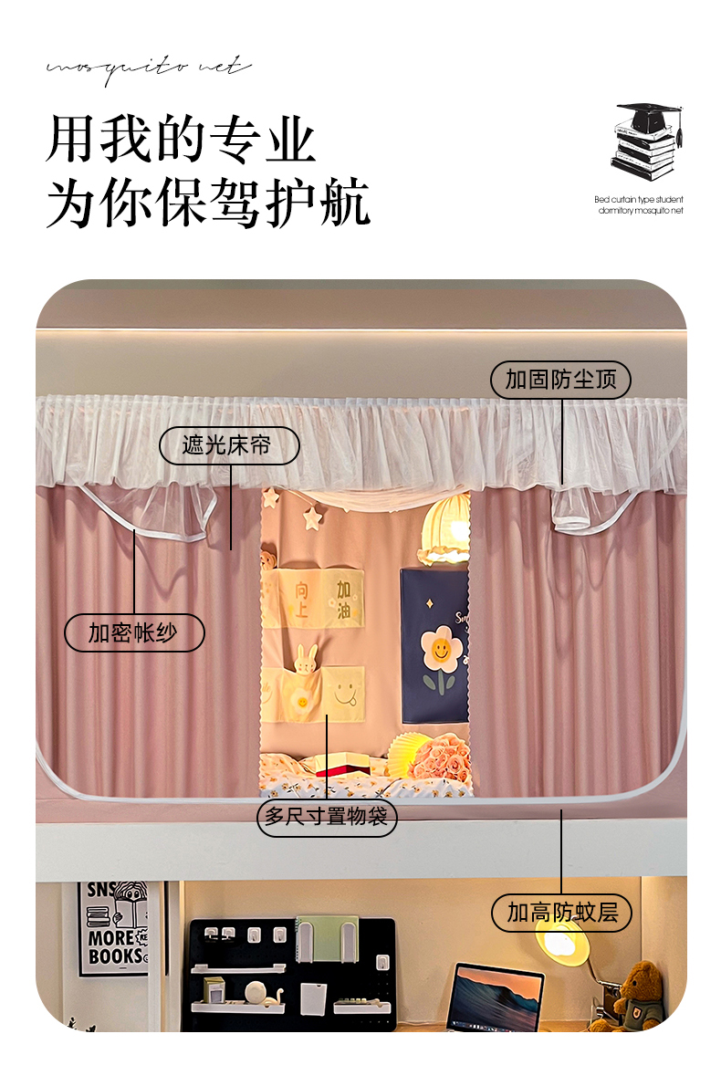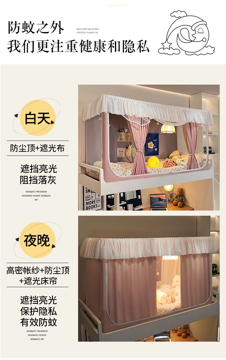 飞轮海蚊帐 2025新款强遮光防蚊学生蚊帐-XZ-99(靠墙帘选配)熊猫宝,熊猫宝