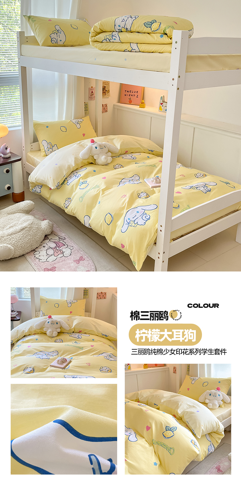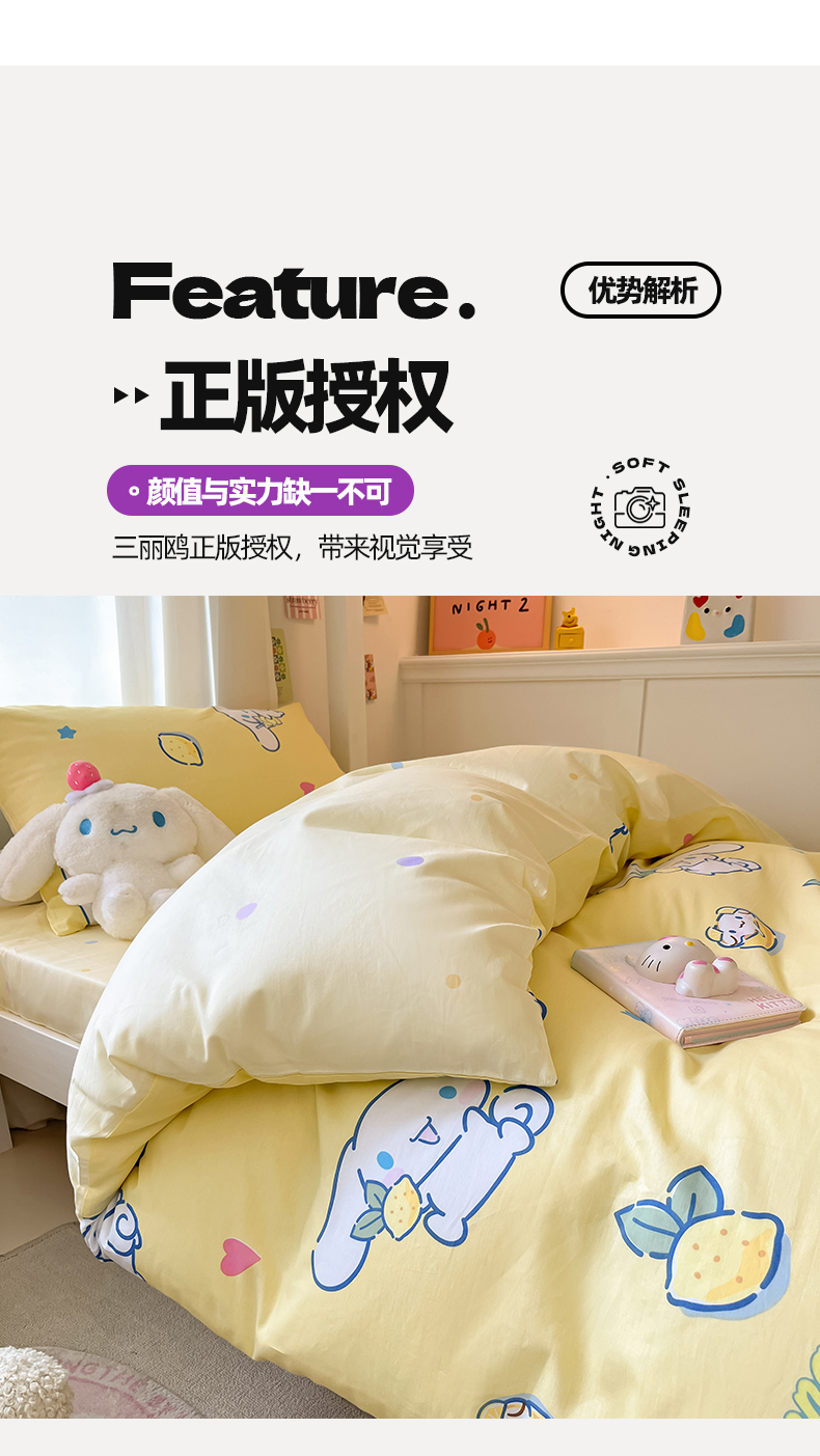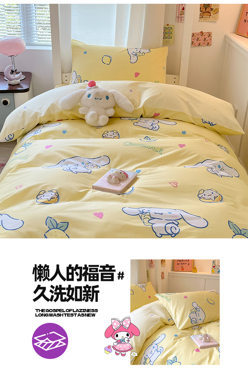 当前位置: 91家纺网 > 商品网购 > 床品套件 > 四件套 > 全棉普通四件套 > 2024新款三丽鸥授权全棉少女印花系列学生三件套四件套 棉三丽鸥-柠檬大耳狗