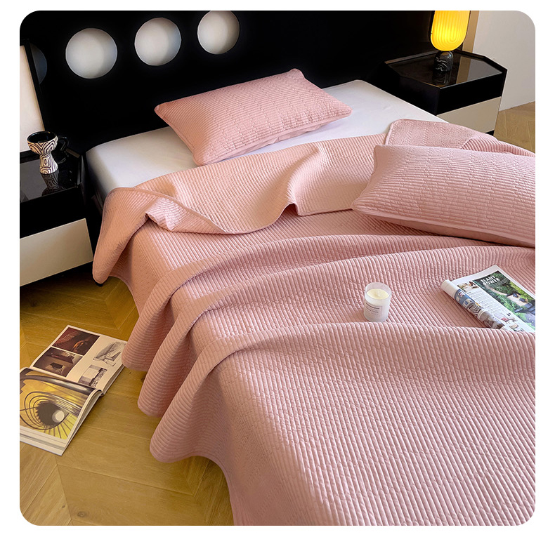 2025新款纯棉素色大床款夹棉床笠床盖--床盖 胭脂粉