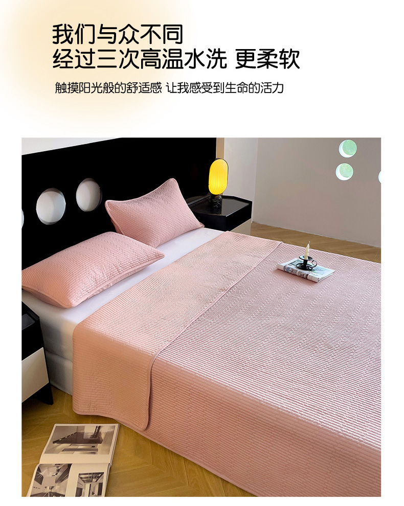 • 91家纺网 家纺一手货源 找家纺 2025新款纯棉素色大床款夹棉床笠床盖--床盖 胭脂粉