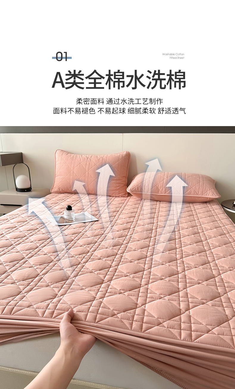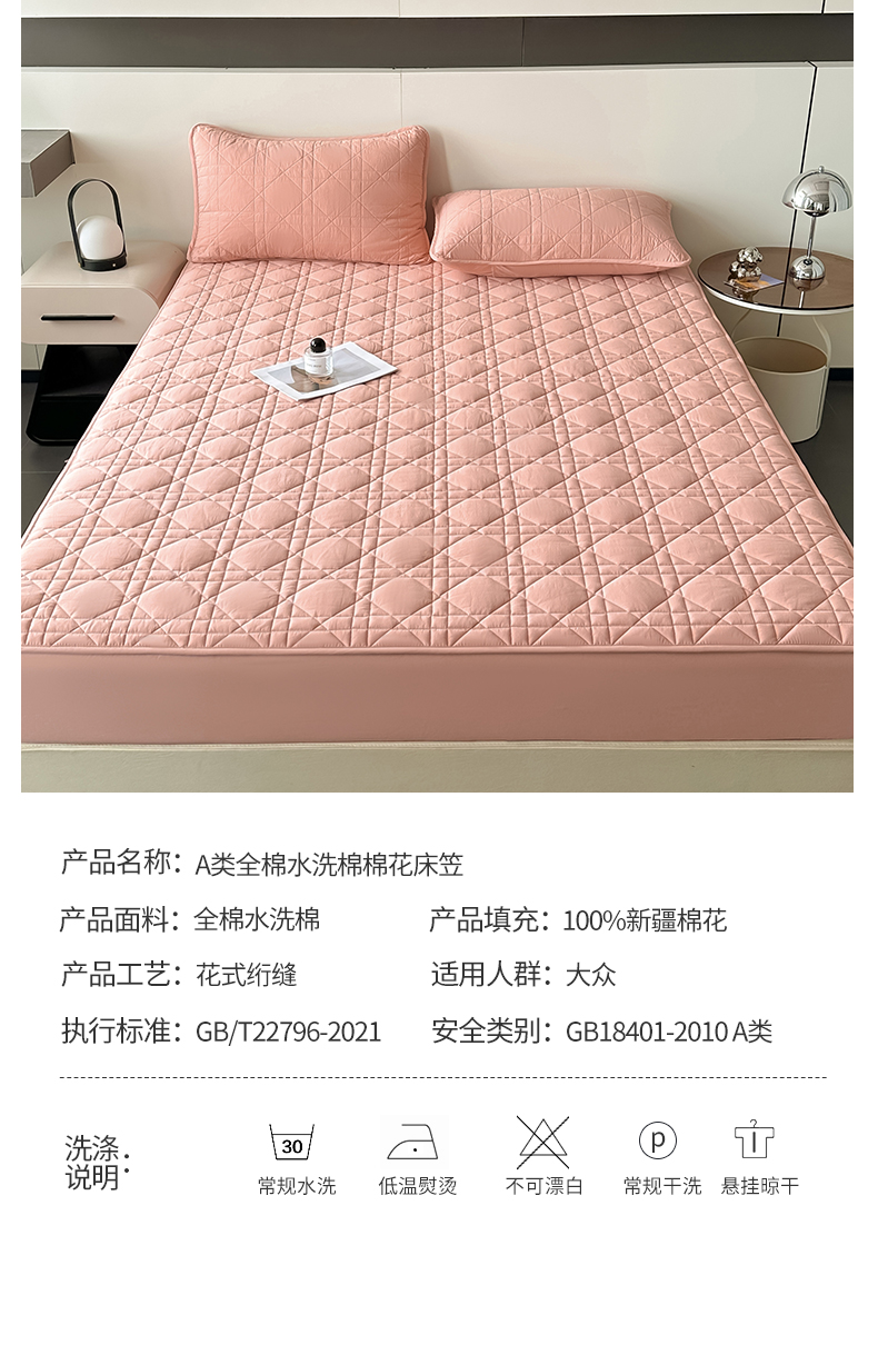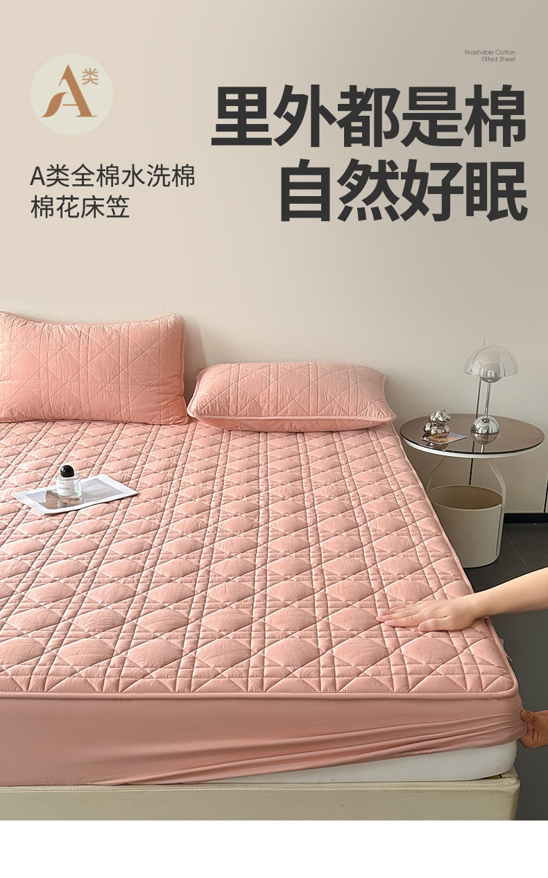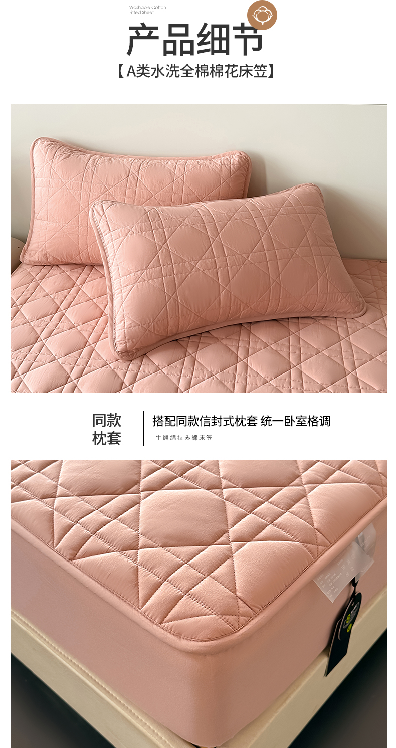 3C 2024新款A类全棉水洗棉棉花床笠 柔密粉-