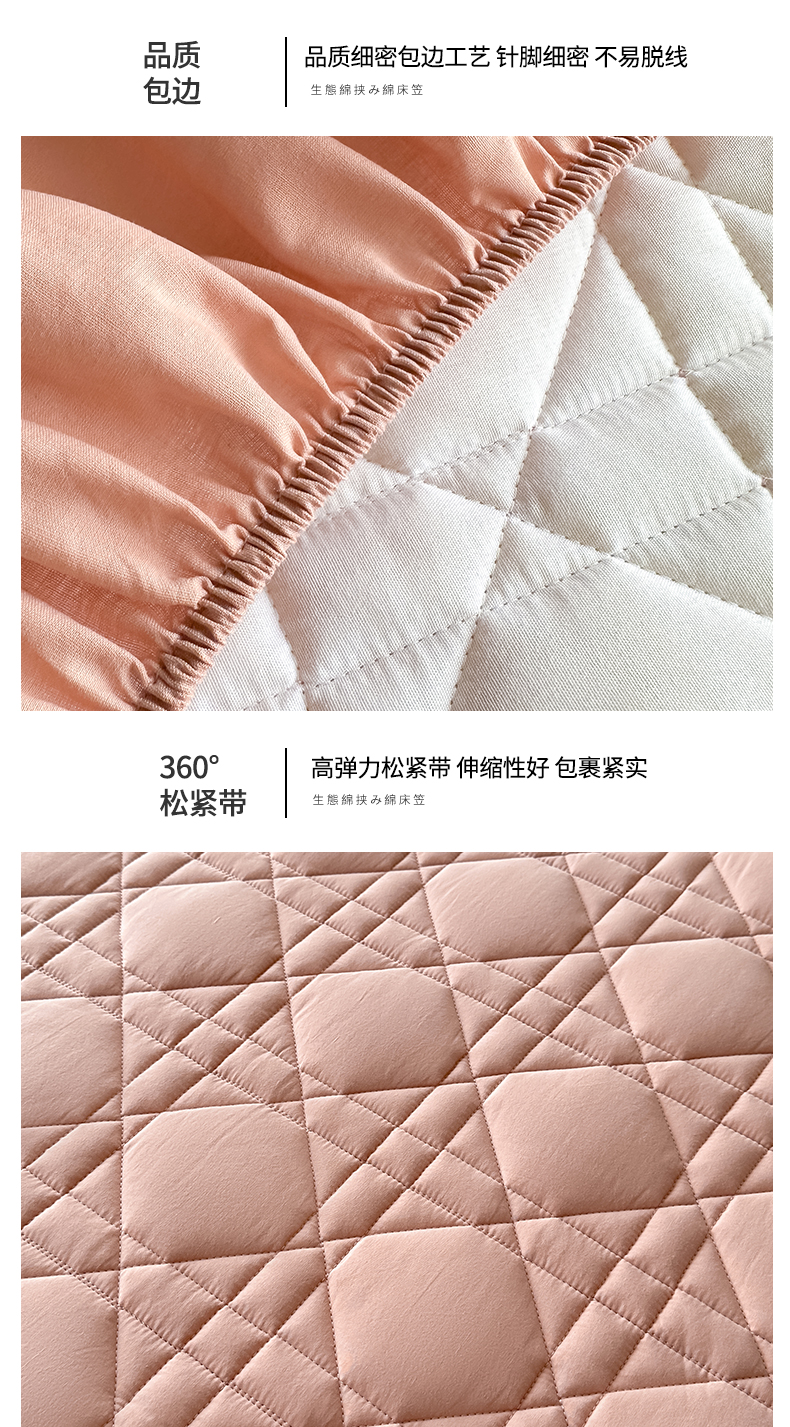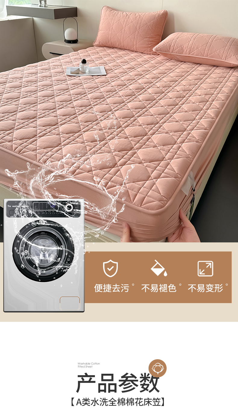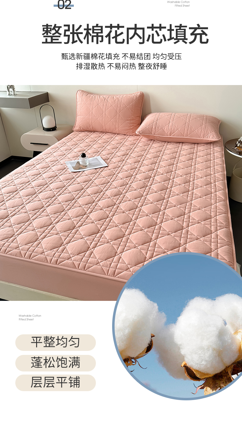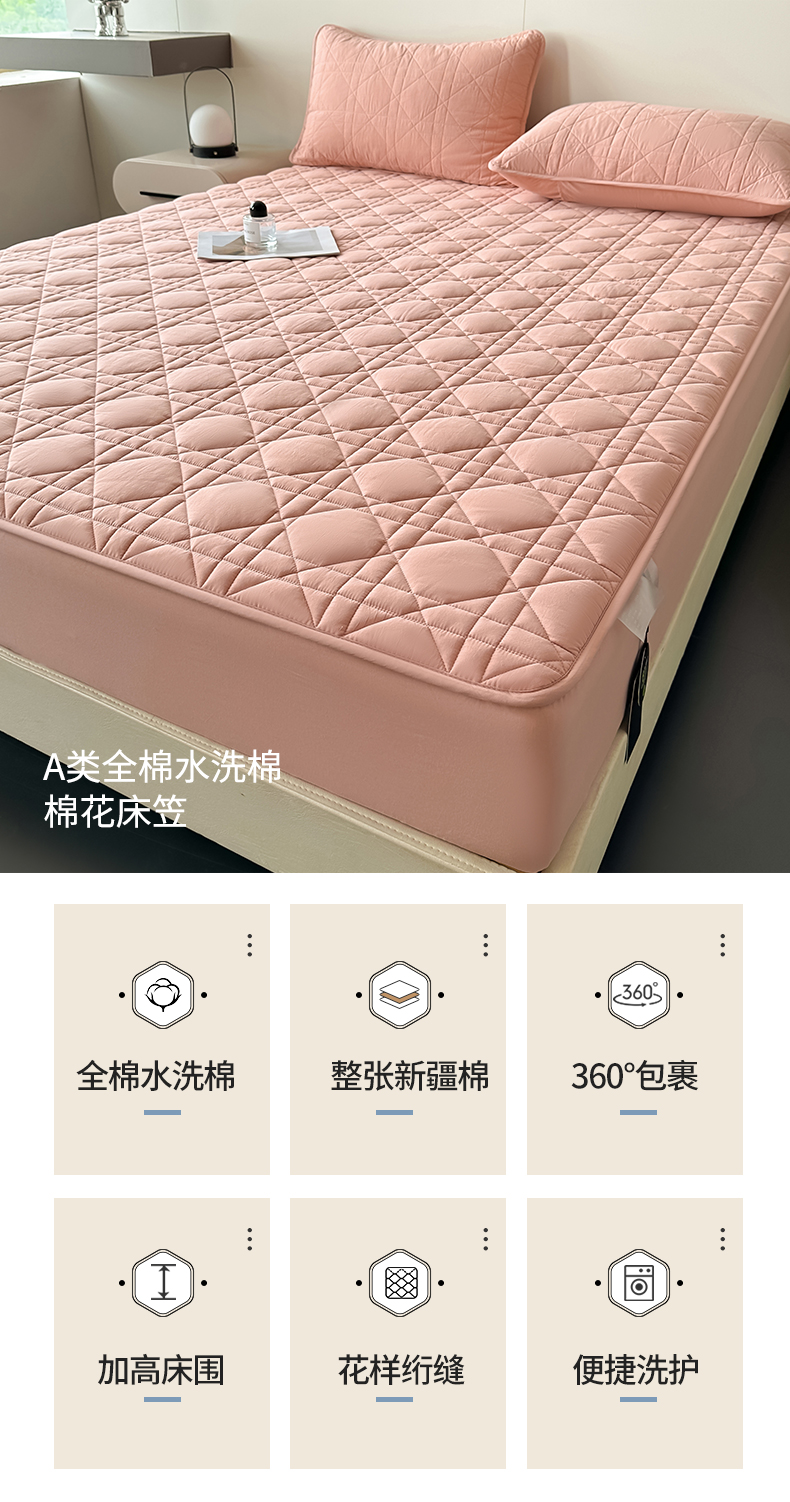 3C 2024新款A类全棉水洗棉棉花床笠 柔密粉-