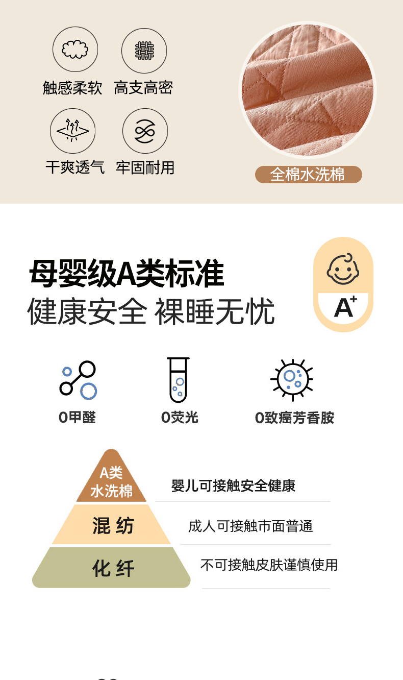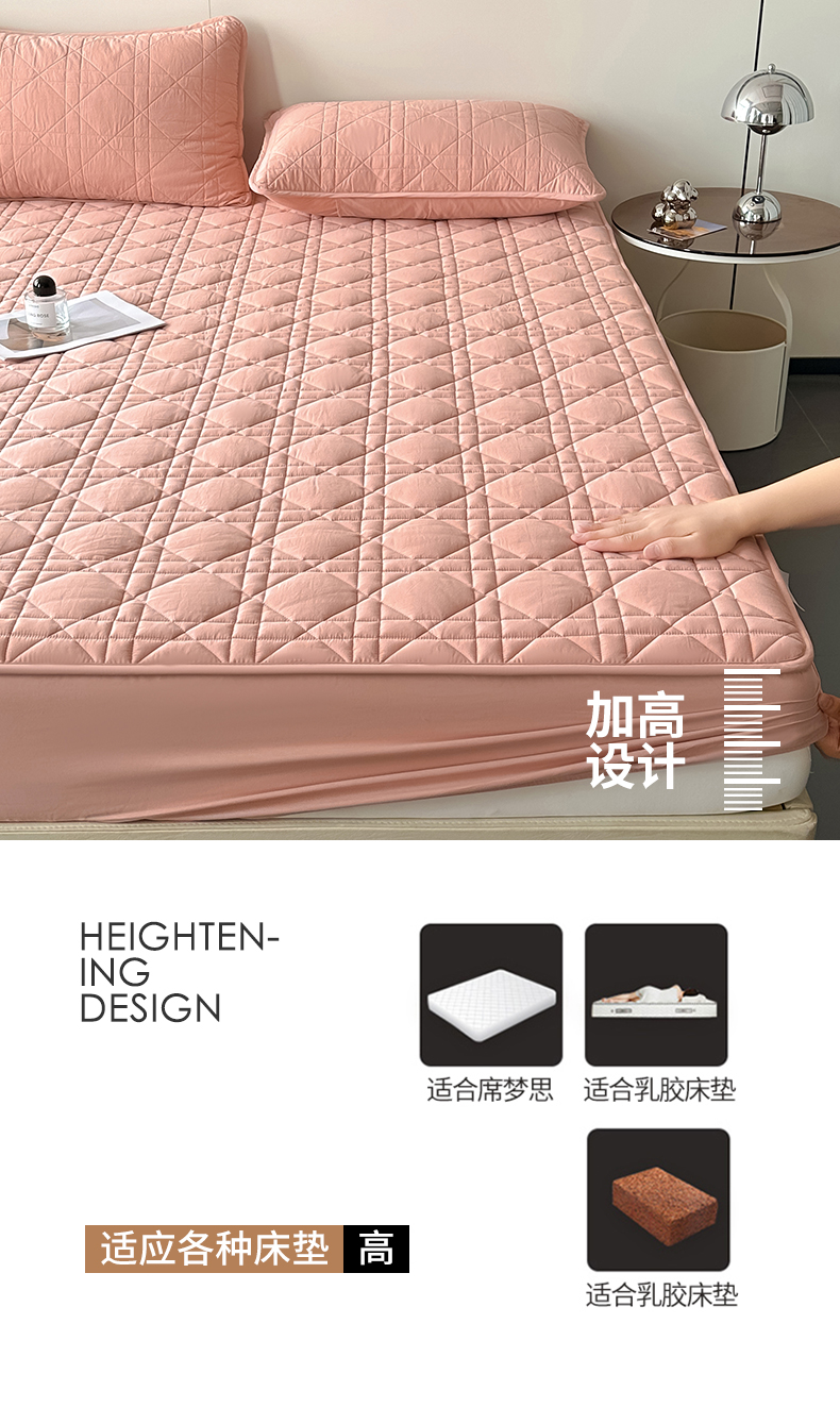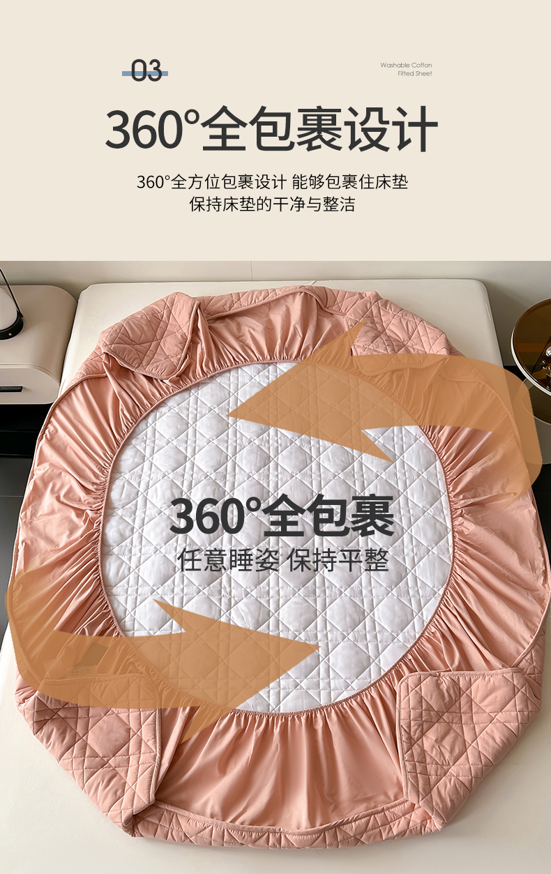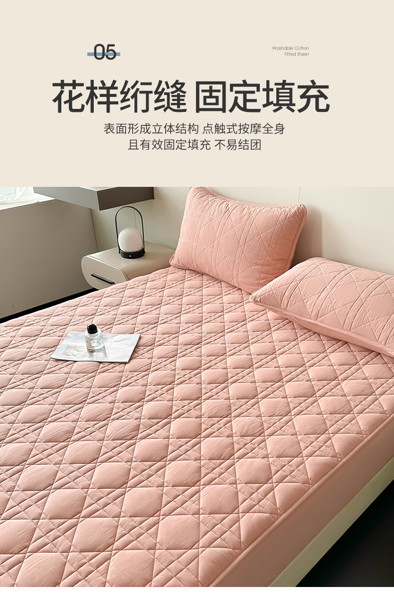 3C 2024新款A类全棉水洗棉棉花床笠 柔密粉-