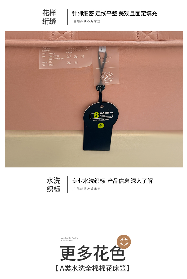 • 91家纺网 家纺一手货源 找家纺 3C 2024新款A类全棉水洗棉棉花床笠 柔密粉-
