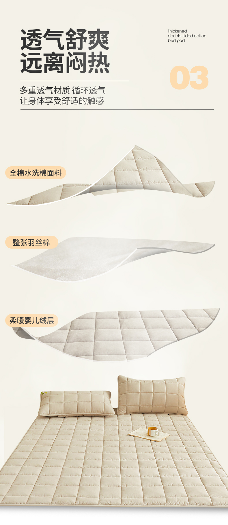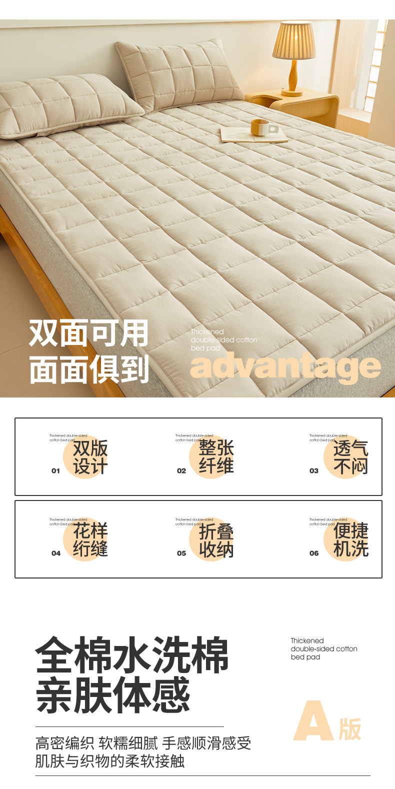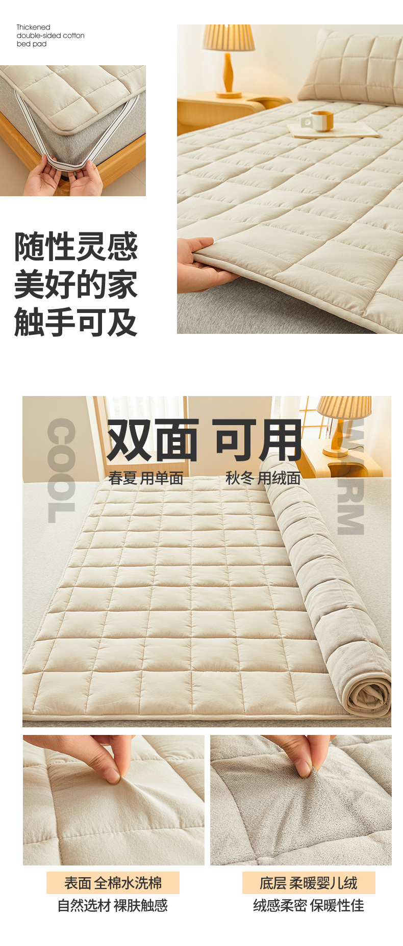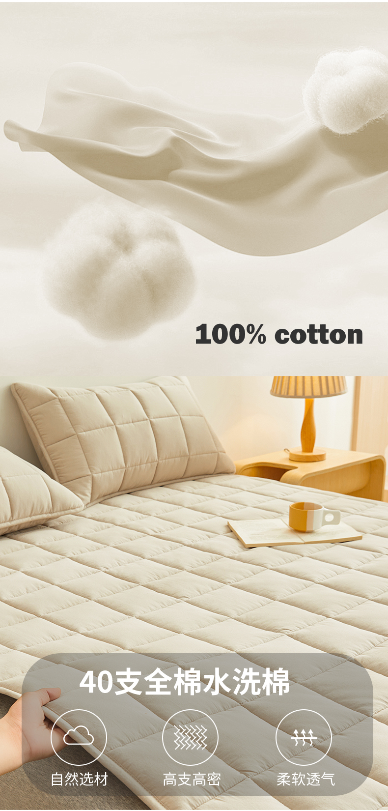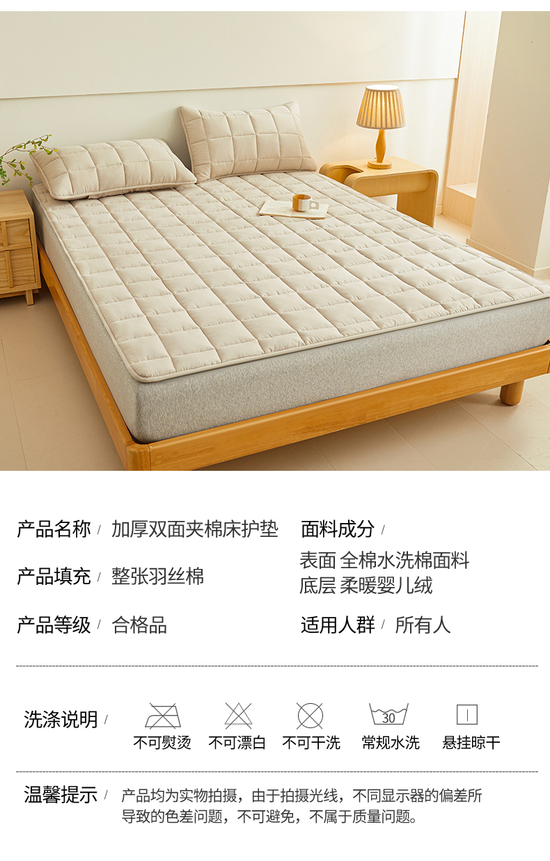 当前位置: 91家纺网 > 商品网购 > 床品定制 > 床垫定制定做 > 3C 2024新款亲肤全棉加厚双面床护垫 卡其