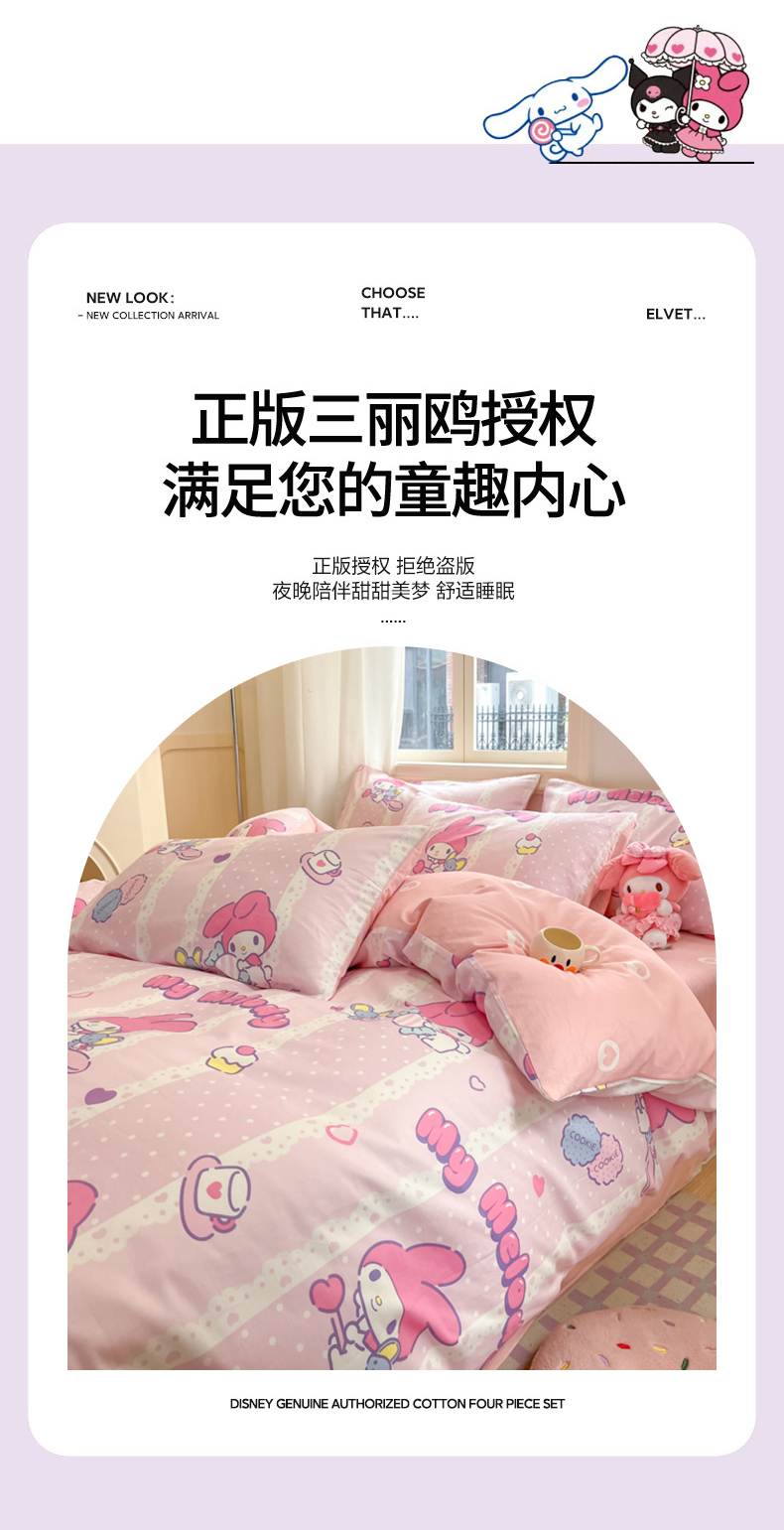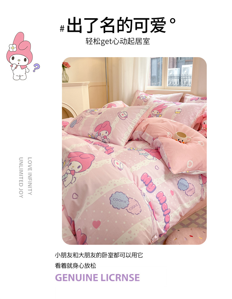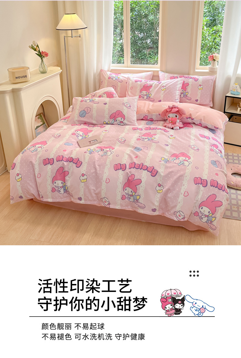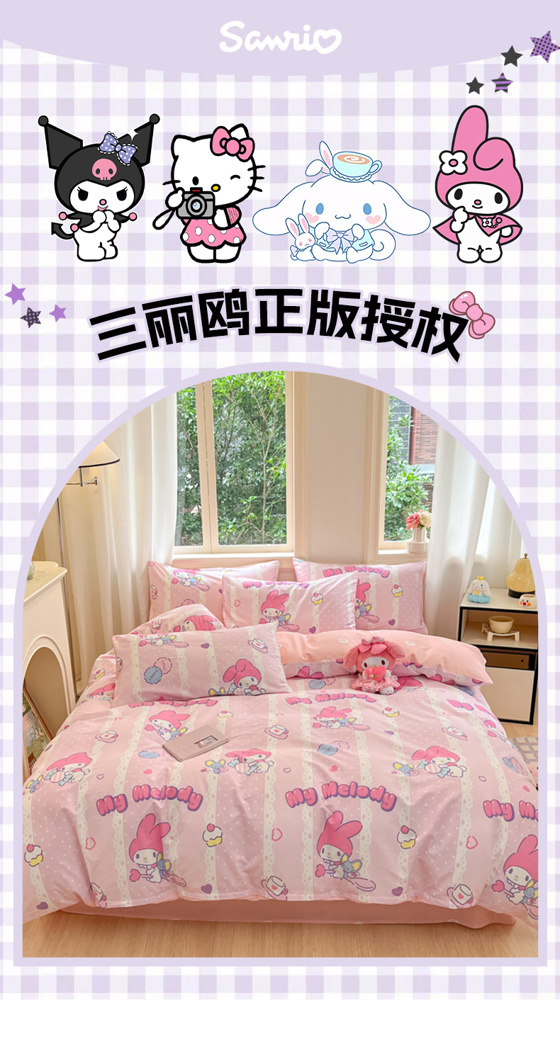 当前位置: 91家纺网 > 商品网购 > 床品套件 > 四件套 > 全棉普通四件套 > 博雅 2024新款三丽鸥全棉印花卡通四件套 魔法美乐蒂