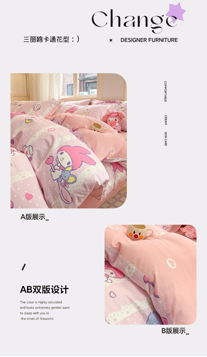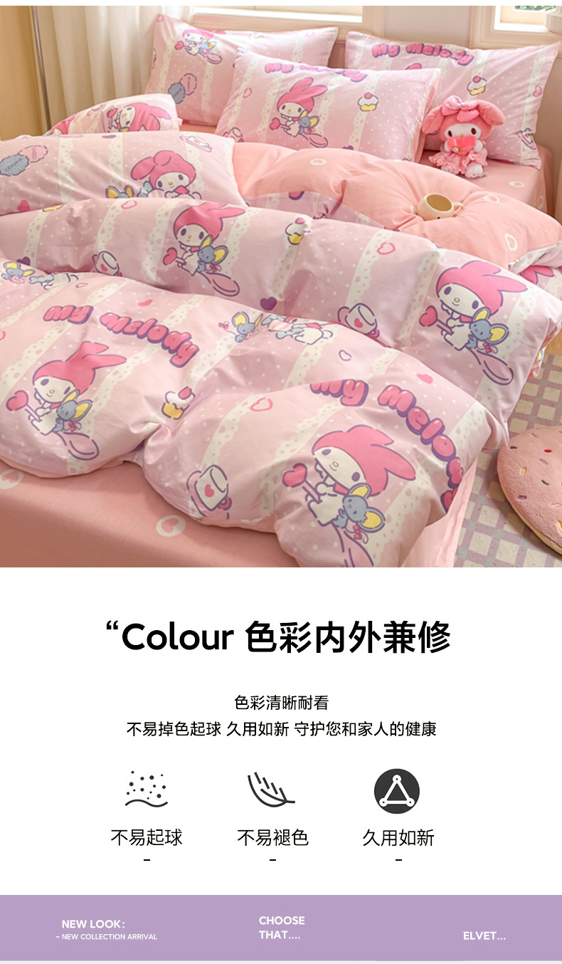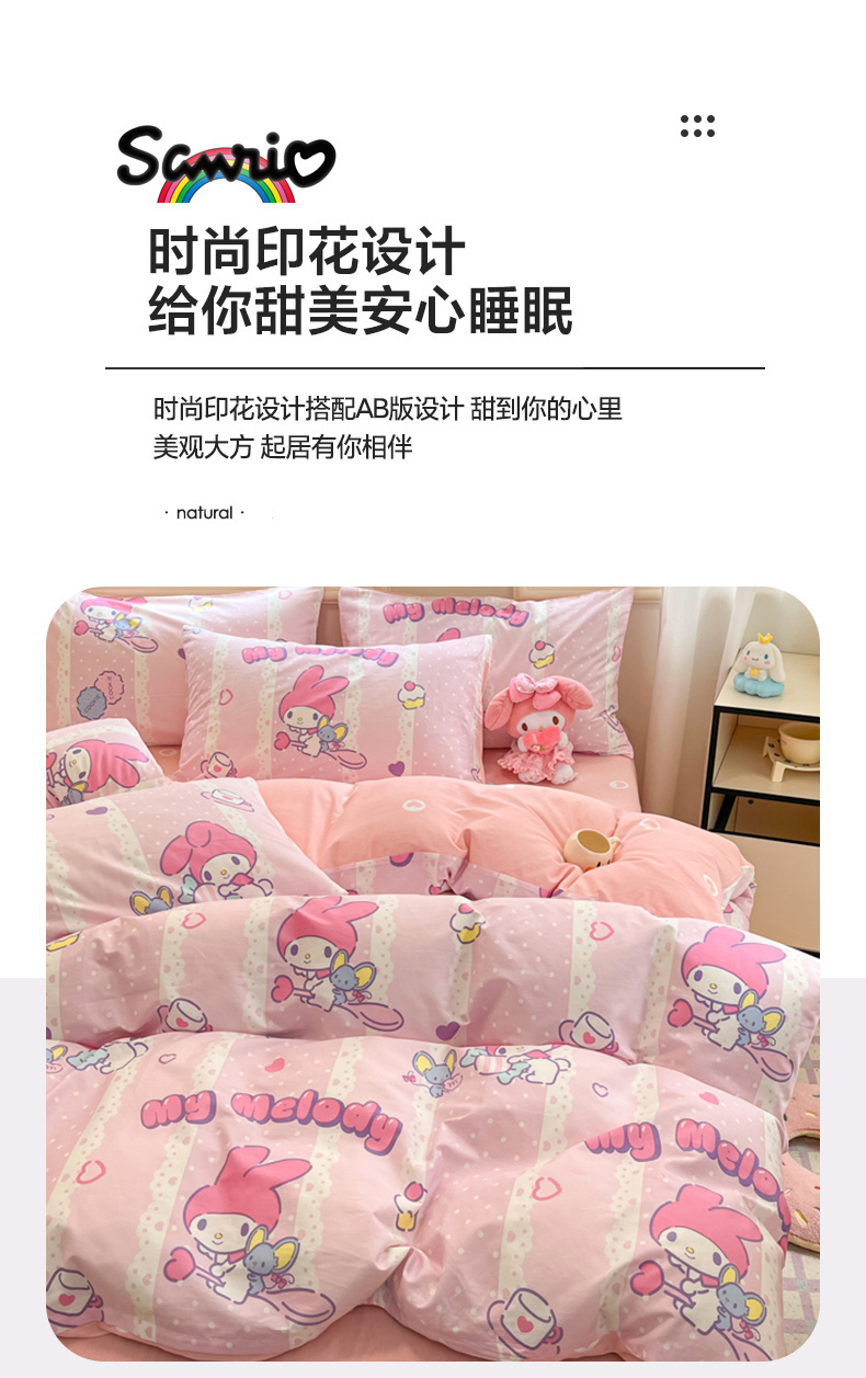 当前位置: 91家纺网 > 商品网购 > 床品套件 > 四件套 > 全棉普通四件套 > 博雅 2024新款三丽鸥全棉印花卡通四件套 魔法美乐蒂