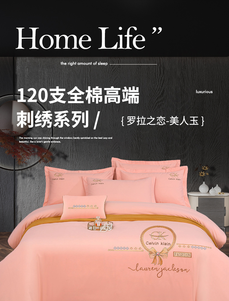 商品名称:2026秋冬新品全棉磨毛刺绣120支四件套系列-罗拉之恋 罗拉之恋-美人玉