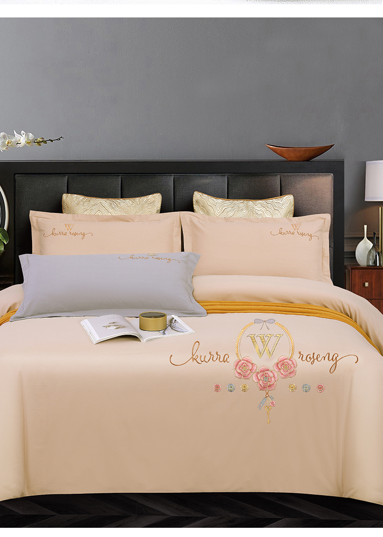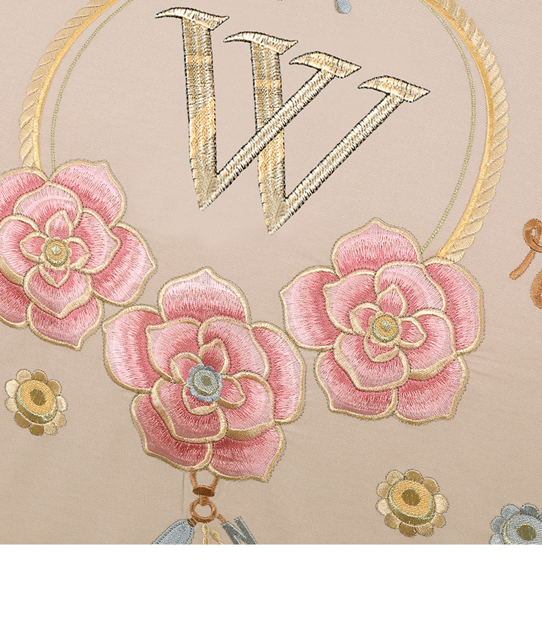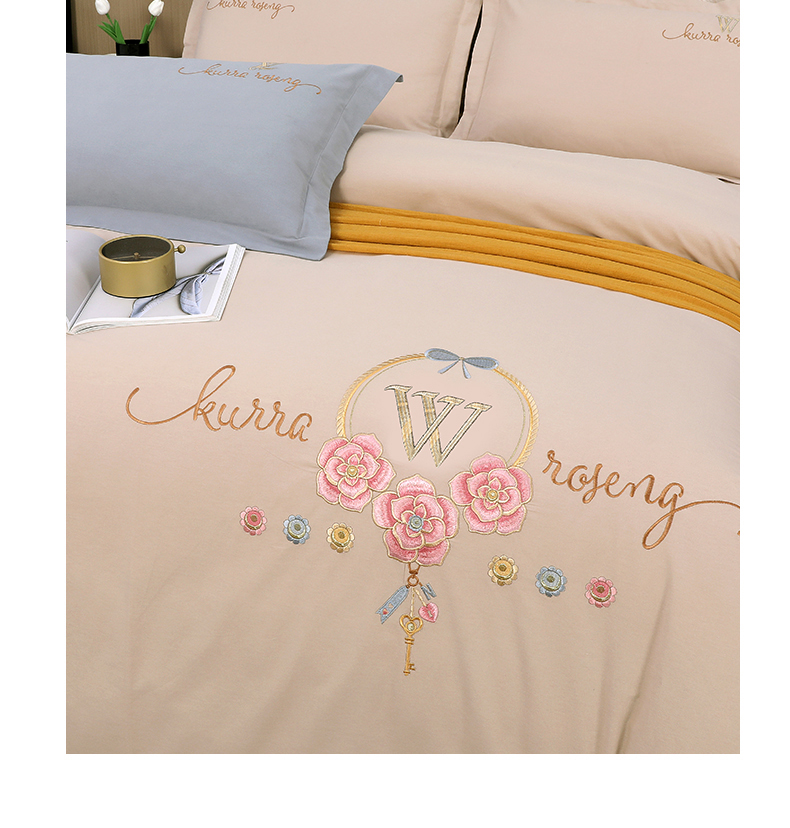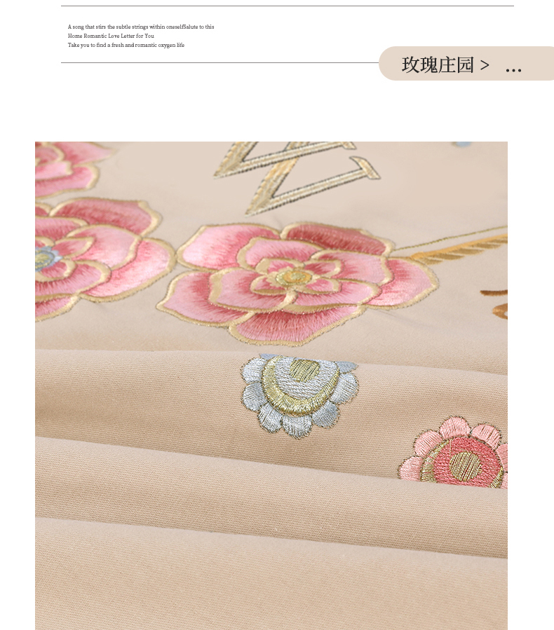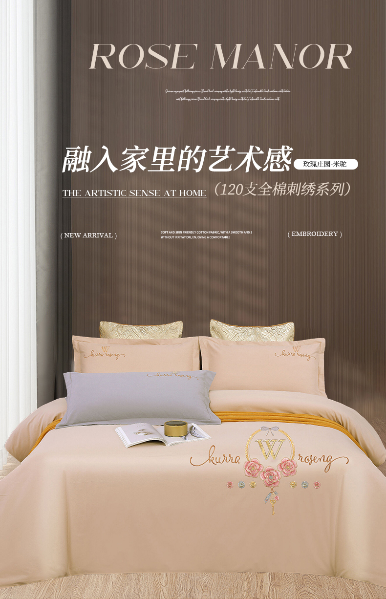 2026秋冬新品全棉磨毛刺绣120支四件套系列-玫瑰庄园 玫瑰庄园-米驼